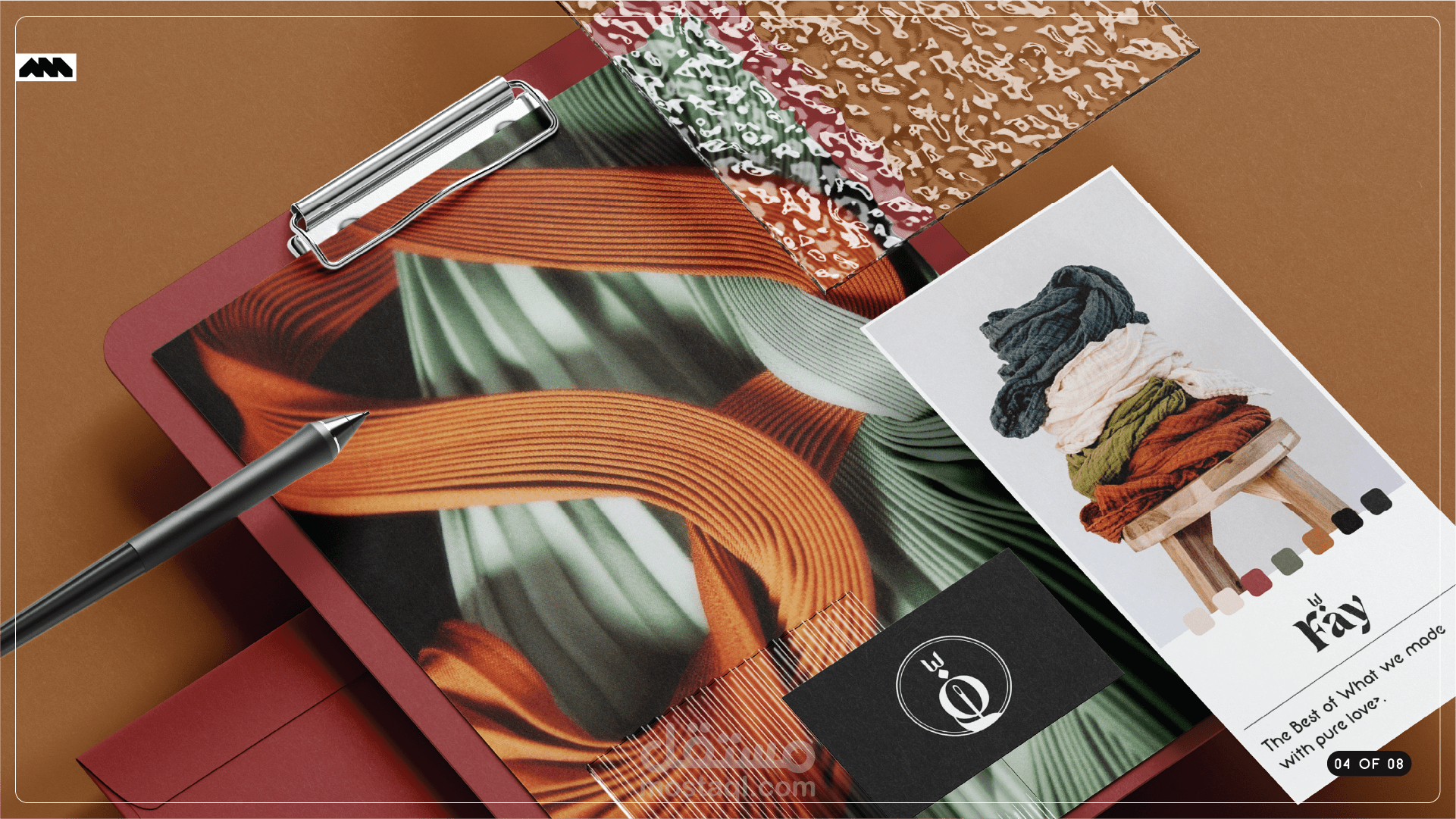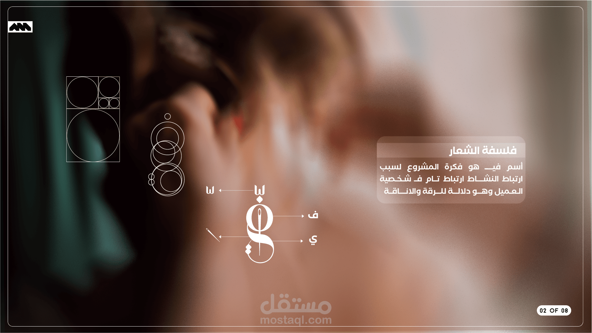 تصميم هوية لمشروع فيٌ , أسم المشروع أرتبط بشكل كبير فـ شخصية العميل وهو دلالة للرقة والاناقة.