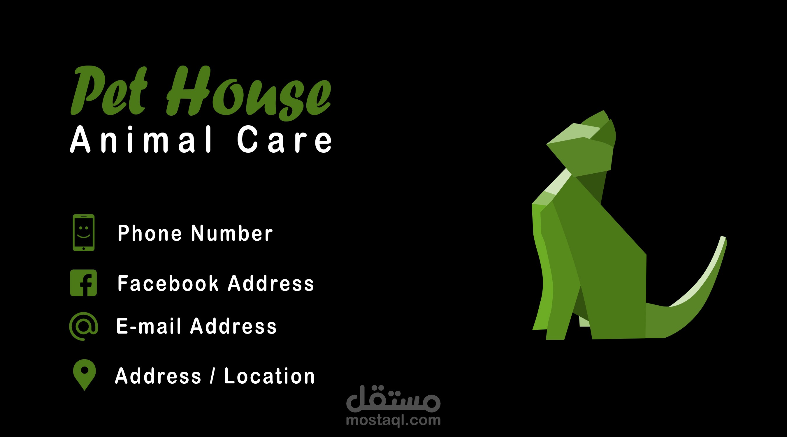 تصميم كارت شخصي لمحل متخصص في مستلزمات الحيوانات الأليفة