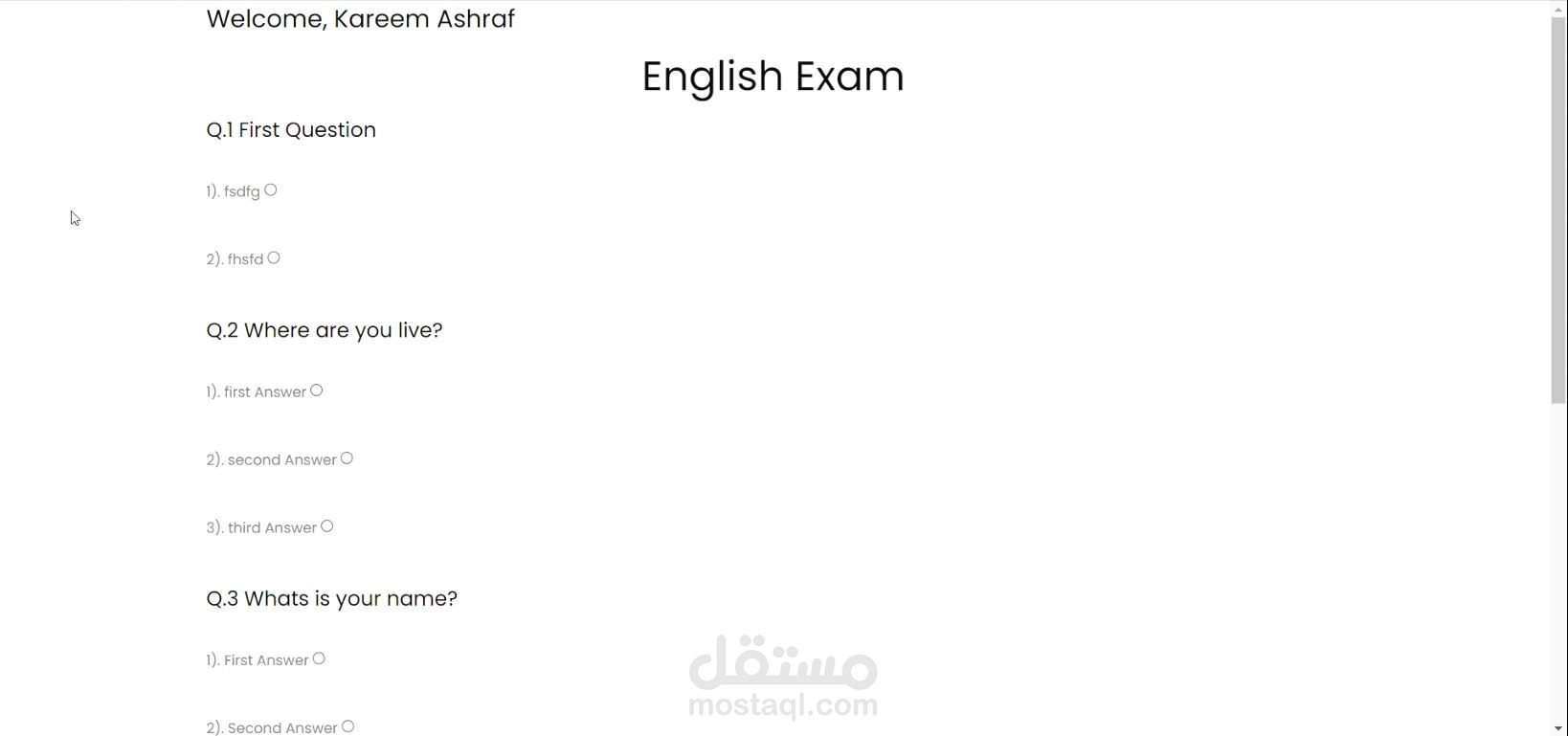 Description: A website for JustAgain Company to help students take their exams in this website any user