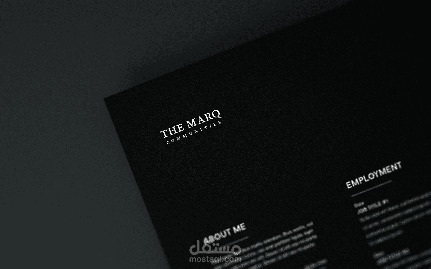 تم تصميم هوية بصرية جديدة لـ The MarQ Communities بناءً على تصوري الشخصي، والتي تميزت بالأناقة والفخامة والحداثة. تم اختيار الألوان الجذابة والمناسبة لتعزيز الشعور بالحيوية والنشاط، مع استخدام نغمات الرمادي والأبيض لإبراز الفخامة والأناقة.