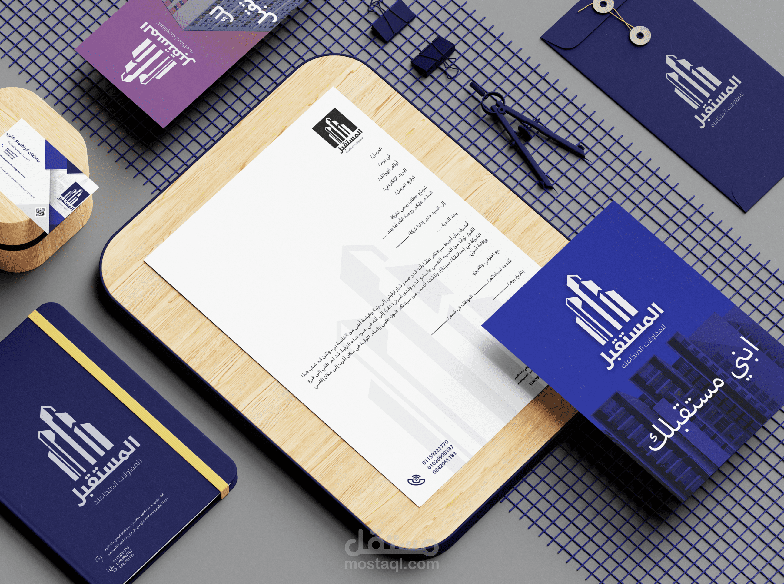 تم تصميم هوية بصرية جديدة لـ شركة المستقبل للمقاولات بأسلوب يعكس الحداثة والابتكار. تم اختيار الألوان المناسبة للهوية البصرية، والتي تعكس الحيوية والنشاط، مع استخدام نغمات الأزرق والأخضر لإبراز الحداثة والابتكار.