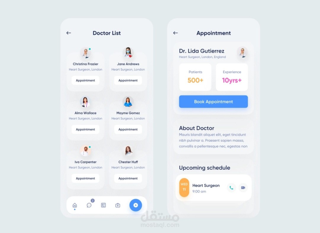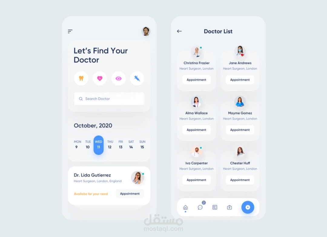 البحث عن الأطباء: يتيح التطبيق للمرضى البحث عن الأطباء والمتخصصين المختلفين بناءً على التخصص والموقع وتوفر المواعيد.