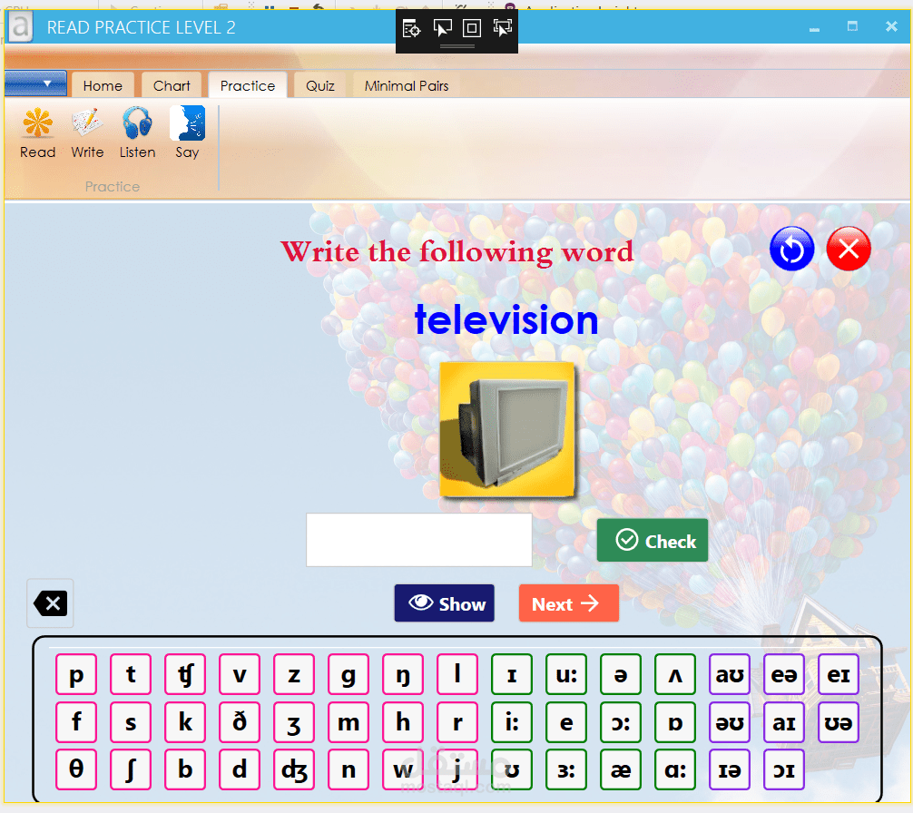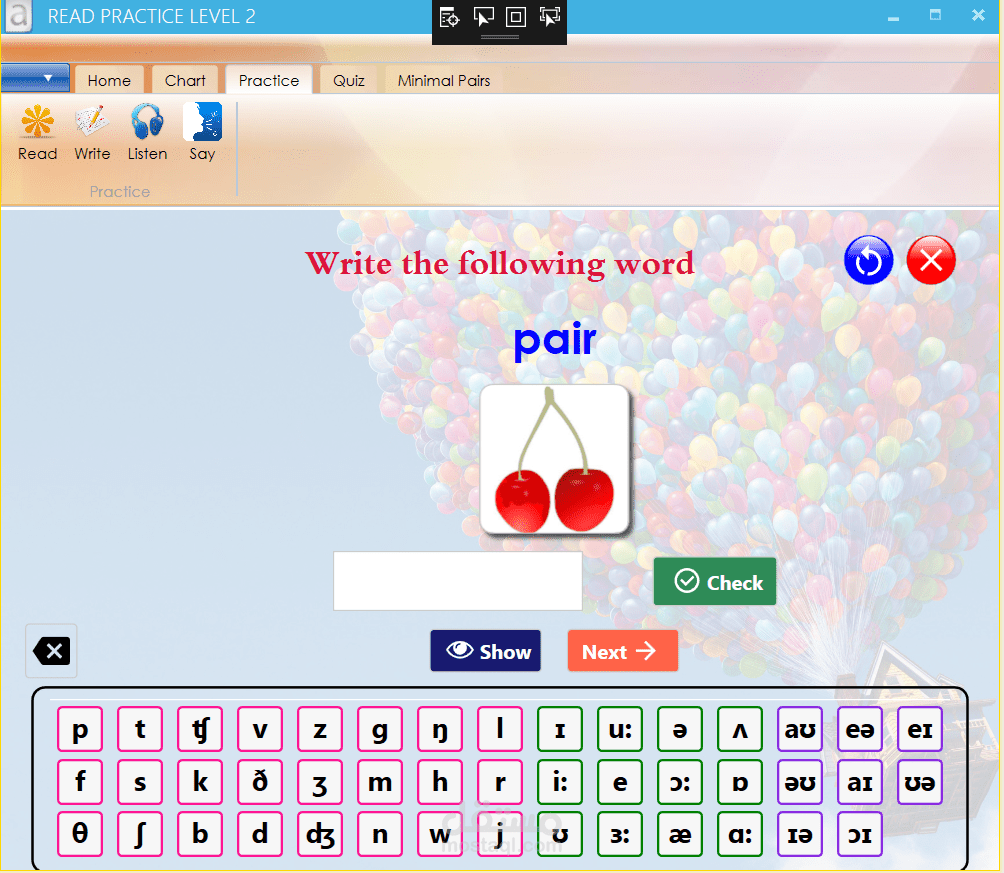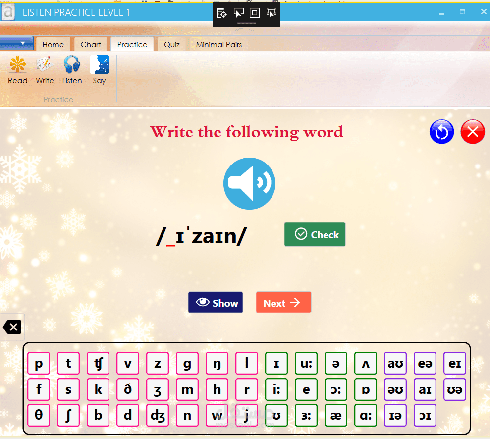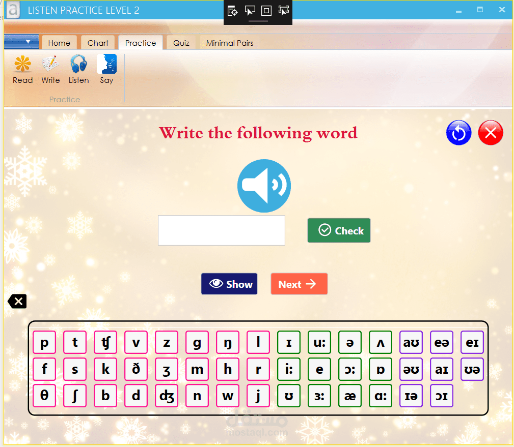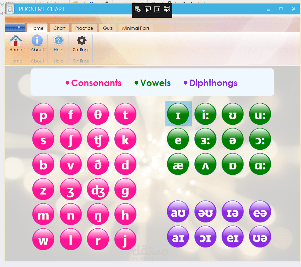 برنامج تعليم نطق الأصوات الانجليزية, من خلال عرض الأصوات وأمثلة من الكلمات التي توضح الصوت