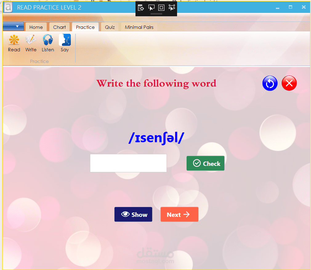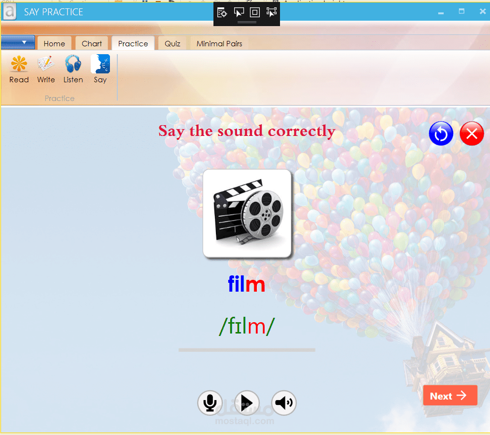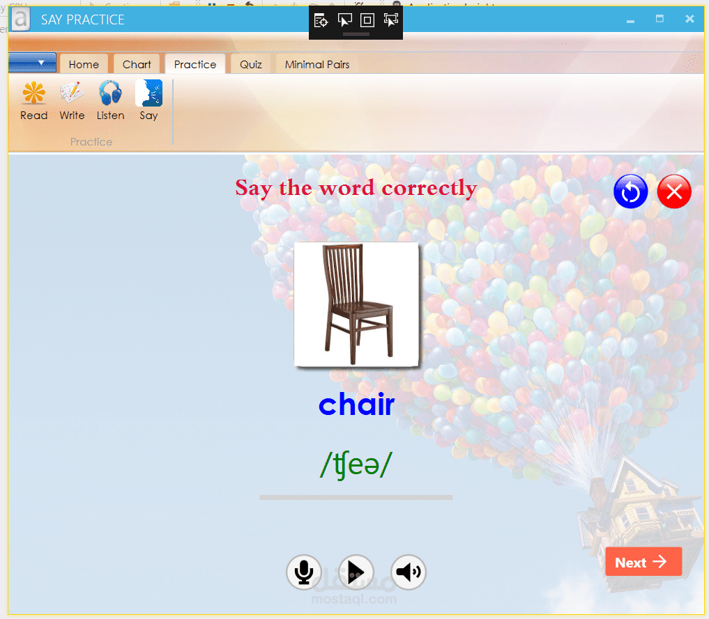 مع امكانية تسجيل صوت المستخدم ومقارنته بصوت الكلمات الأصلي