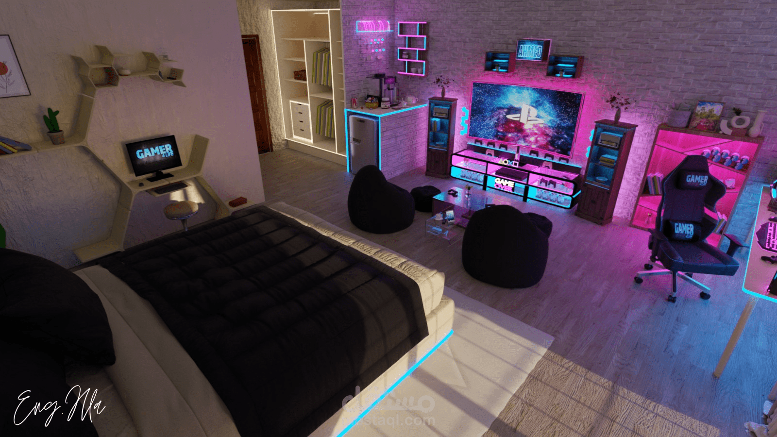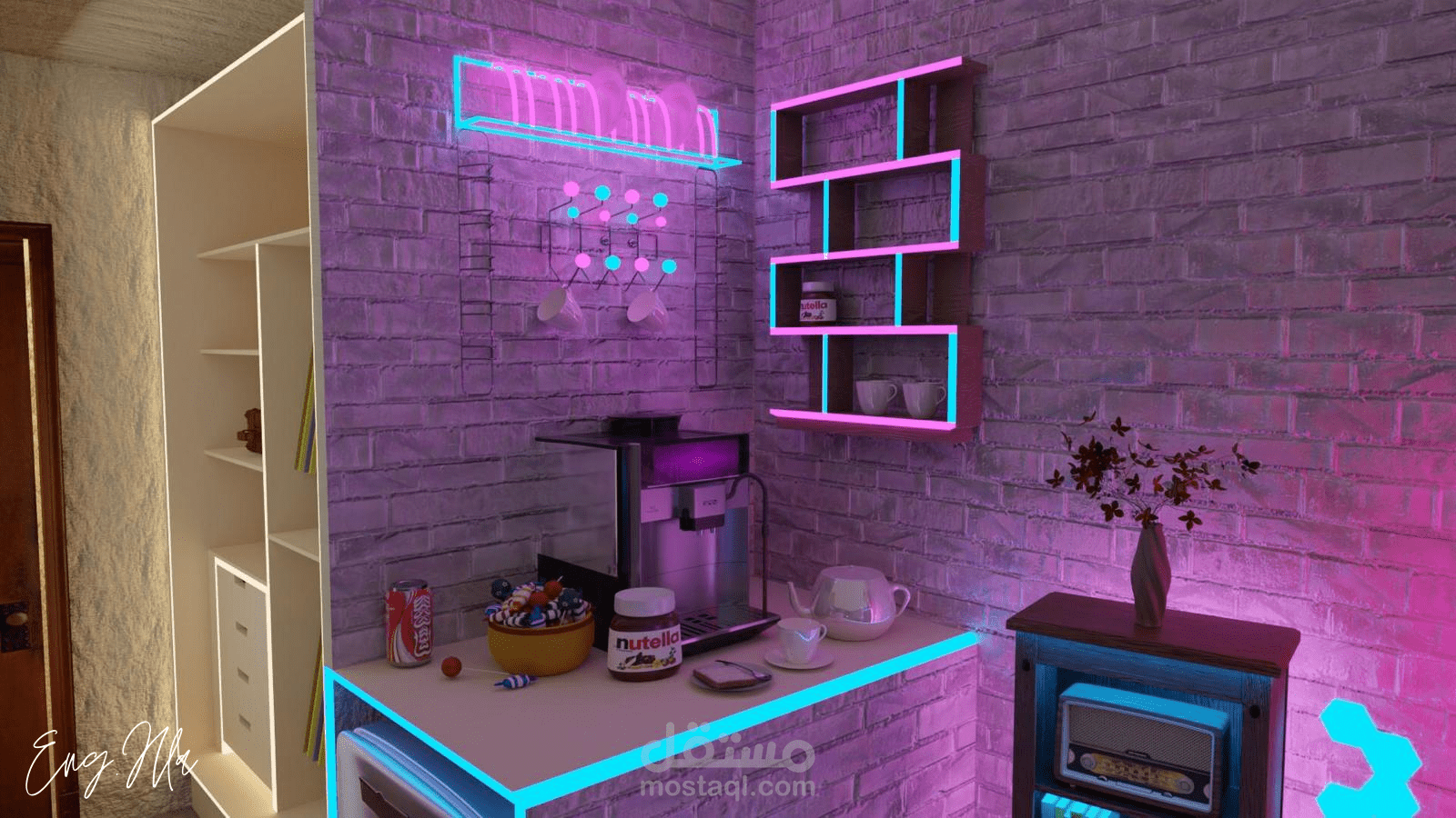 أقوم بتنفيذ ديكور داخلي لجميع غرف المنزل او المكتب او الكافيه مع استغلال المساحات بشكل مناسب.