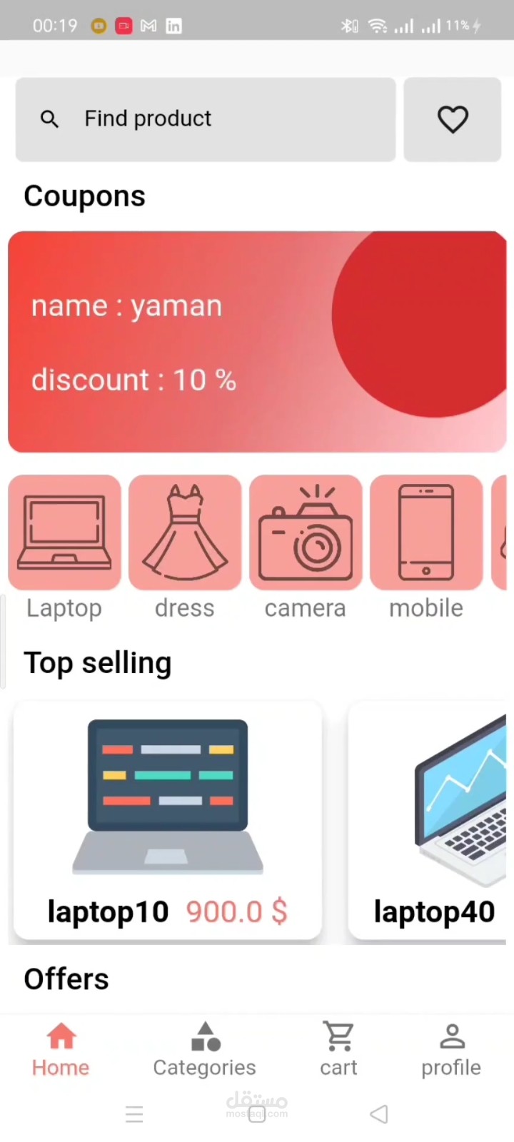 مشروع المتجر الالكتروني مع خدمة الدلفري (تطبيق المستخدم) https://github.com/yamank...