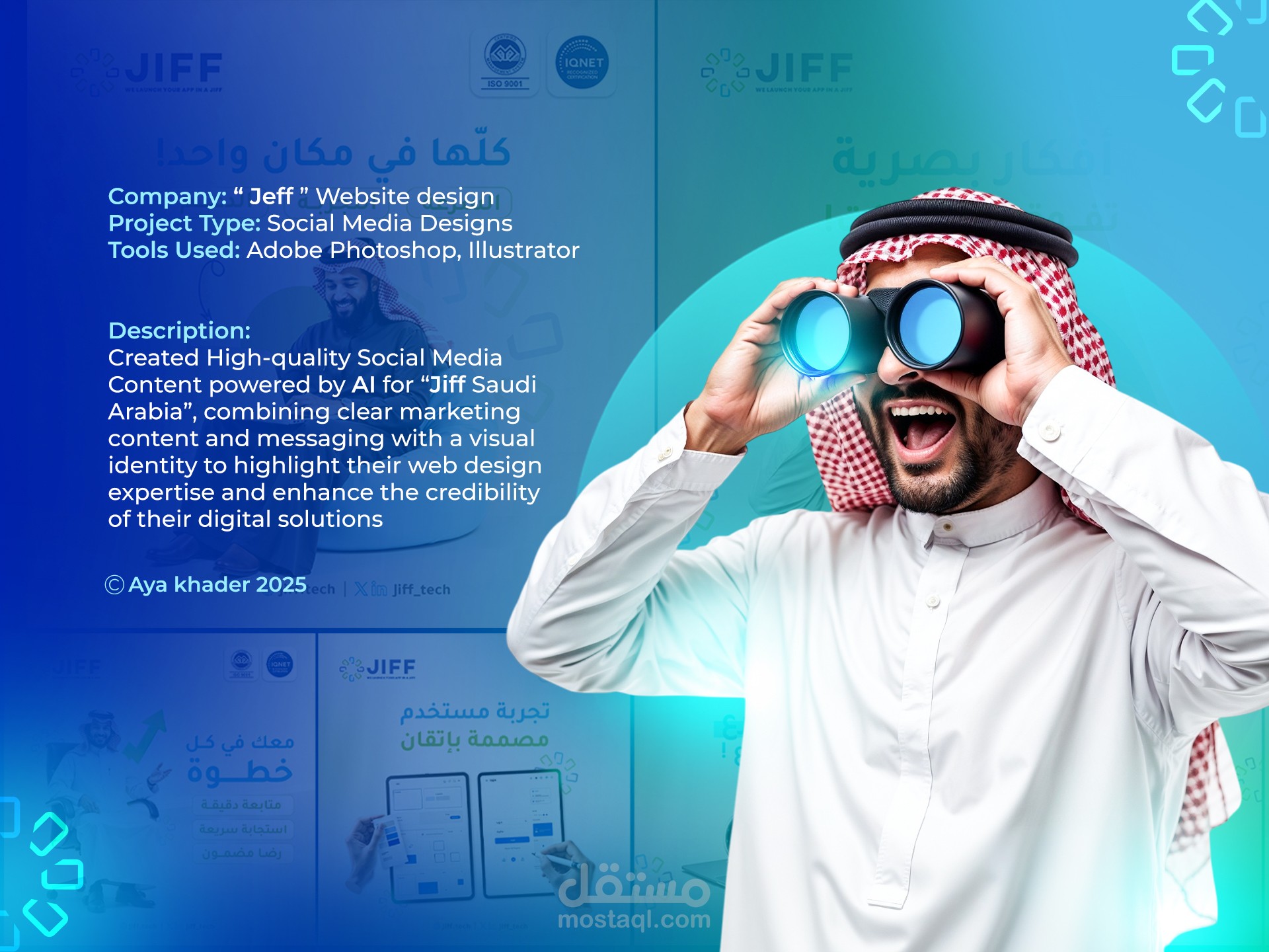 أنا آية خضر، مصممة جرافيك وكاتبة محتوى إبداعي، أدمج الفن بالكلمة لأحكي قصص العلامات التجارية بصريًا ولفظيًا.