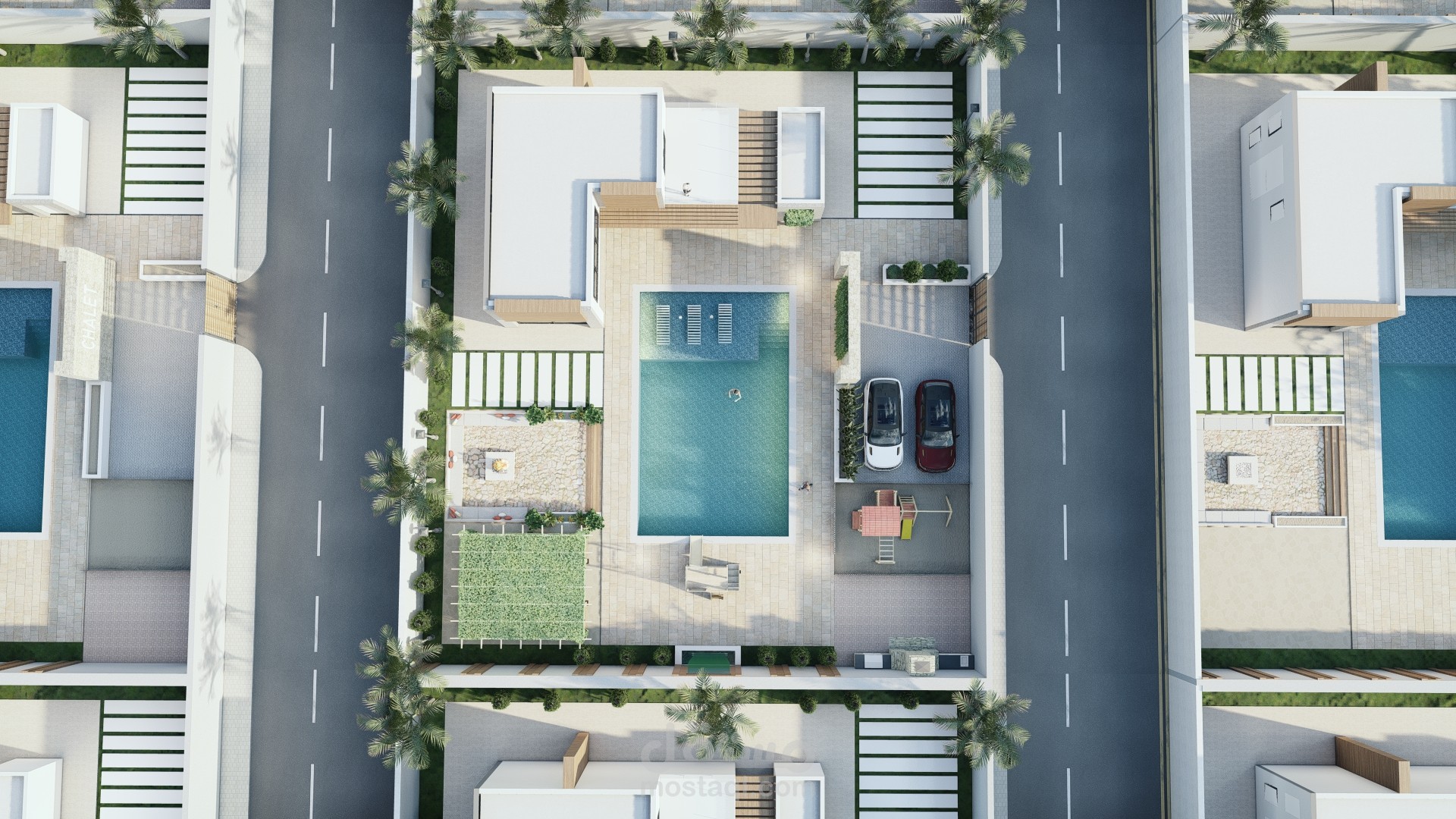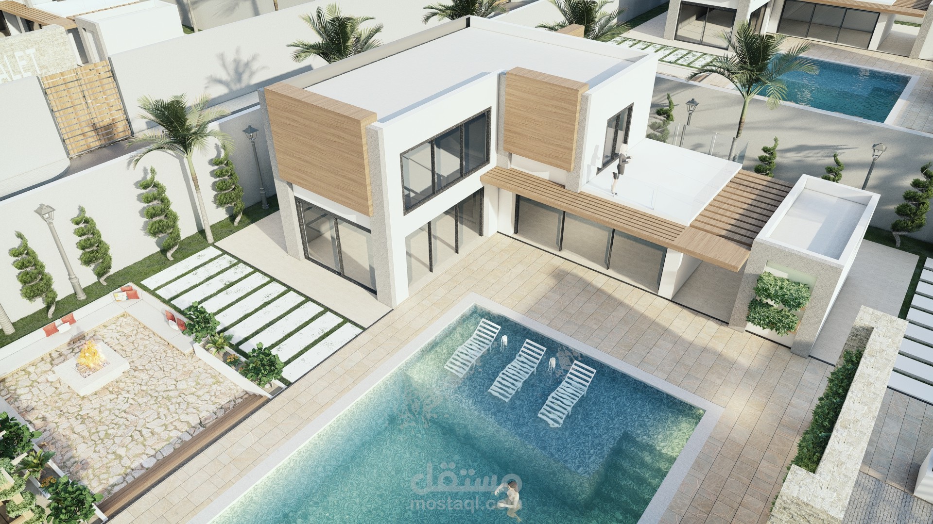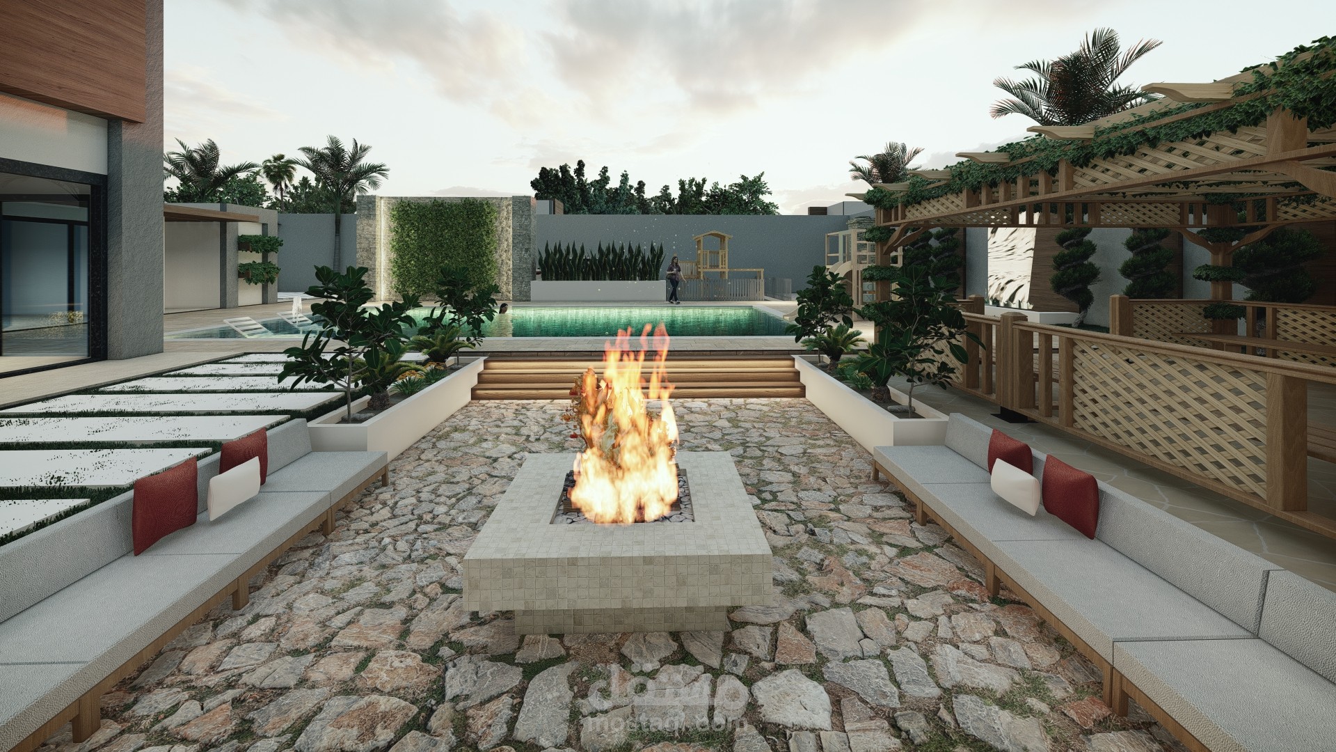 يحتوي تصميم على منطقه لشواء وجلسات خارجيه ومنطقه لعب للاطفال وتوفير مساحة داخلية بما يتناسب من احتياج ومتطلبات العميل بالاضافة الى مساحة لمواقف السيارات