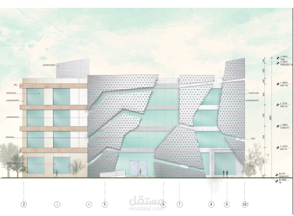 واجهة مبني اداري مصممه بالفوتوشوب و تحتوي علي التفاصيل المطلوبة