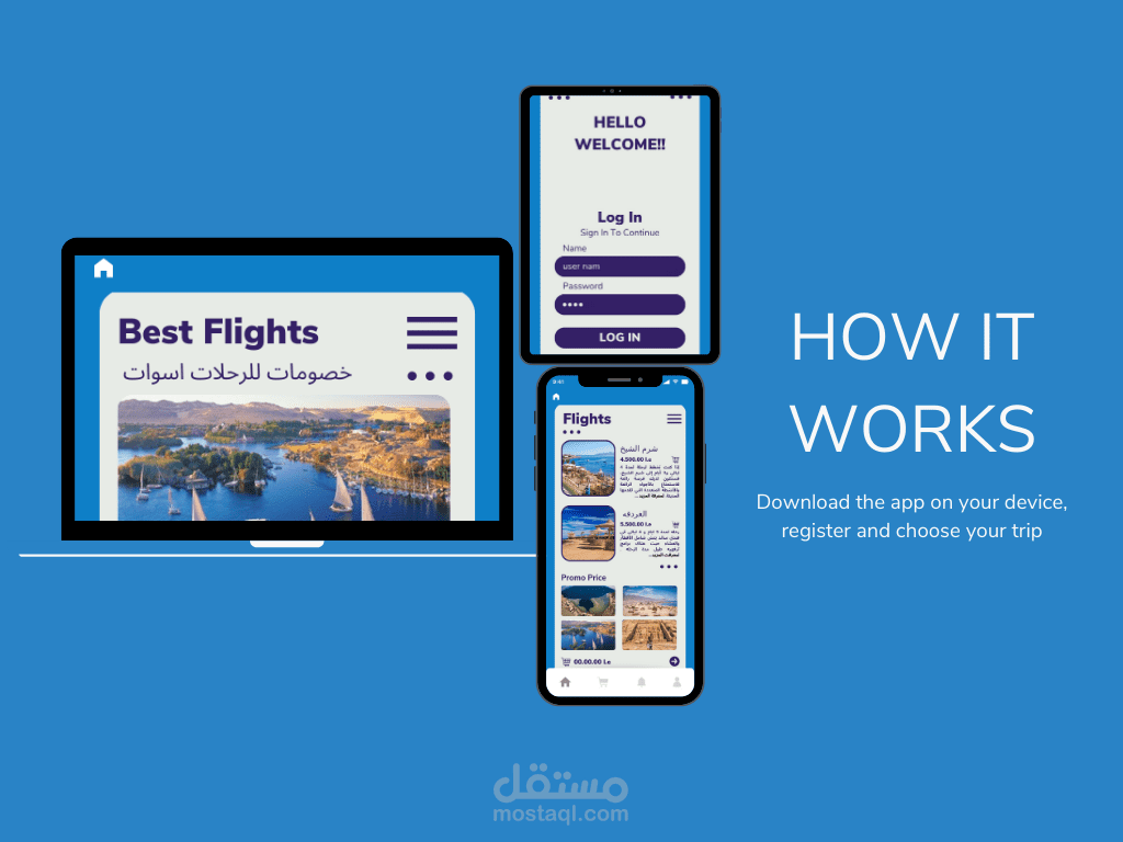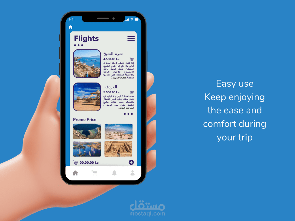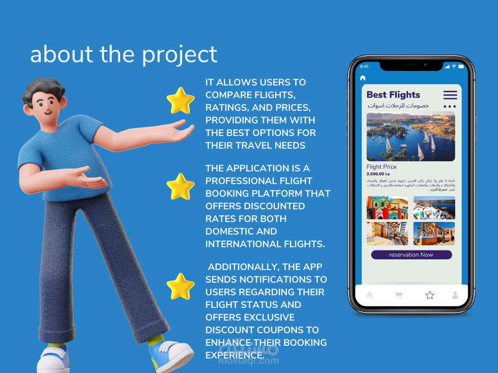 تطبيق خاص بالسفر وحجز والرحلات ، امكانيه المقارنه بين الرحلات من حيث التقييم ، ارسال اشعارات بالمواعيد وعروض الرحلات وكوبونات الخصم