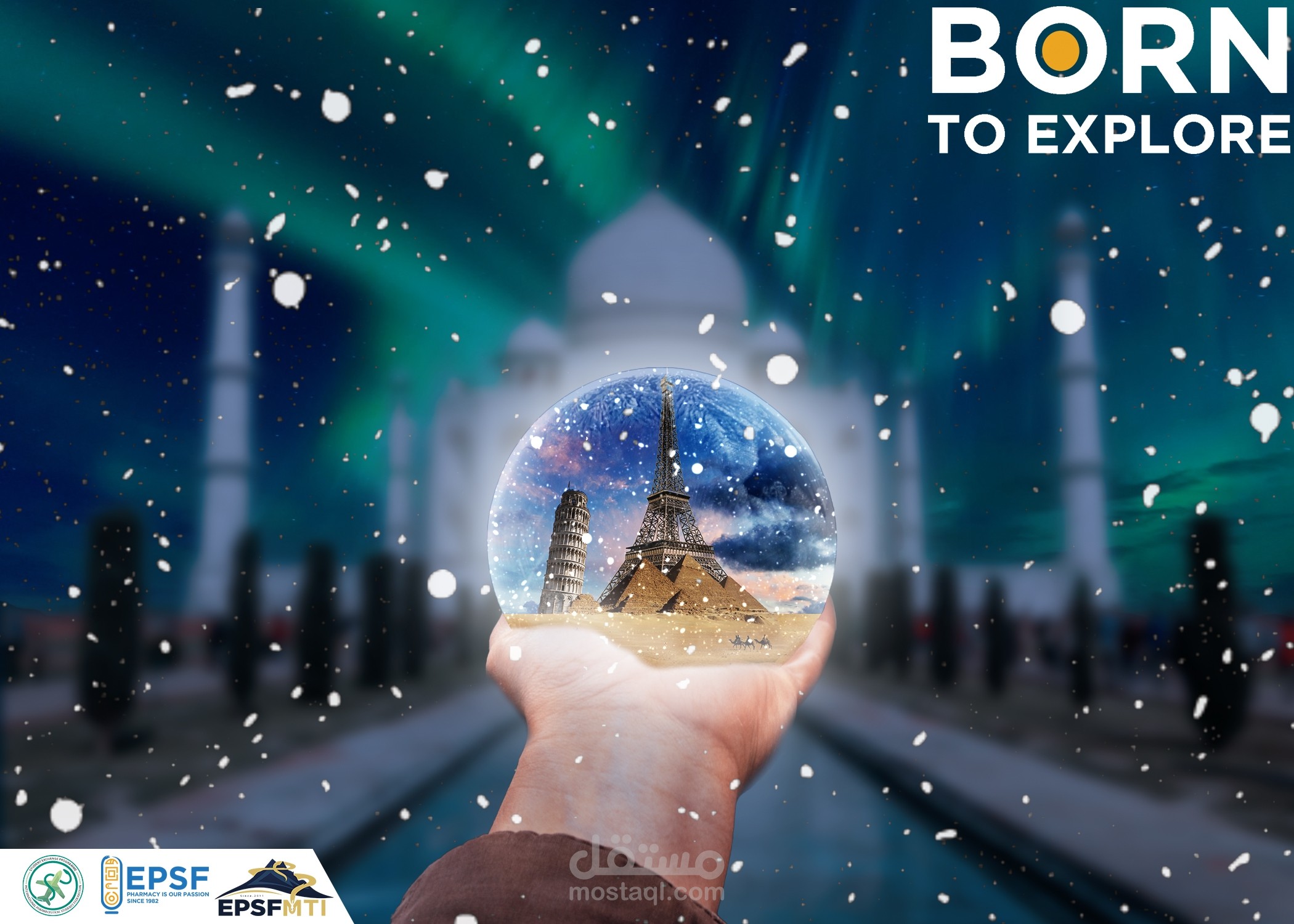 تصميم ديزاين عن برنامج تبادل طلابي بين بلاد العالم في الشتاء