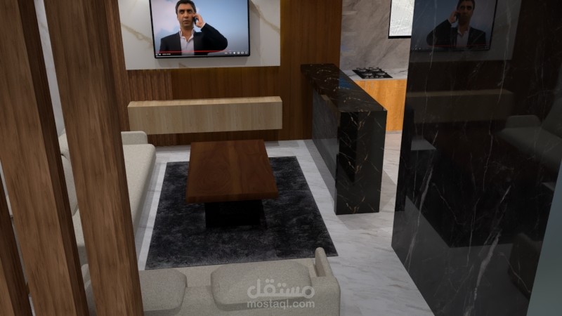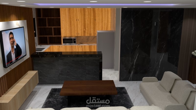 تصميم مطبخ حديث مع صالة معيشة بمساحة 5.8 * 4.5