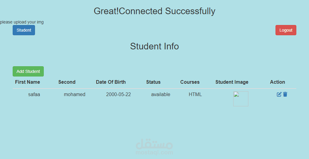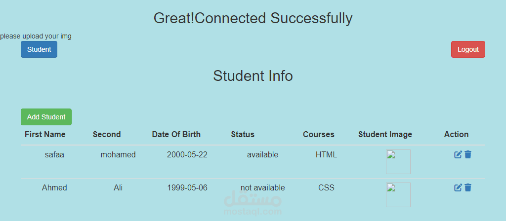 هذا المشروع كان بمثابة ثاني مشروع أقدمه في منحة ITI، وكان بلغة PHP وقمت بعمل Connect with database in mySQL، ولقد أنجزت هذا المشروع في مدة 5 أيام بمفردي. ولقد أستعنت أيضاً ب HTML&CSS&BootStrap. وكان هذا المشروع عبارة عن Crud لنظام مدرسي (School System) حيث نقوم بإضافة طلاب جدد وأيضا نحذف ونعدل في بيانات الطالب. ويوجد وضع للأدمن حيث يقوم بالتحكم في كل عملية من إضافة وحذف ووضع الطالب أو المستخدم حيث لا يمكنه التحكم في كل العمليات.
