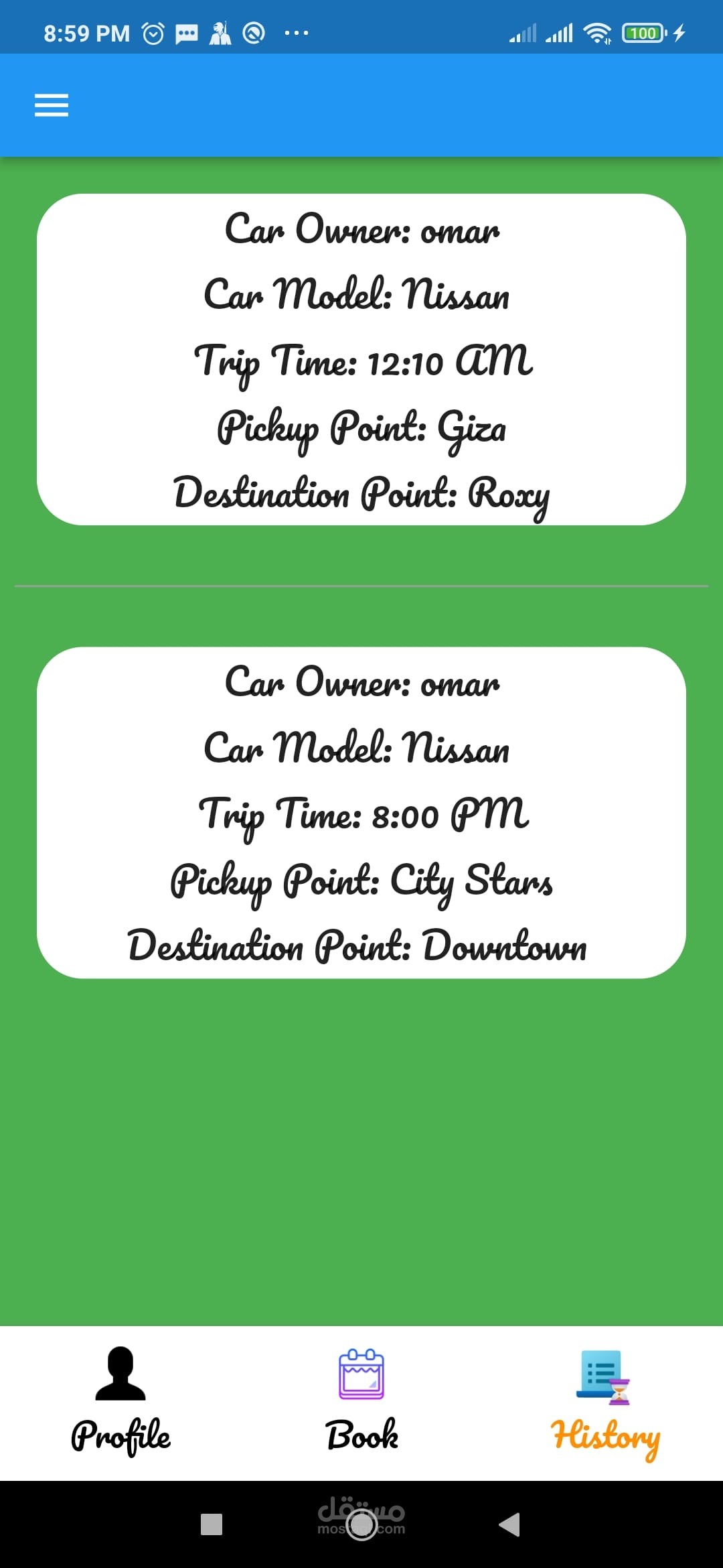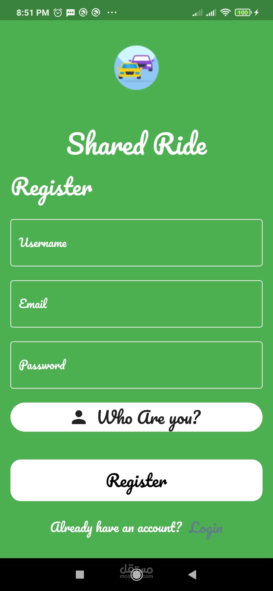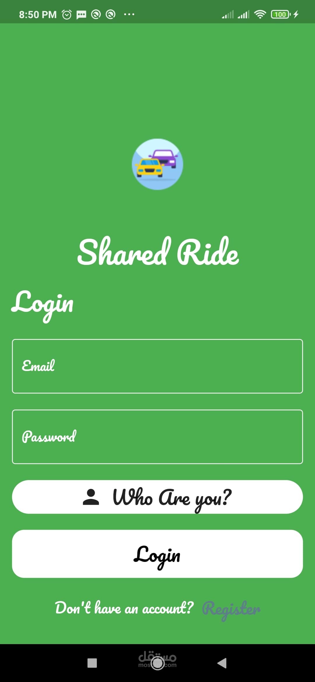 تطبيق يشبة تطبيق uber حيث يقوم الزبون بادخال مكان الرحلة و التوقيت و من ثم يظهر له السائقين المتاحين.