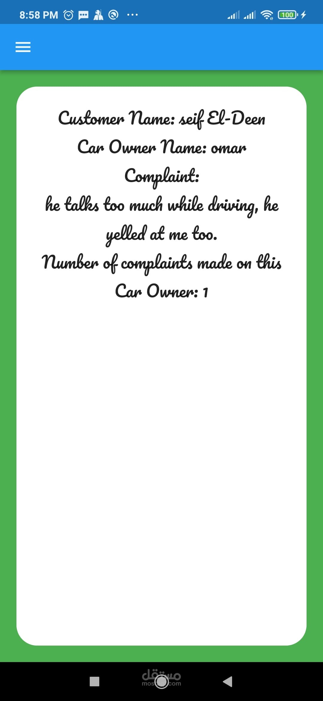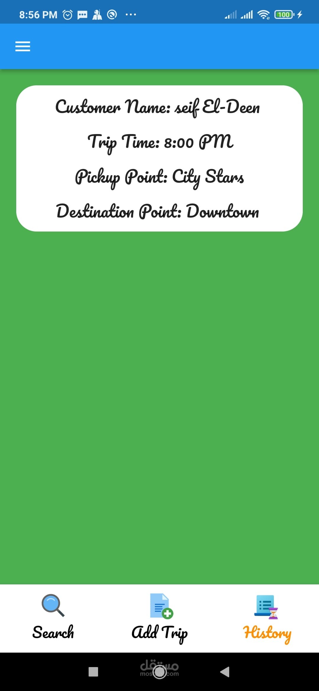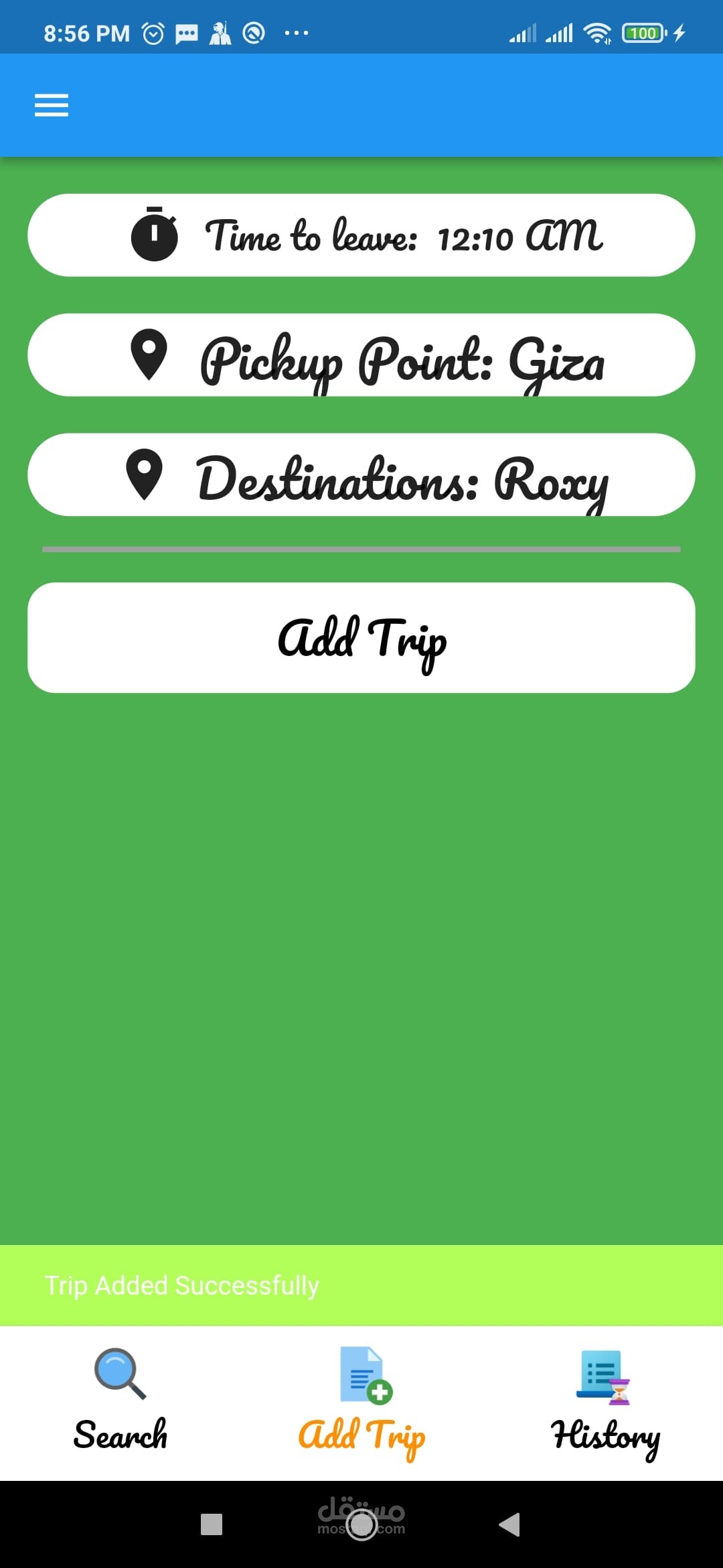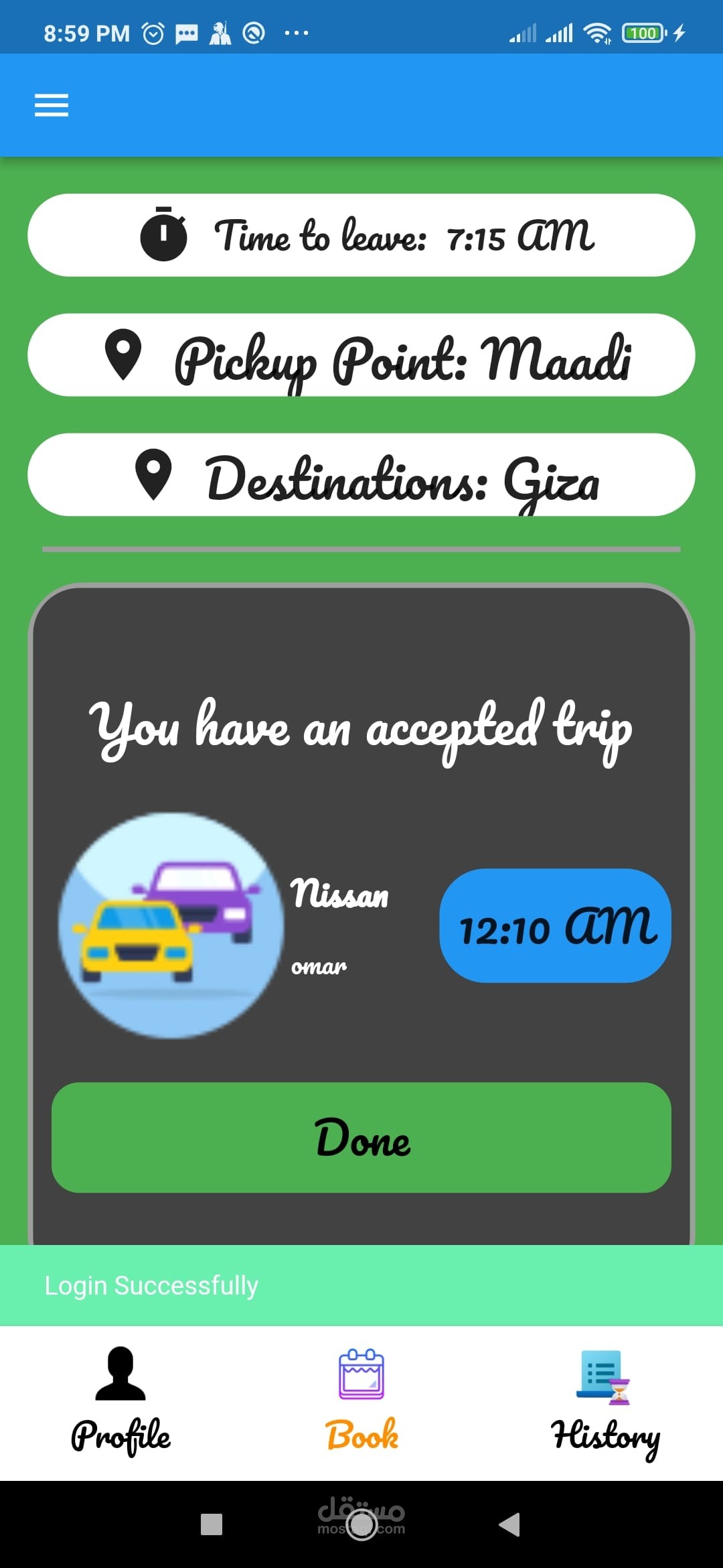 تطبيق يشبة تطبيق uber حيث يقوم الزبون بادخال مكان الرحلة و التوقيت و من ثم يظهر له السائقين المتاحين.