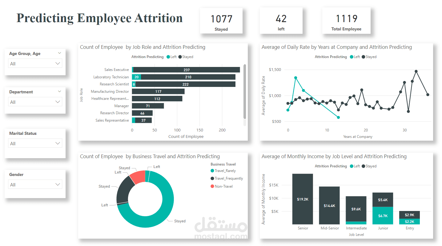 يمكن أن يكون لتناقص الموظفين تأثير كبير على النتيجة النهائية للمؤسسة ، بما في ذلك فقدان الإنتاجية والمعرفة والخبرة. في سوق العمل التنافسي اليوم ، تحتاج المؤسسات إلى اتخاذ تدابير استباقية للاحتفاظ بأفضل الموظفين وتقليل مخاطر دوران الموظفين. الغرض من هذا التقرير هو تحليل بيانات الموارد البشرية وتطوير نموذج تنبؤي لتحديد العوامل التي تساهم في تناقص الموظفين والتنبؤ بالموظفين الذين من المرجح أن يغادروا.