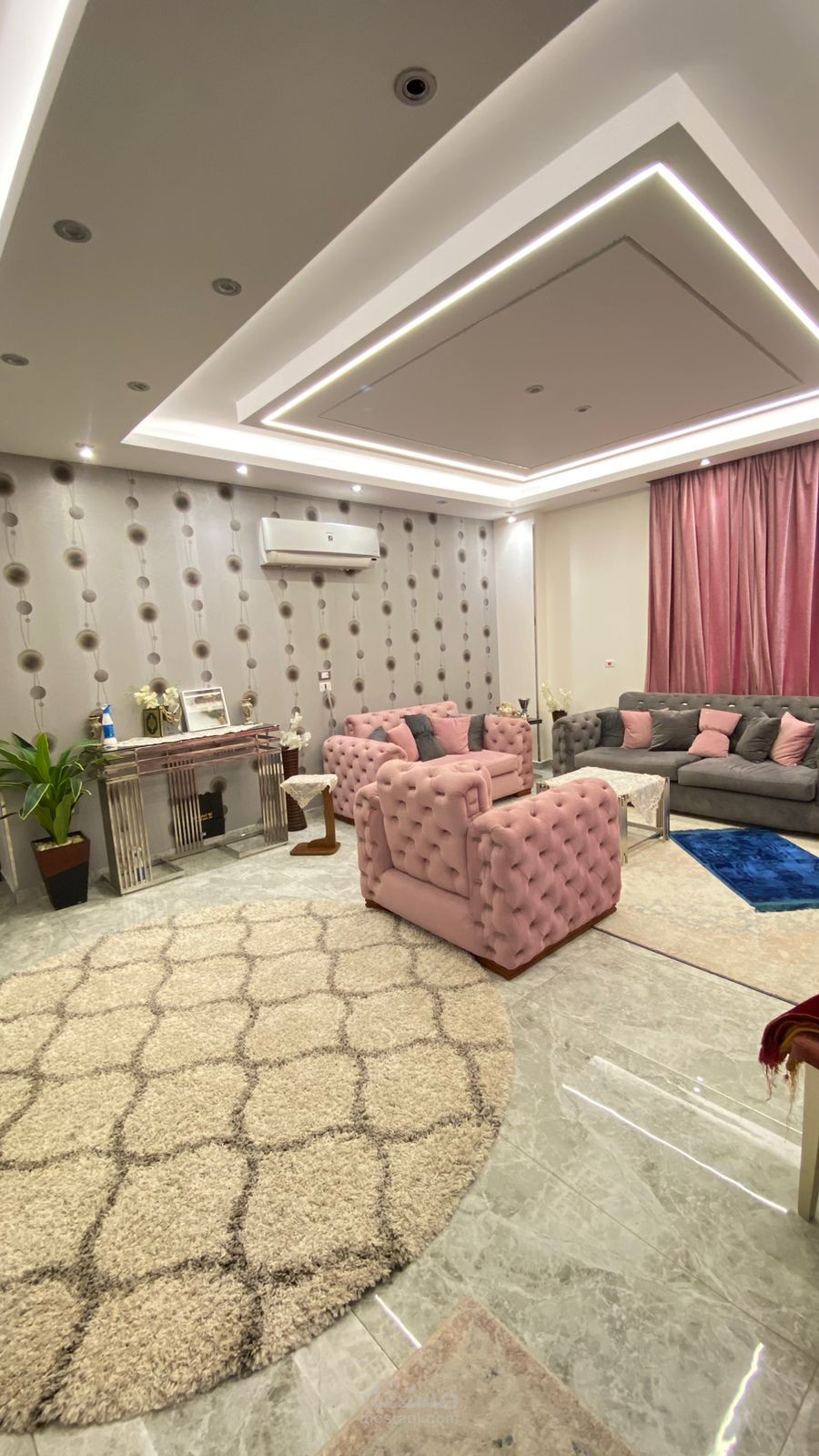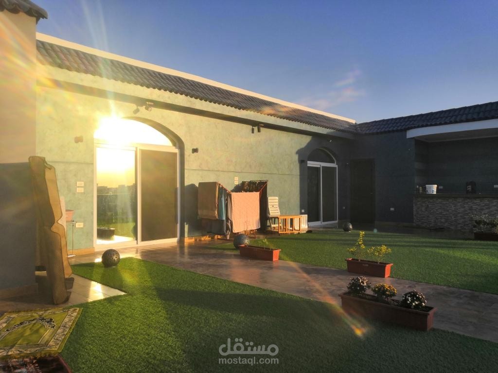 تم تصميم هذه الفيلا داخليا وخارجيا مع الاعتناء بالنظام الكلاسيكي والاضاءات مع اضافة الخضرة الى السطح والاعتناء بالاستدامة
