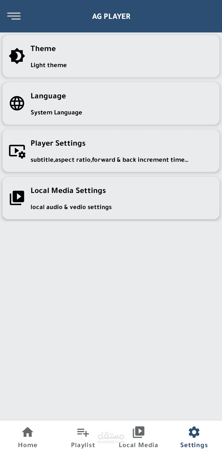AGPlayer هو مشغل فيديو مبني على مكتبة exoplayer يمكن من خلاله تشغيل انواع مختلفة من روابط الفيديو والصوت mp4,mp3,m3u8,mpd.... كما يمكِّنك ايضا من تشغيل روابط m3u و xtream وملفات iptv الموجودة على الجهاز .