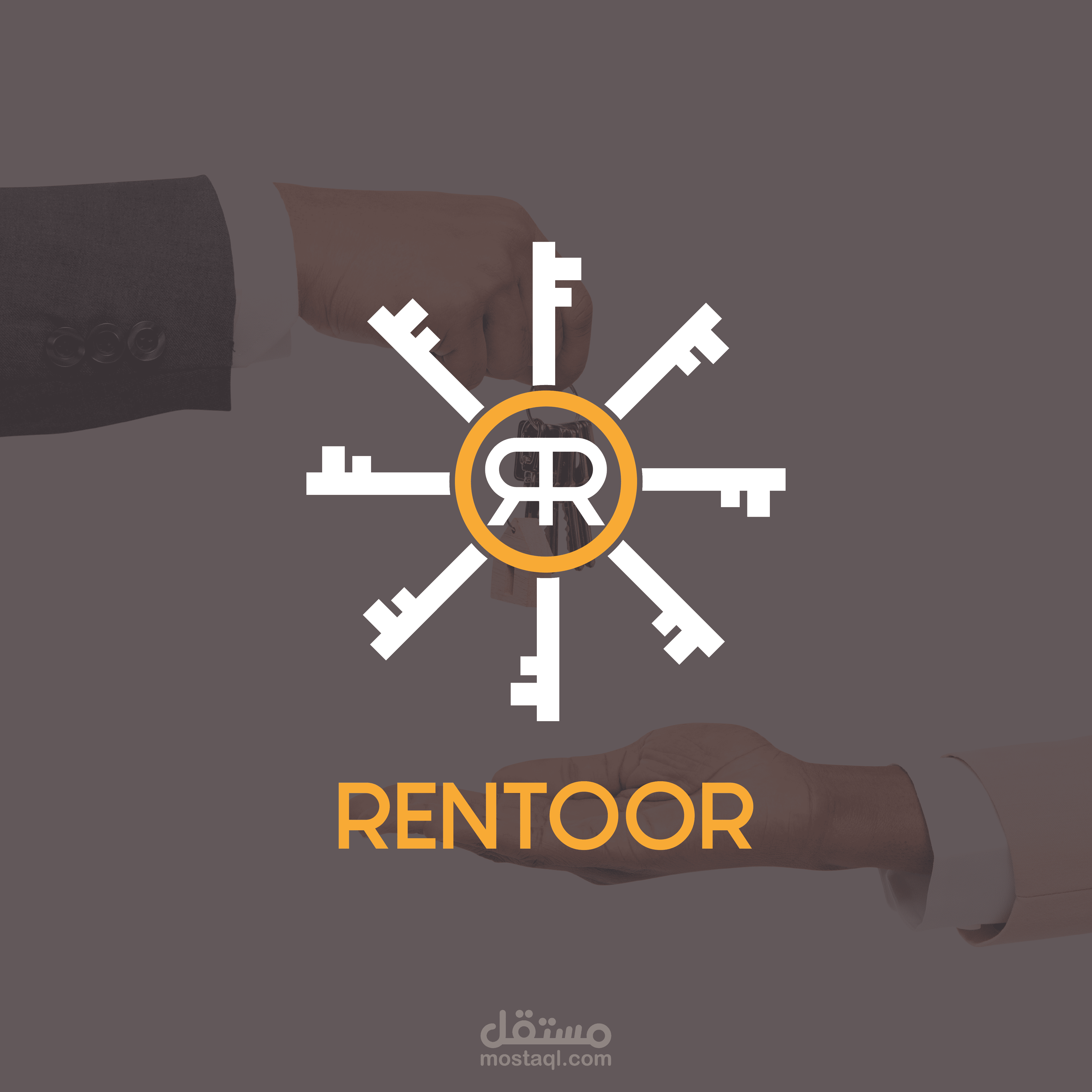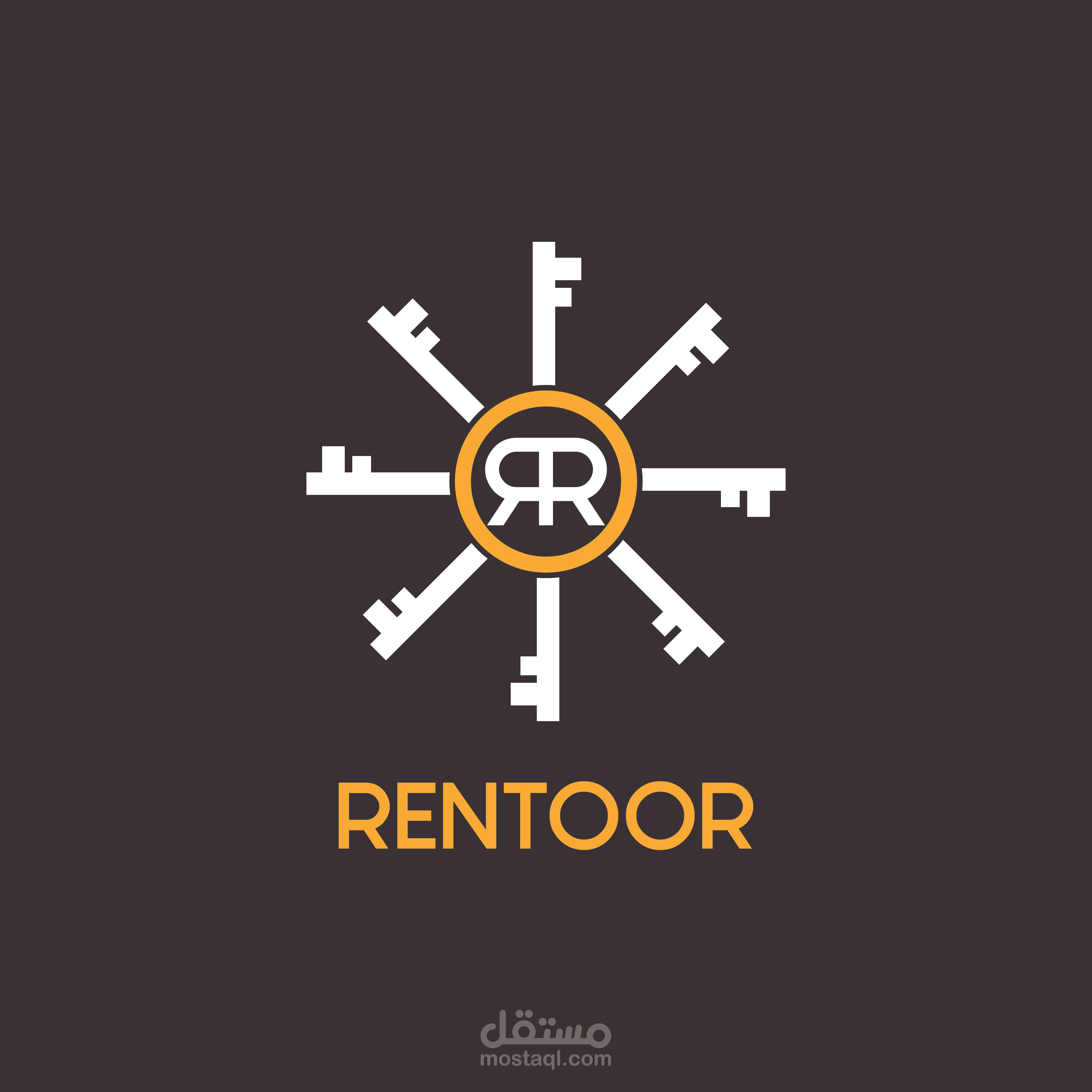 4. اختيار خطوط واضحة وسلسة لاسم "RENTOOR" لتعكس الاحترافية والبساطة.