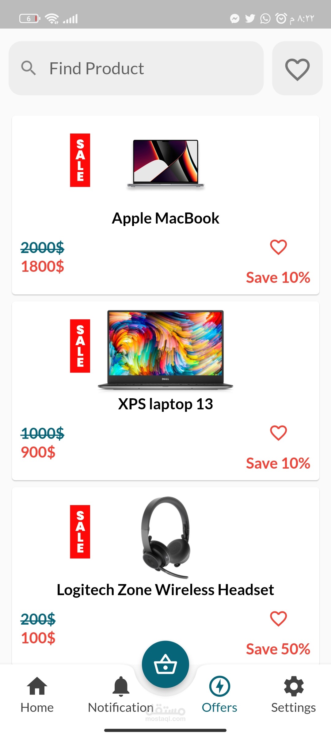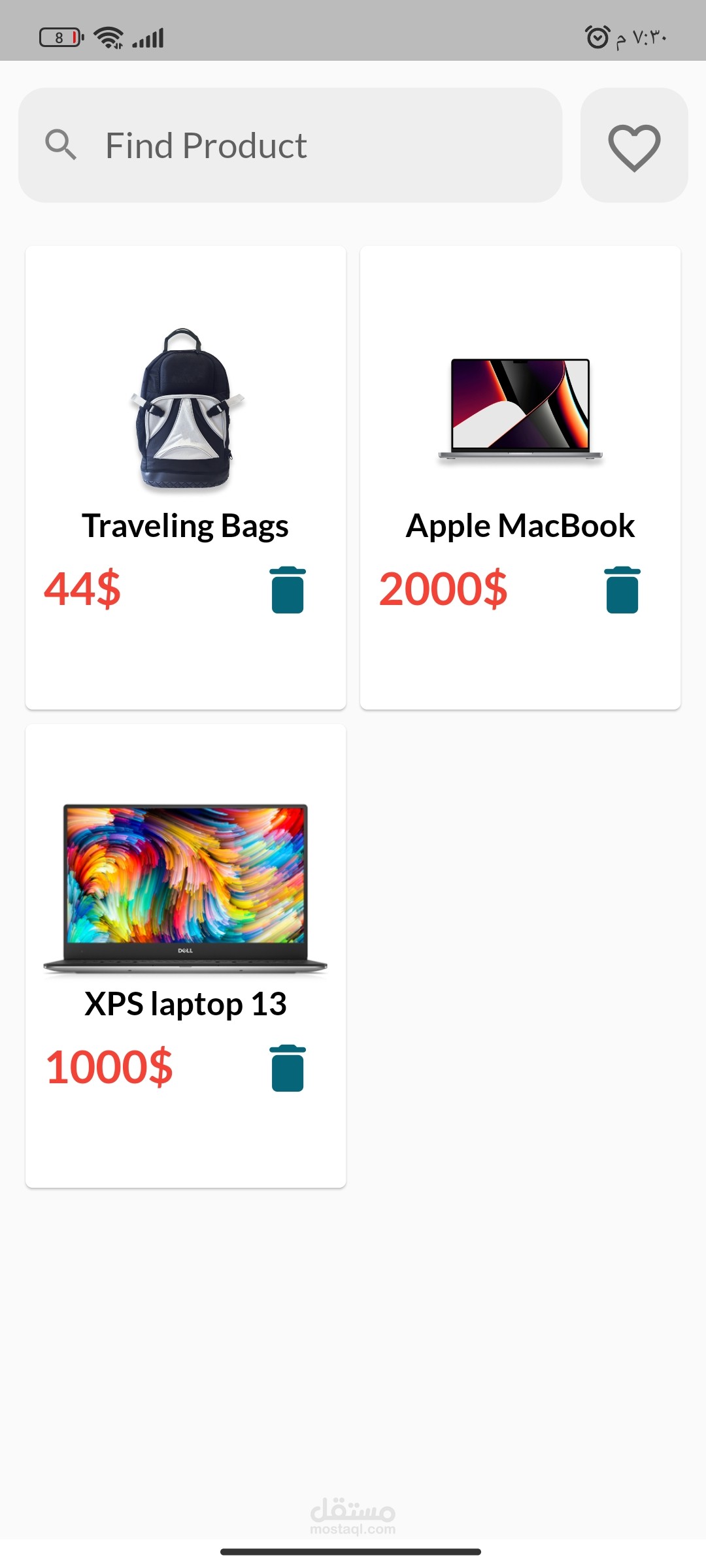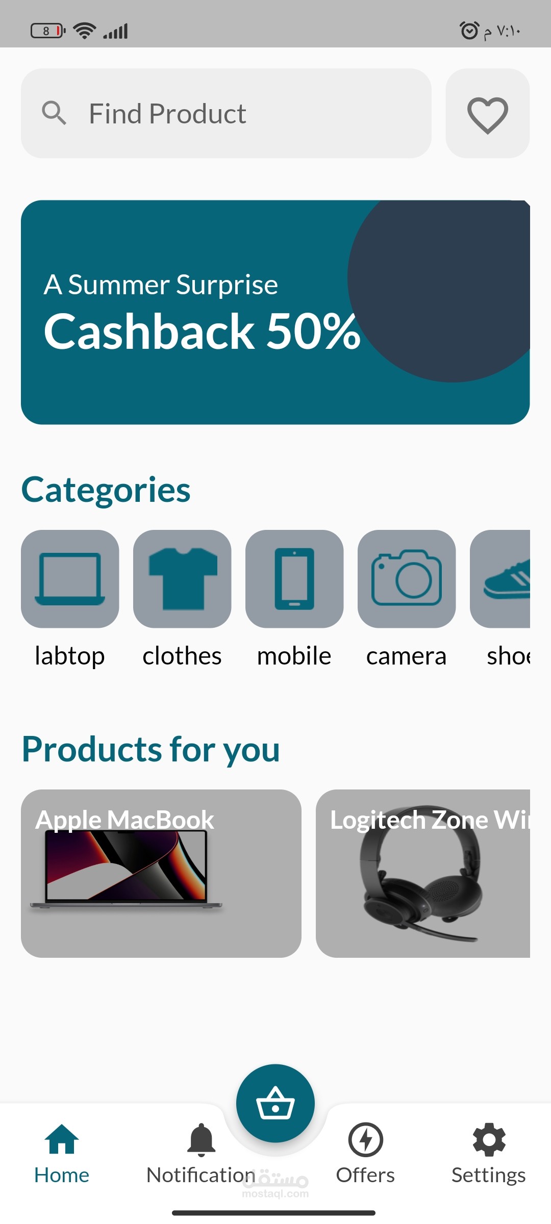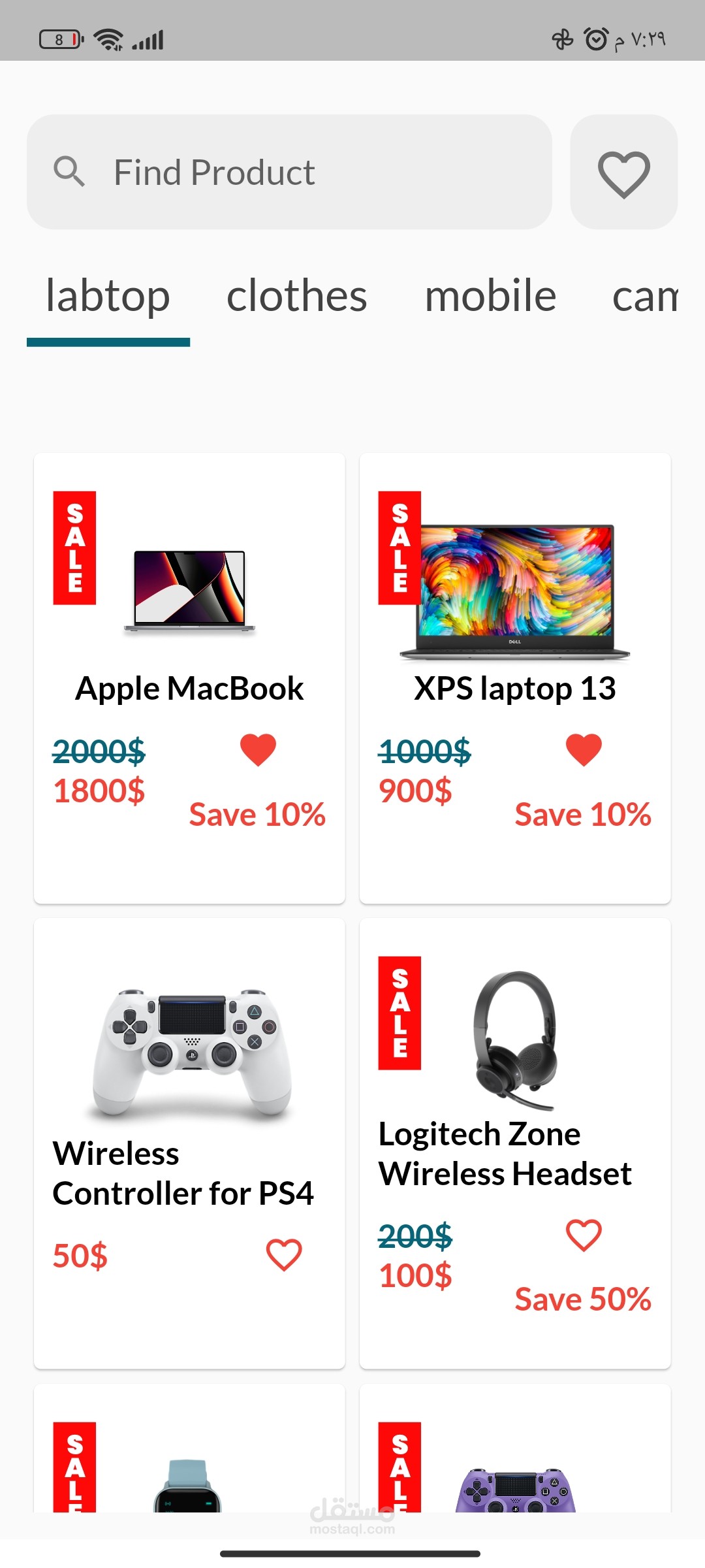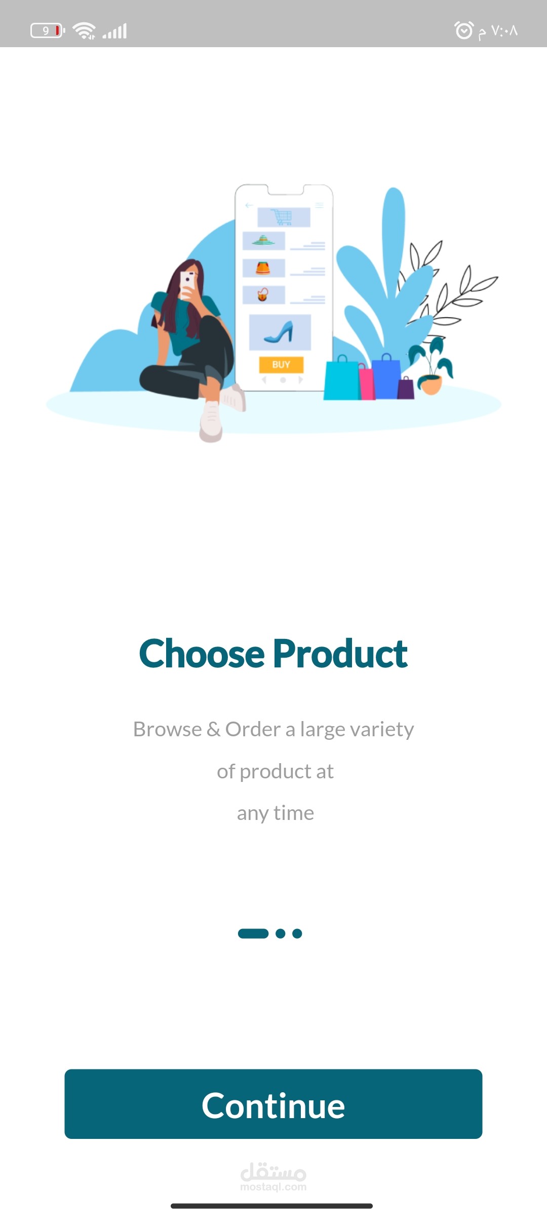 تطبيق جوال للتسوق عبر الإنترنت محسّن لأجهزة Android و iOS. يحتوي التطبيق على واجهة نظيفة وبديهية تتيح للمستخدمين تصفح المنتجات والبحث عنها بسهولة.