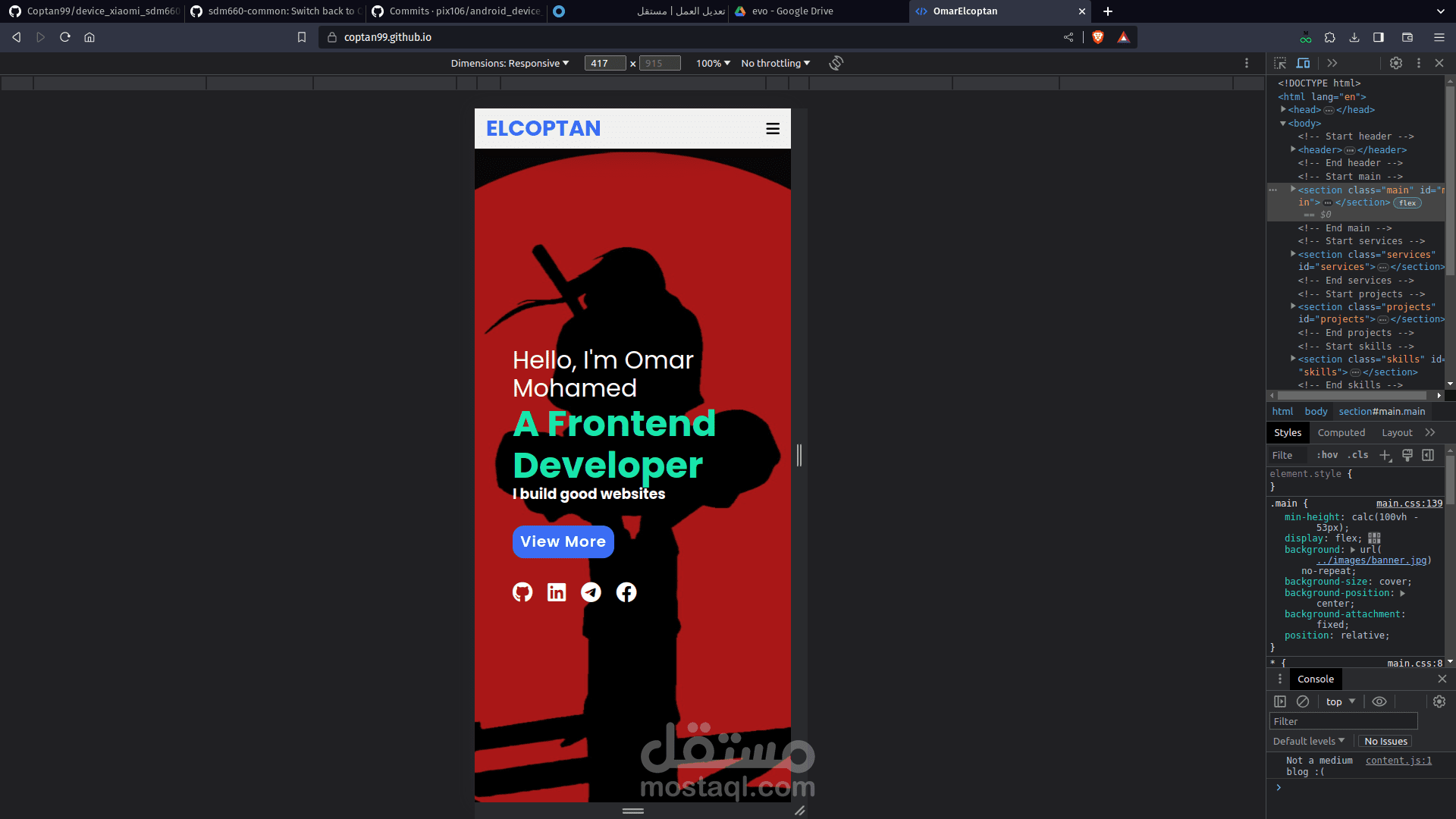 لقد قممت باتمام هذا المشروع بأستخدام Html + Css(full responsive) بعد فترة من التدريب والتعلم الذاتي ليكون نبذة تعريفية عني وعن اعمالي