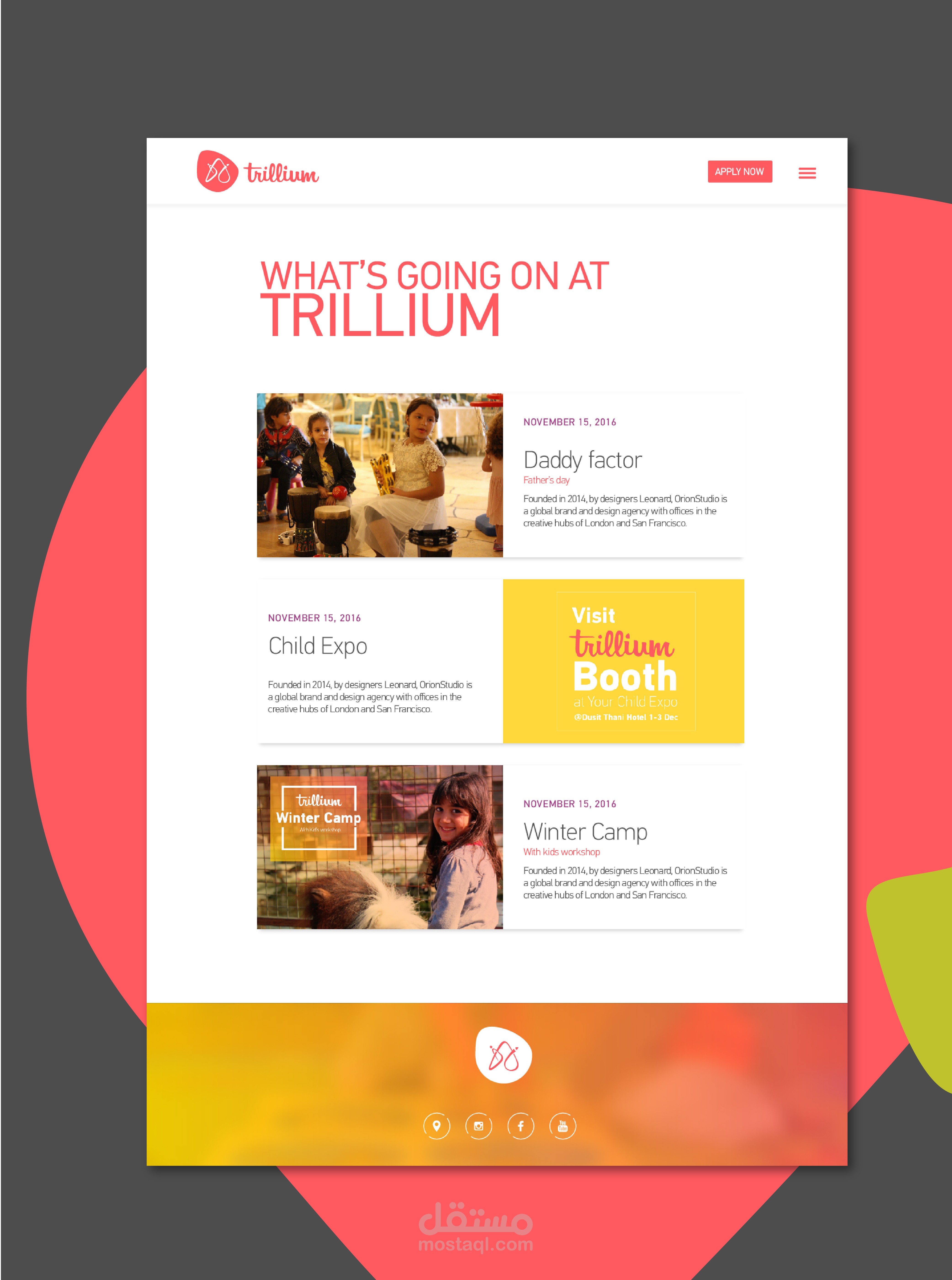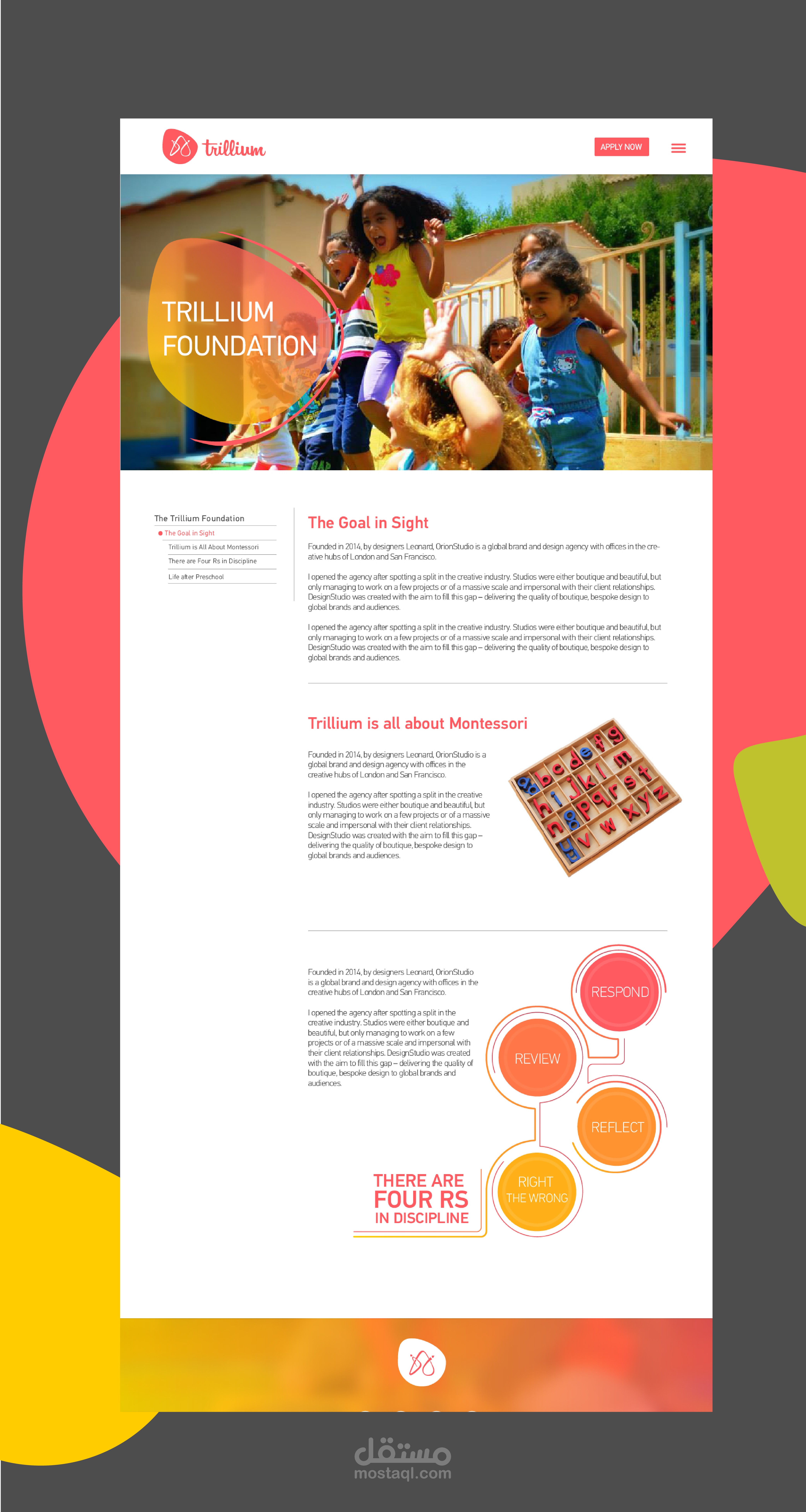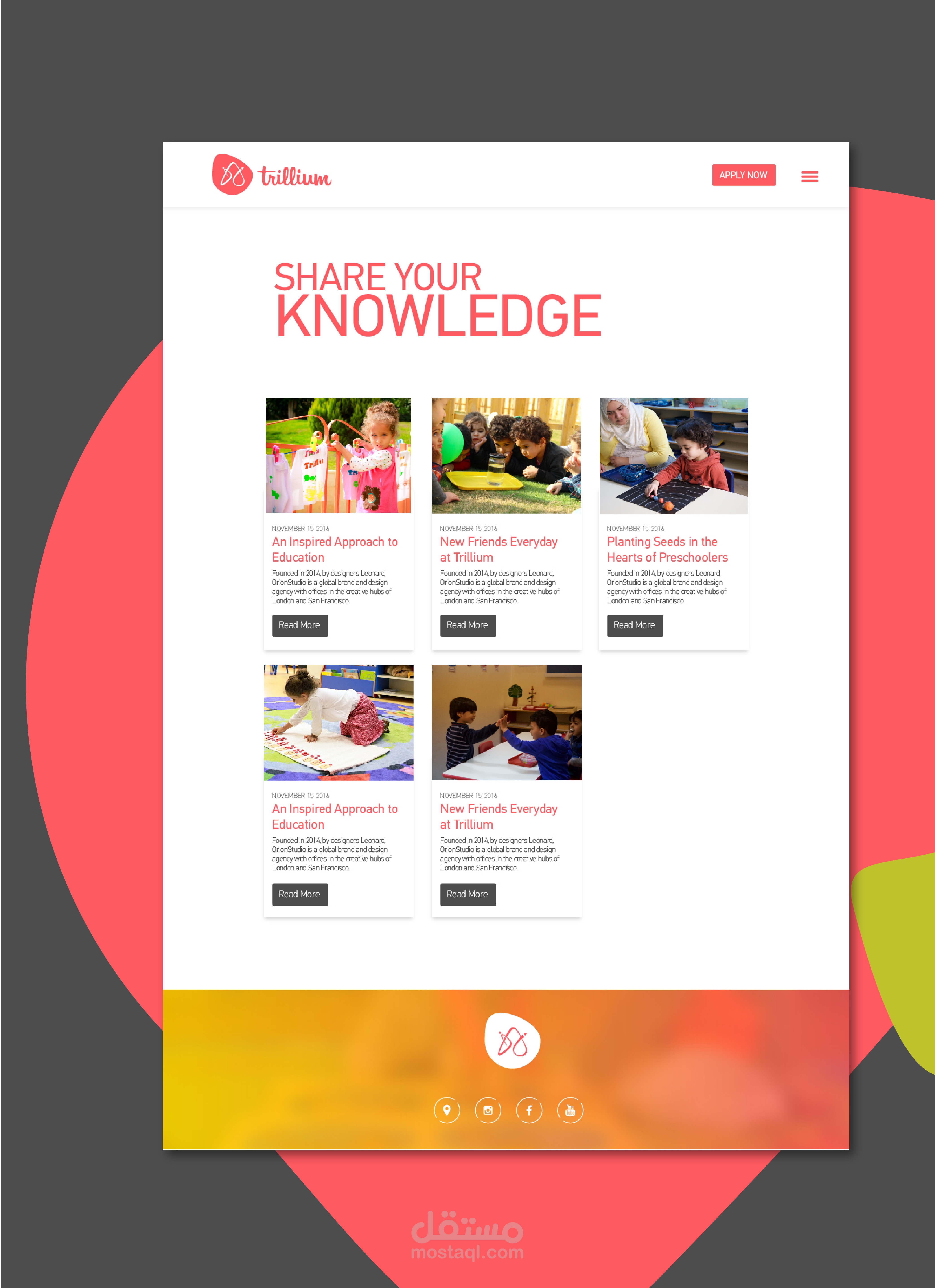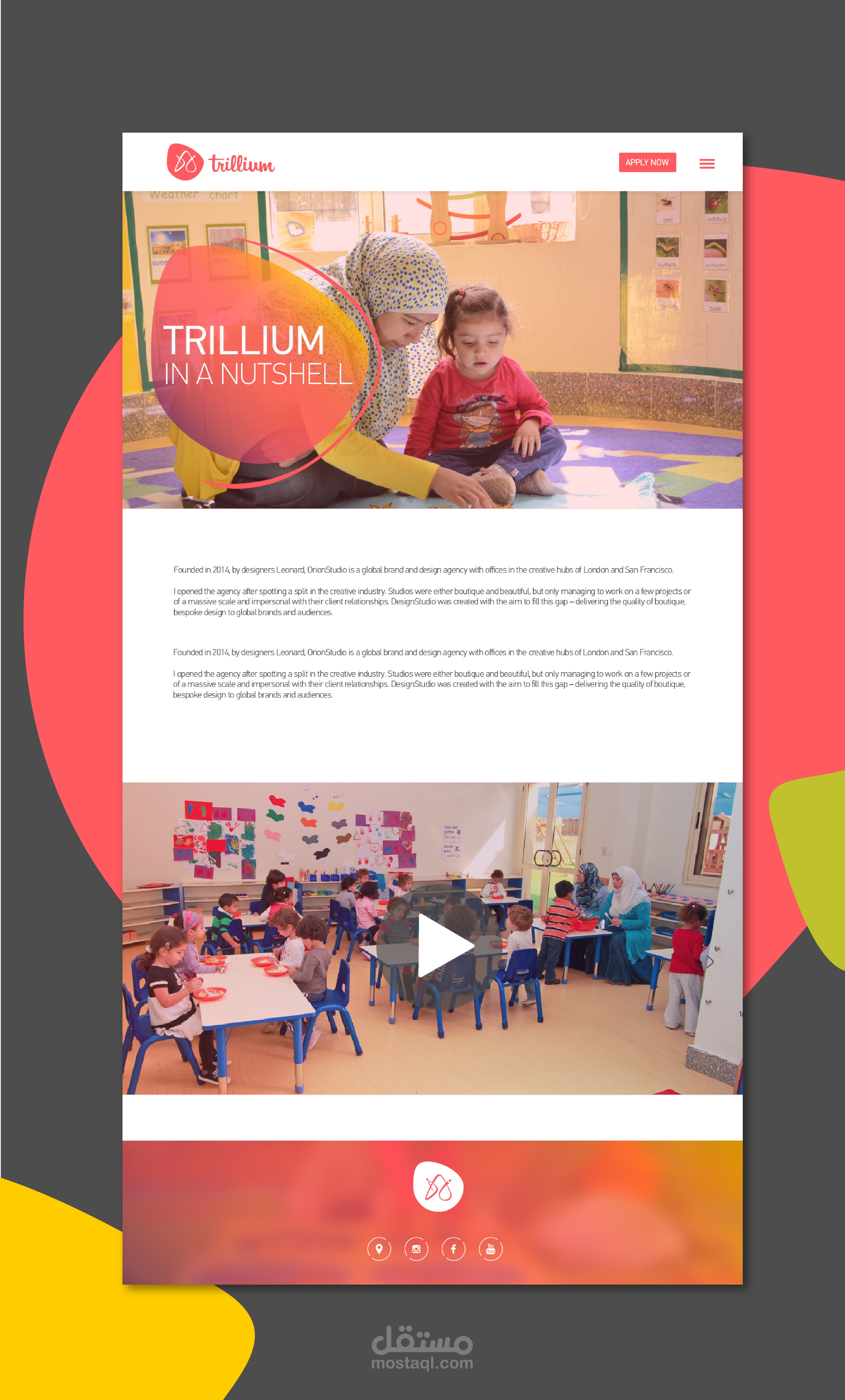 موقع إلكتروني خاص بمركز للإعتناء بإطفال ما قبل عمر المدرسة