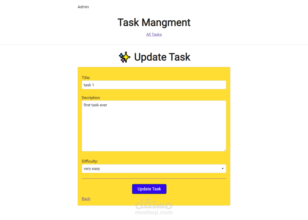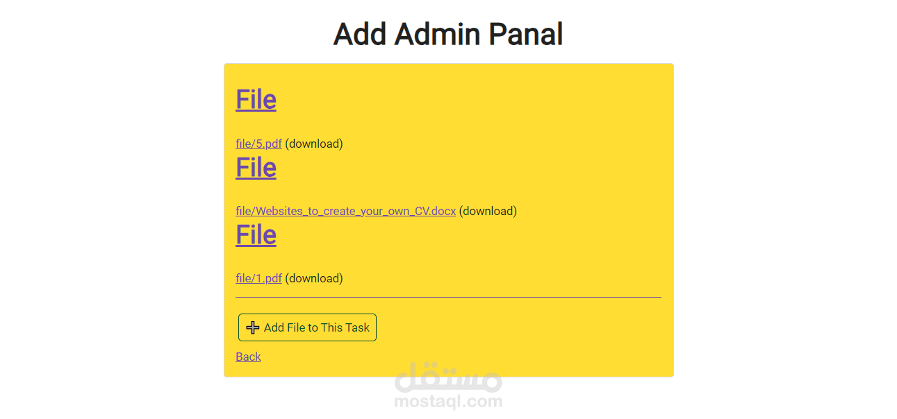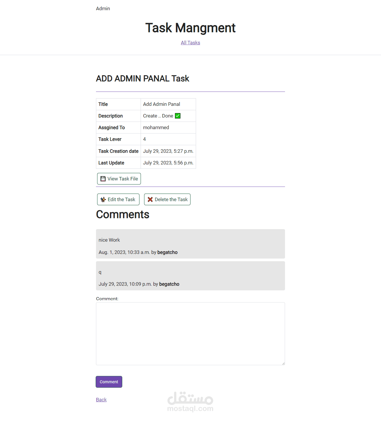 موقع لادارة المهمام و الملفات تمت برمجته بلغة python باستخدام اطار العمل Django في الواجهة الخلفية Backend