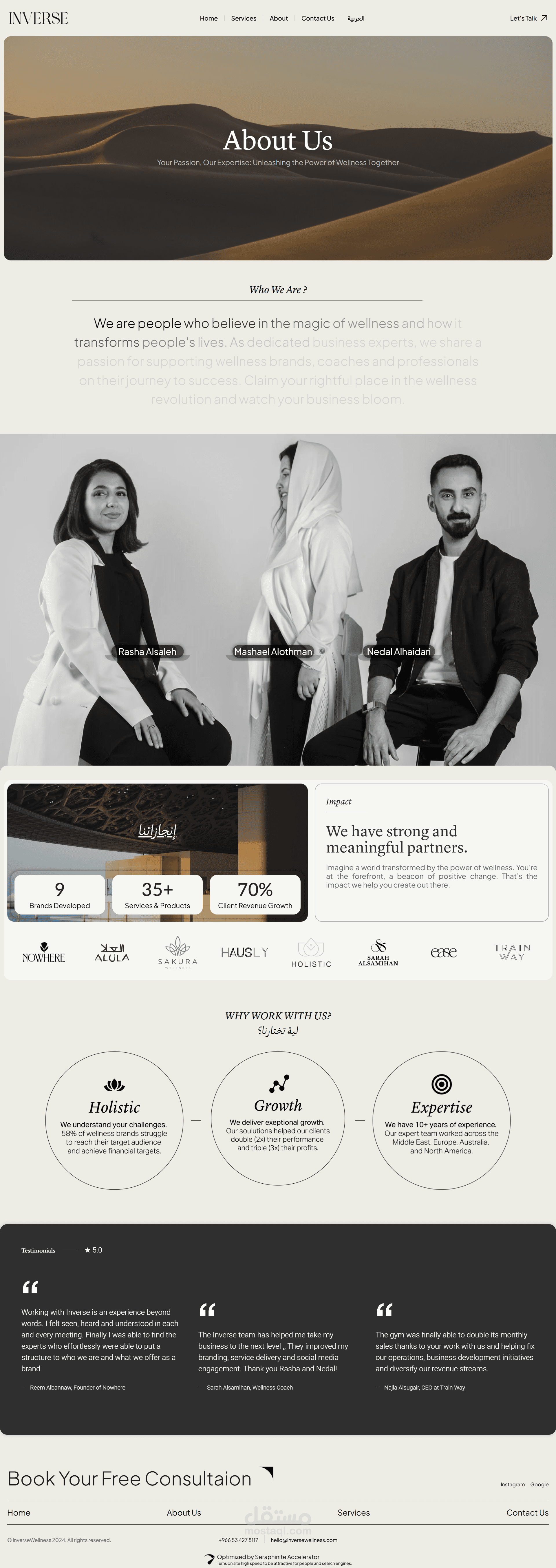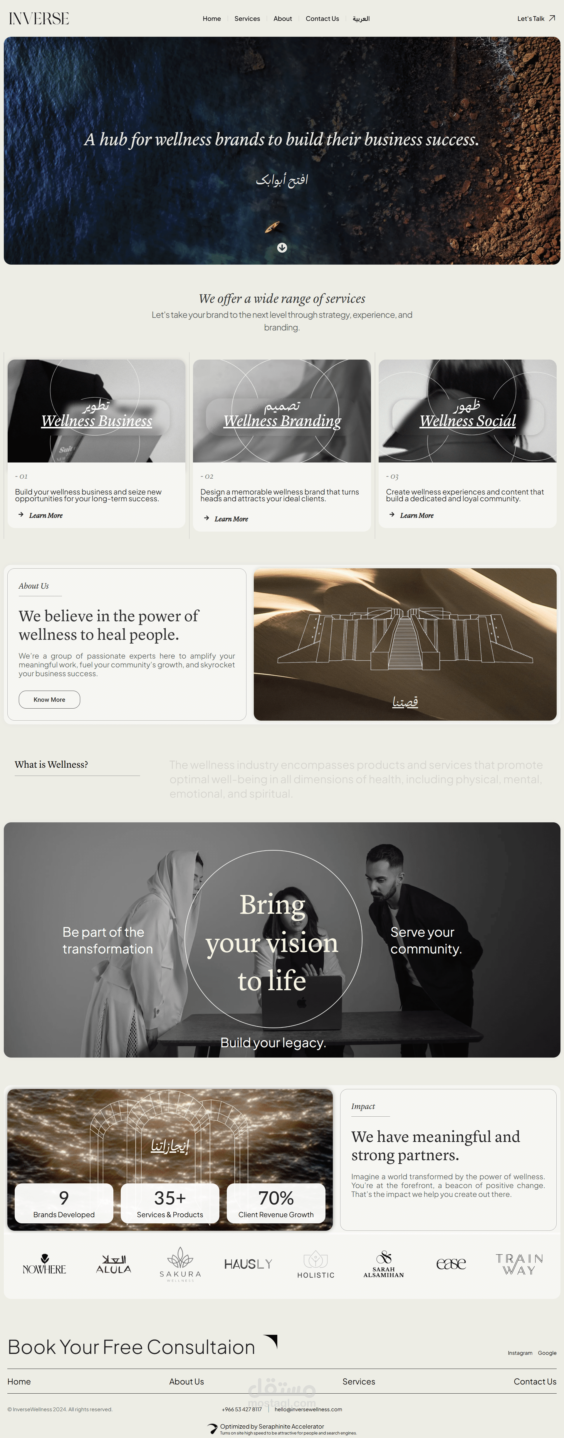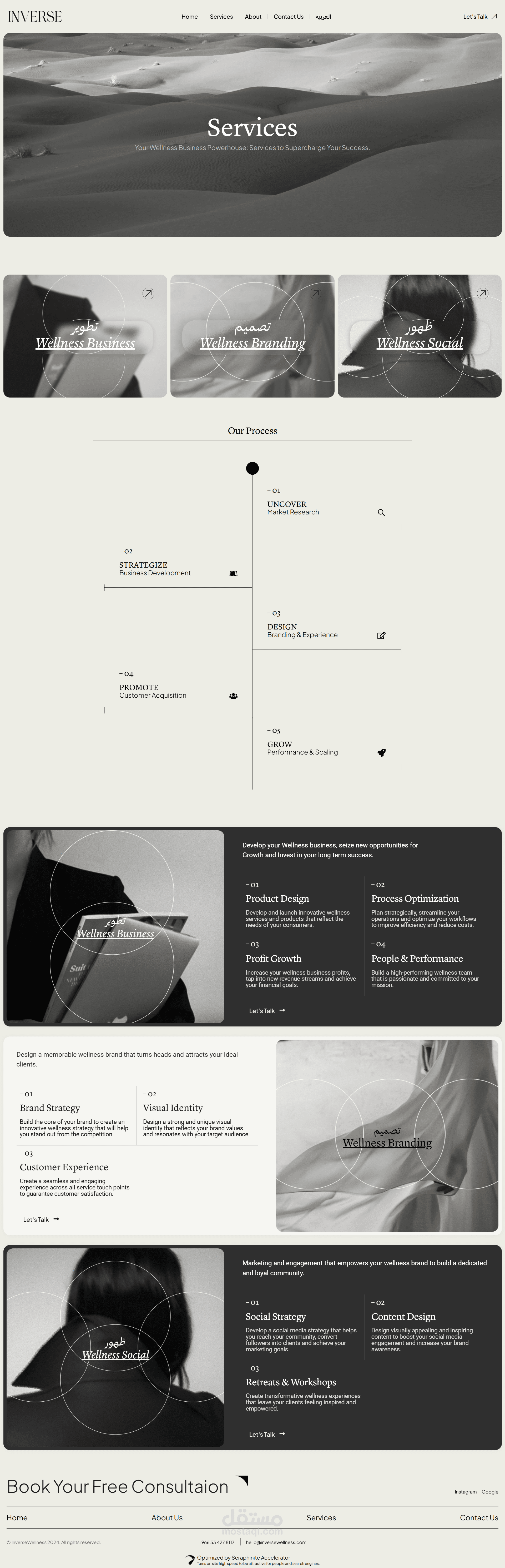 يتميز الموقع بتصميم عصري، ثنائي اللغة (العربية والإنجليزية)، يعرض الخدمات بطريقة جذابة ومحفزة لاتخاذ القرار.