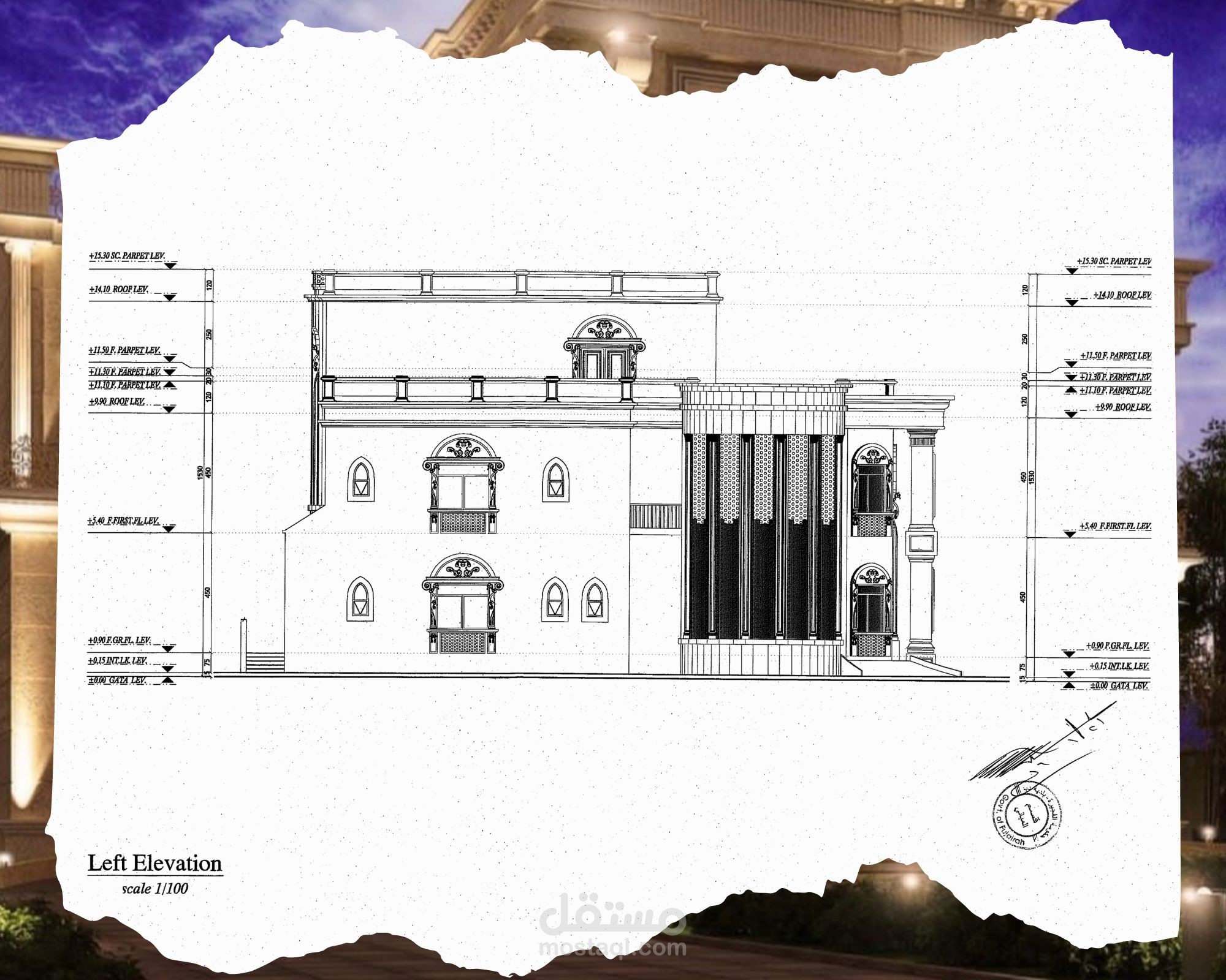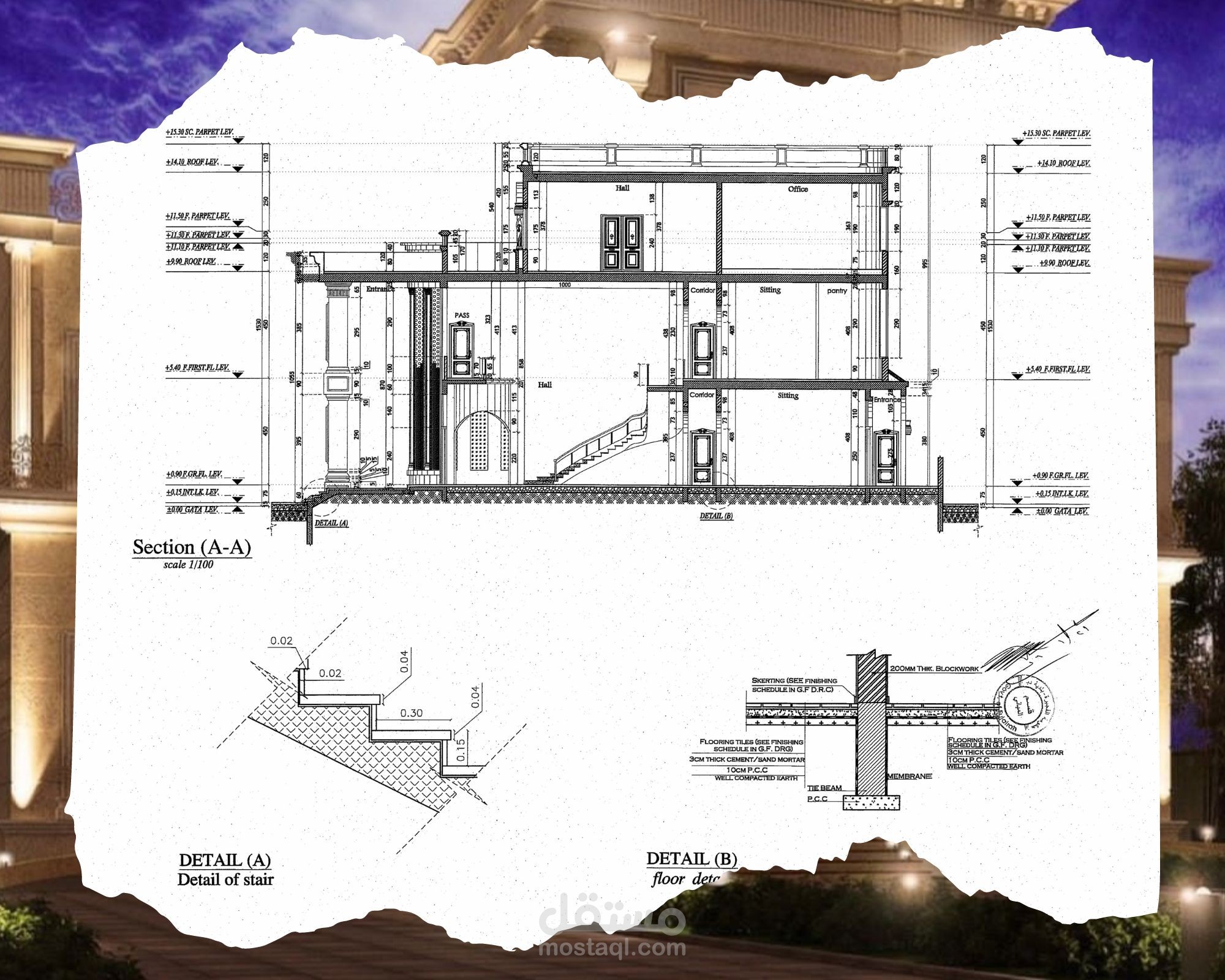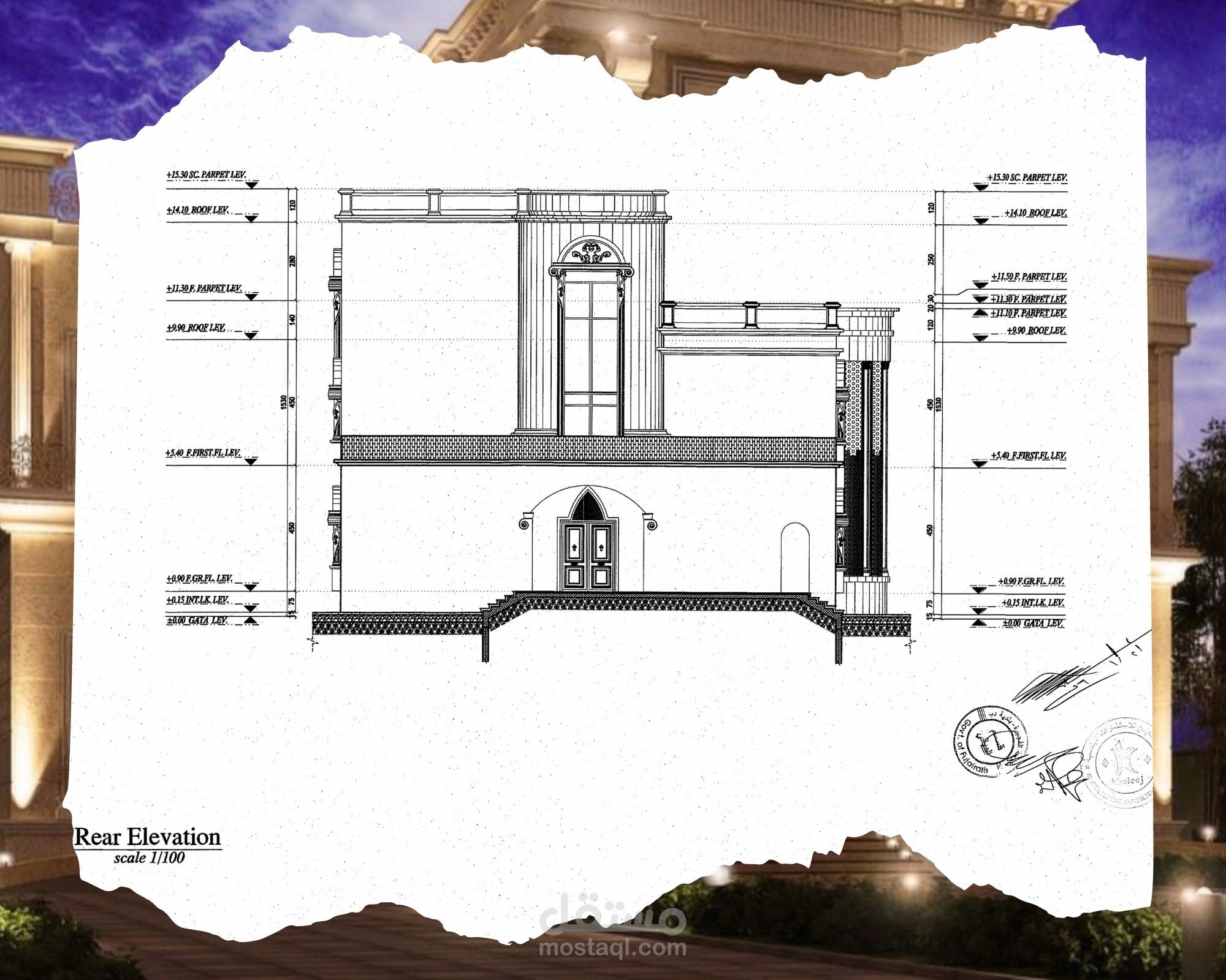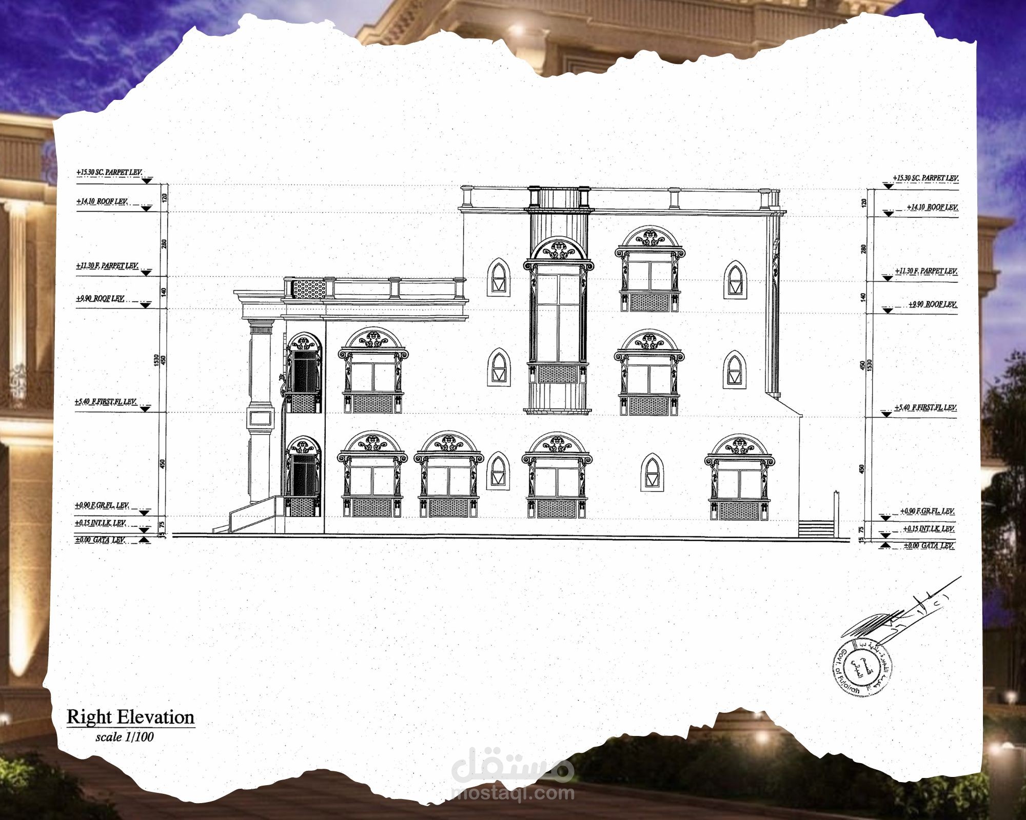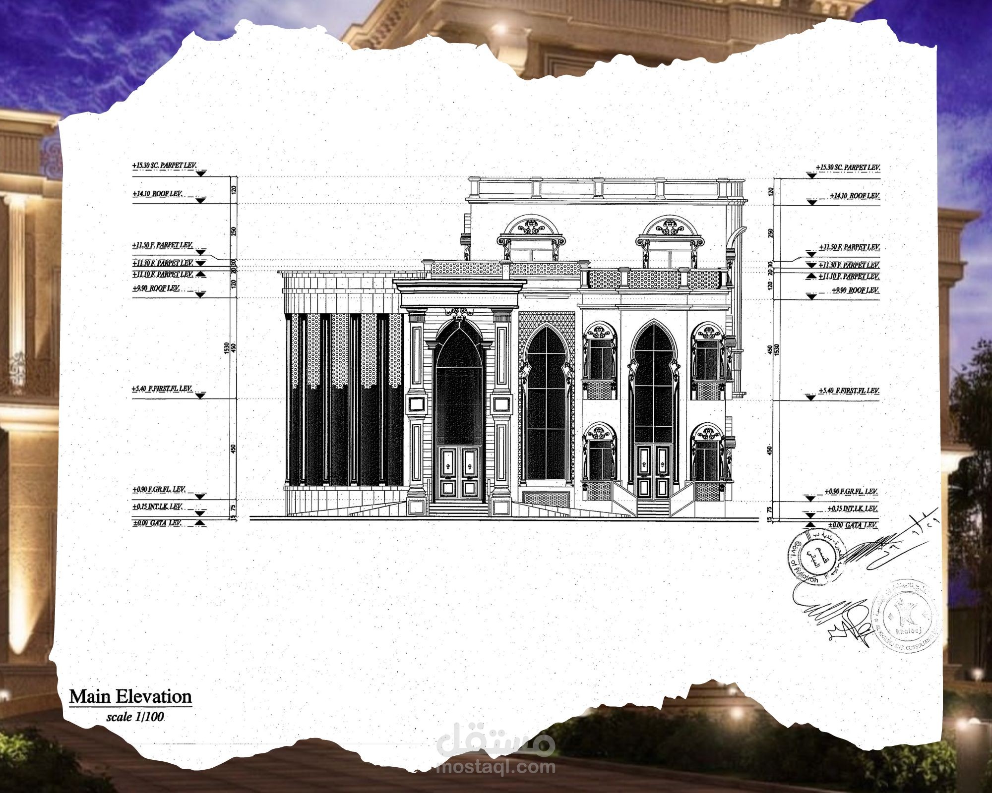 Classic villa shop drawing, G+2 - UAE