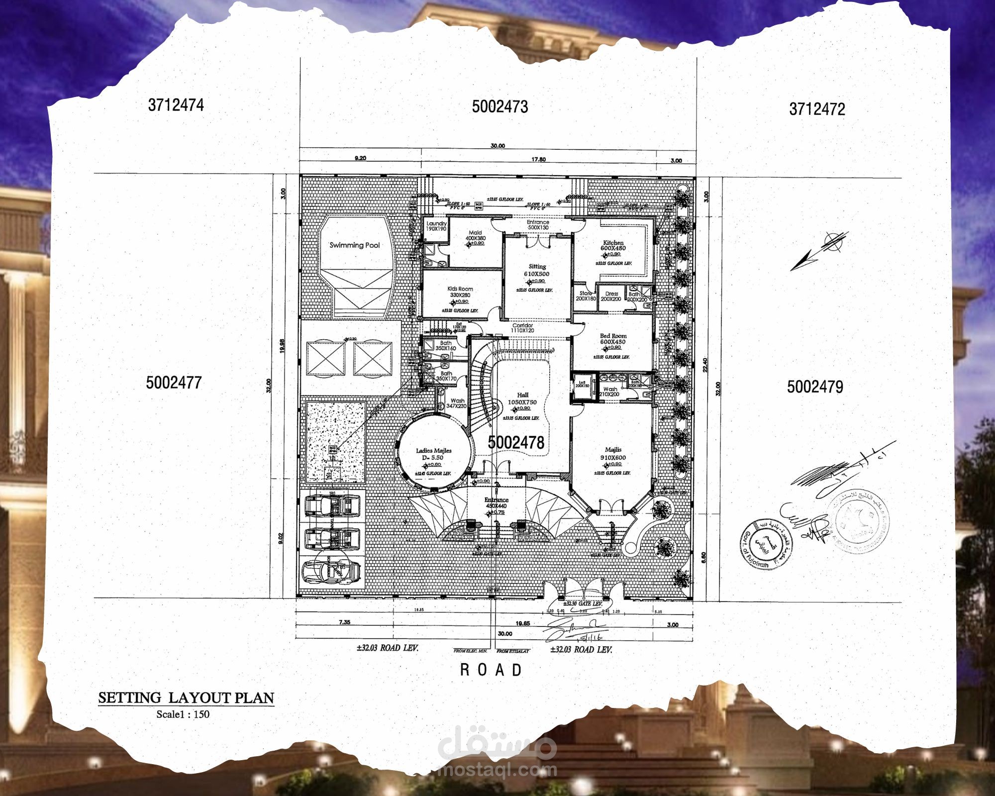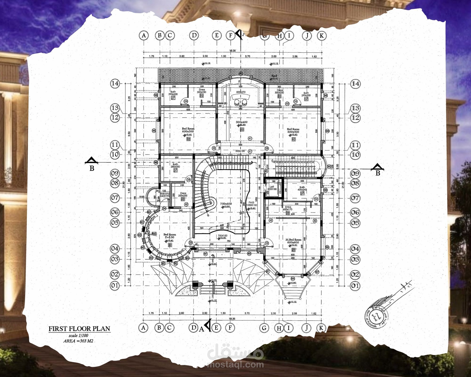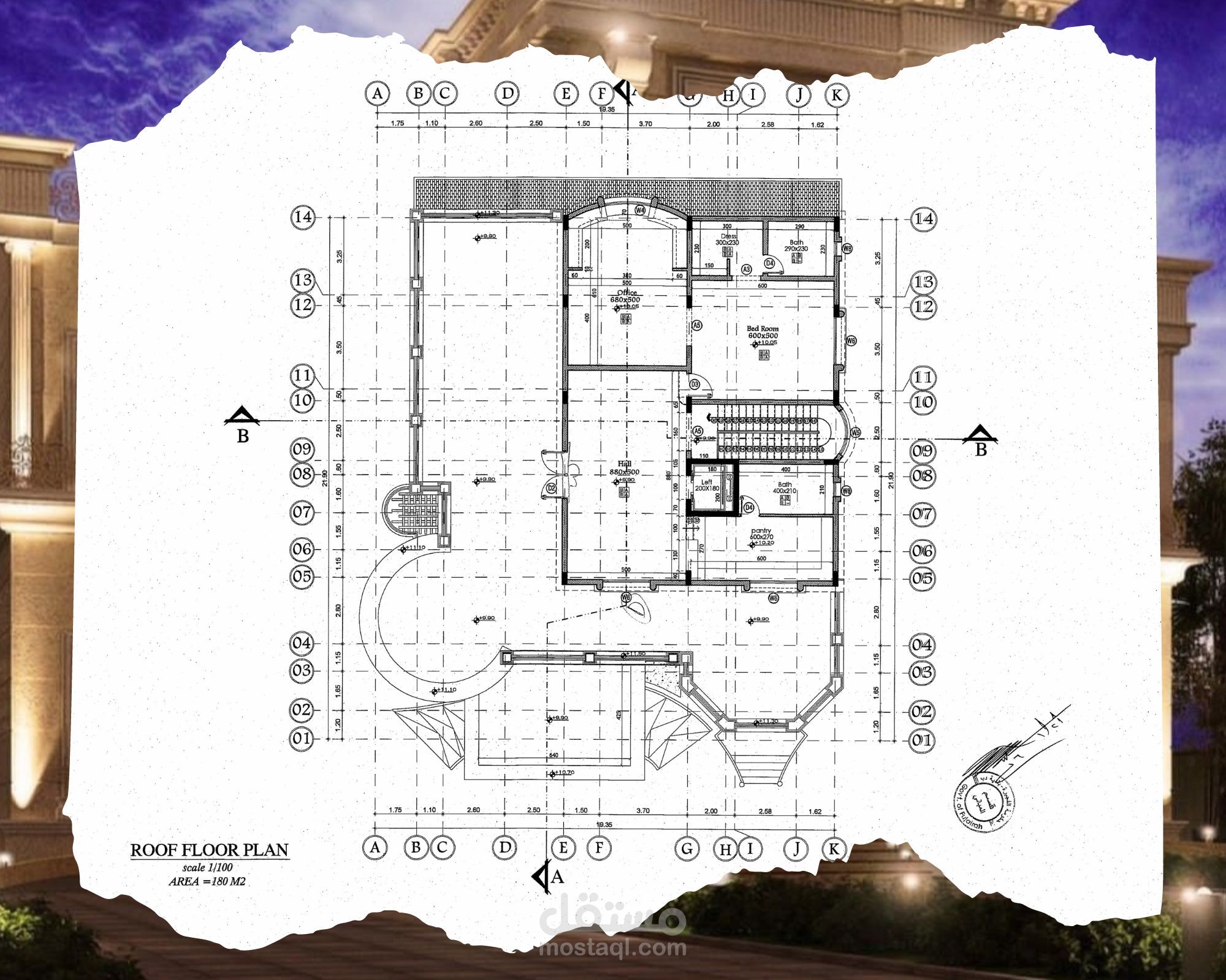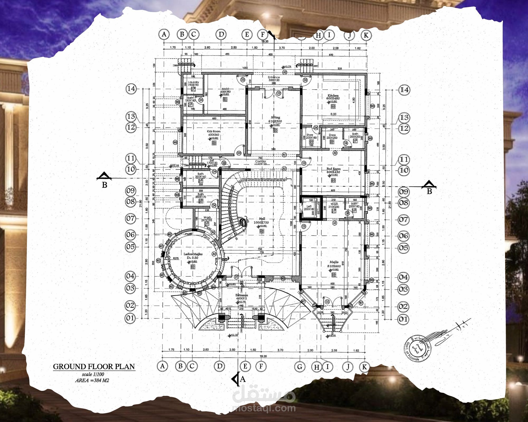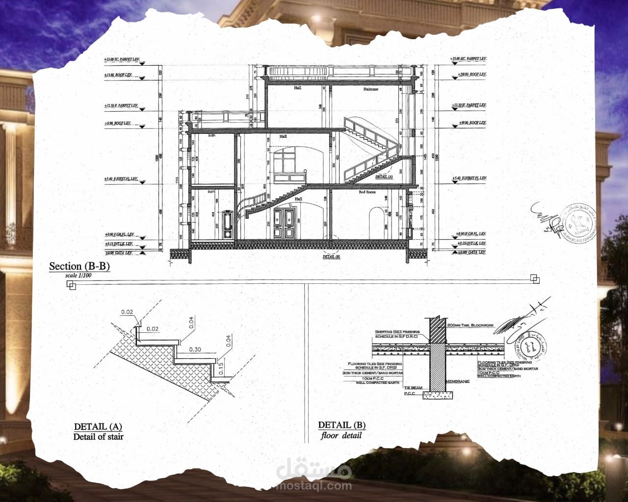 Classic villa shop drawing, G+2 - UAE