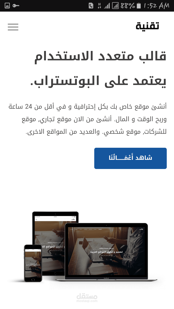 قالب تقنية تم تصميمه كموقع تعريفي للشركات المؤسسات والأعمال