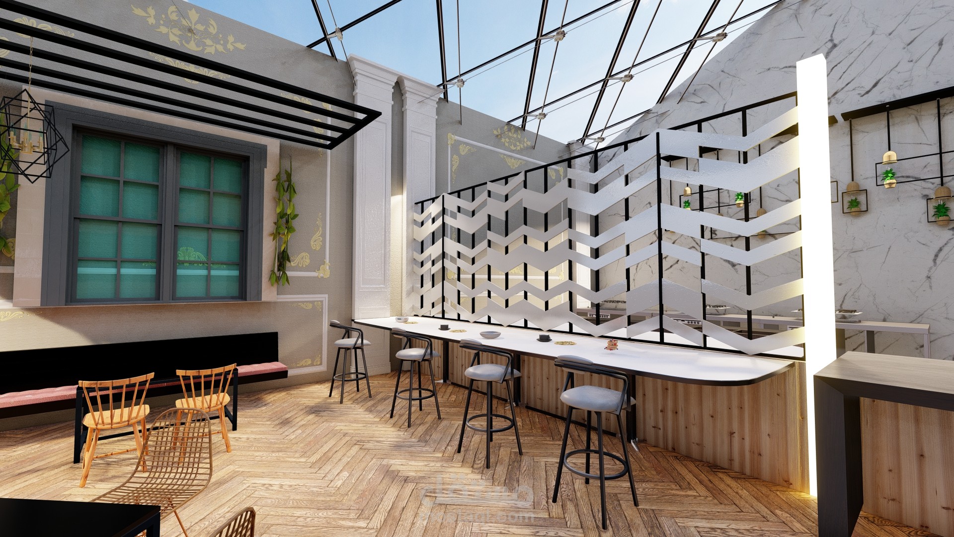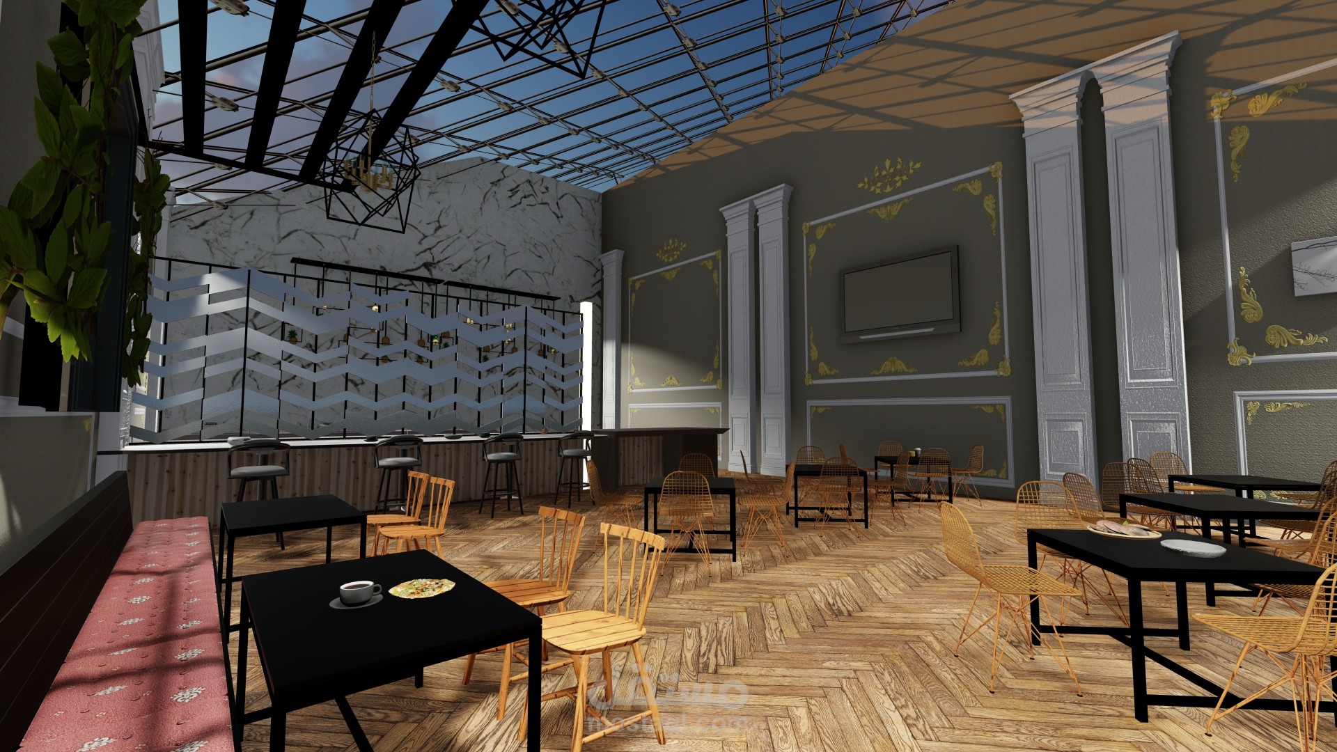 تم تنفيذ المشروع بشكل مماثل لتصميم المبنى القديم وأسلوبه ، مع الاهتمام بأدق تفاصيل المبنى (أسلوب النهضة الإيطالي) ، فقط تغيير وظيفته الداخلية وعنوانه. اضافة الى اضافة مدخل خاص وفريد من نوعه امام المبنى لجذب الناس.
