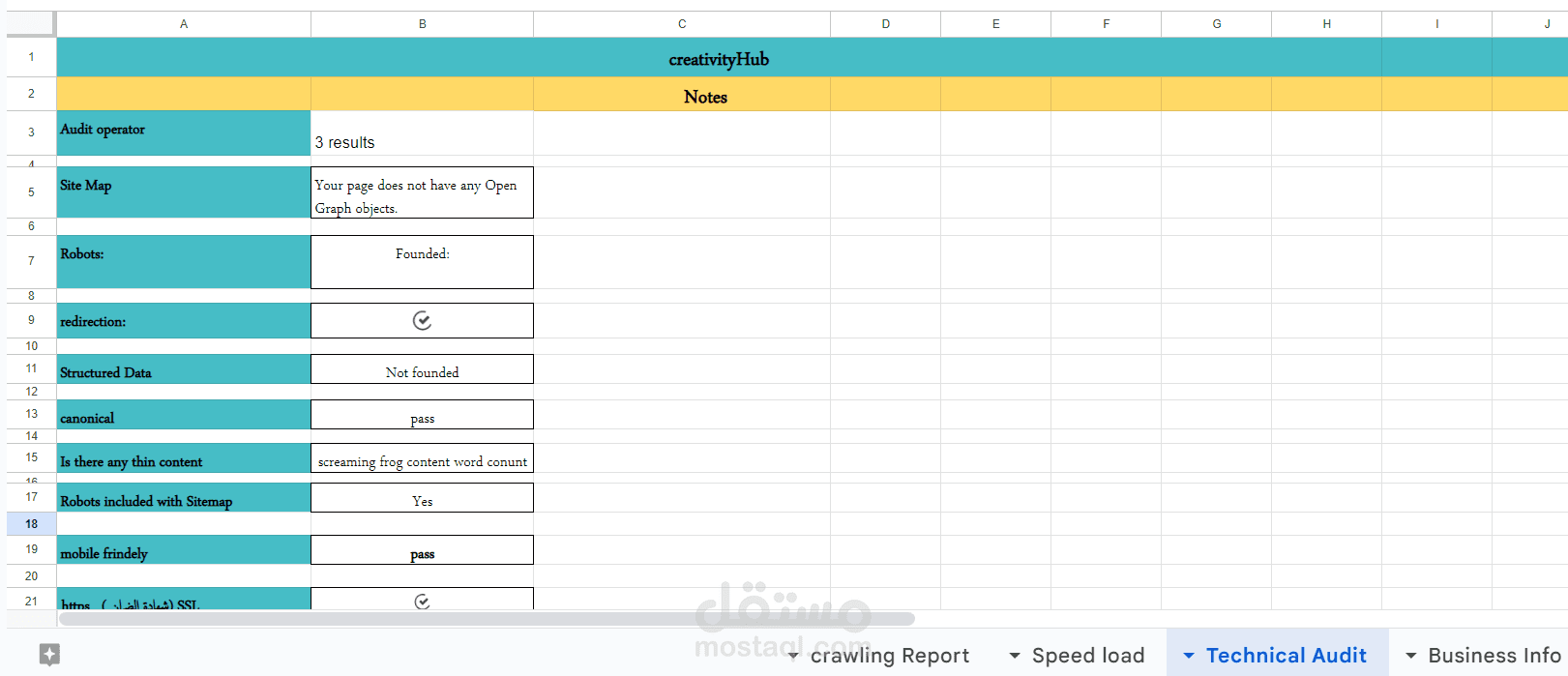 فحص وتحليل موقع واكتشاف جميع الأخطاء فيه ووضع حل لكافة الأخطاء في الملاحظات وتقدير سرعة الموقع حيث يجب أن لا يزيد تحميل الموقع عن ثانيتين.