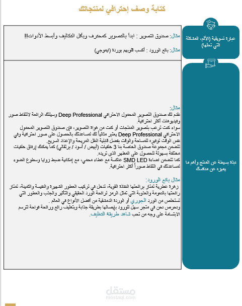 جزئ من نموذج كتابة وصف المنتجات الأحترافي
