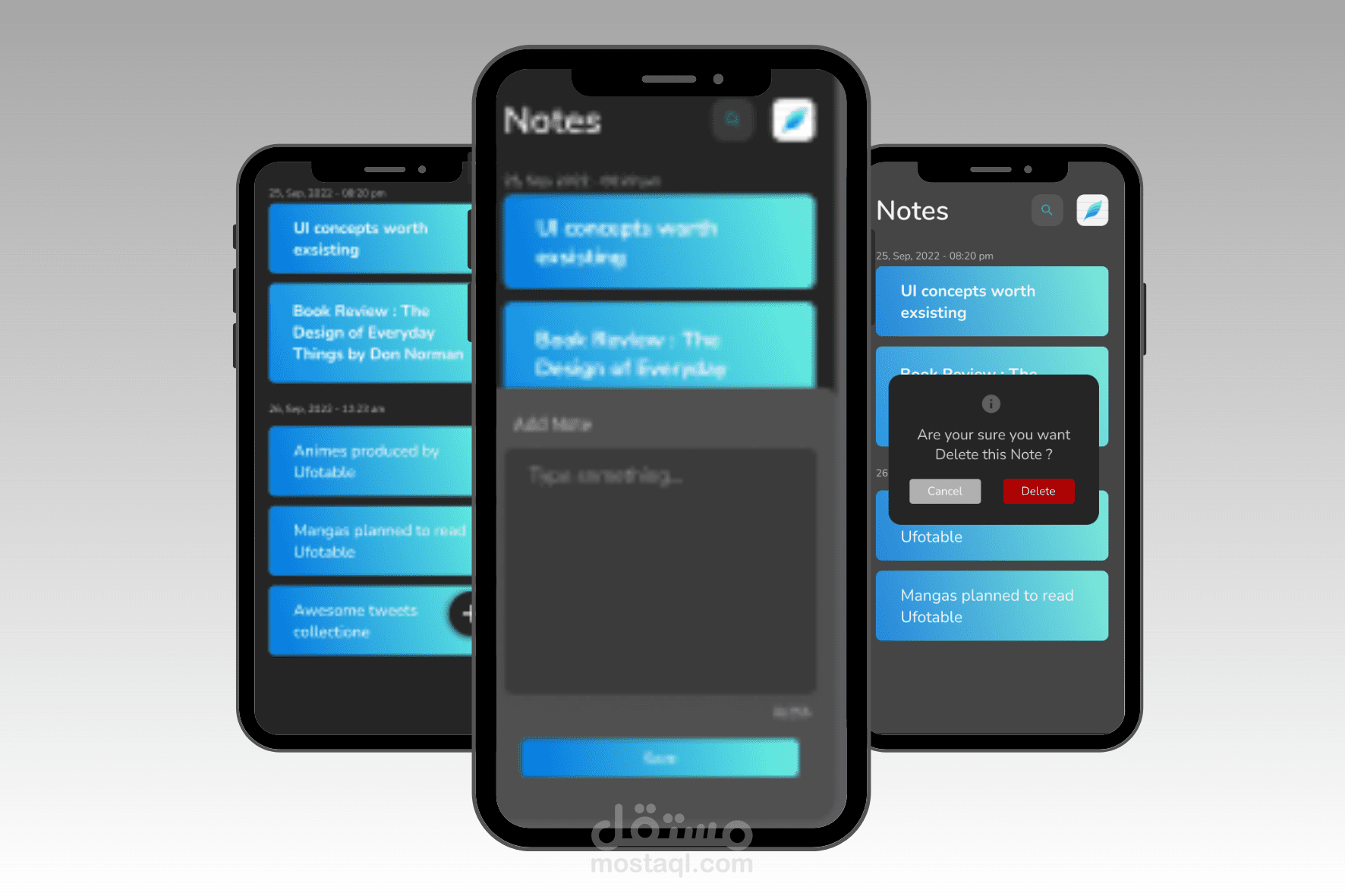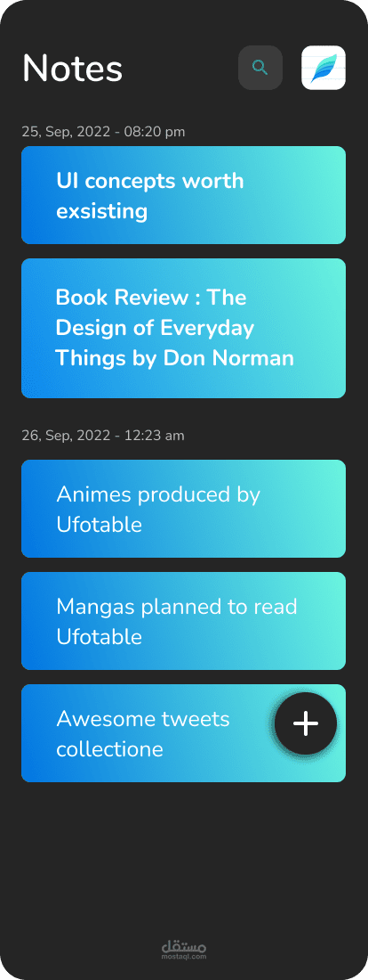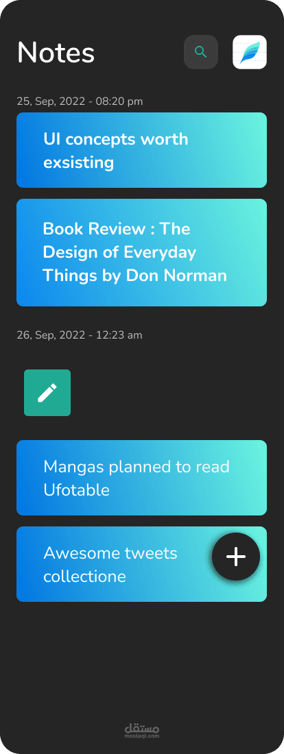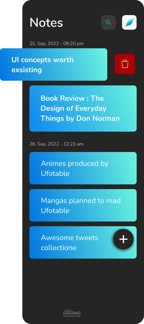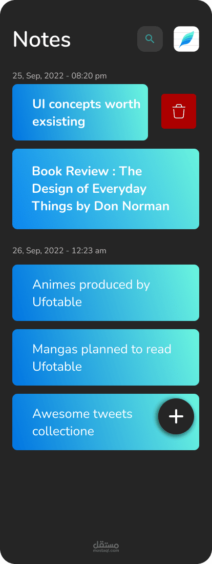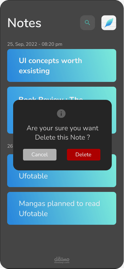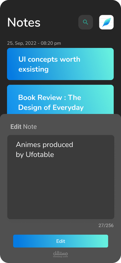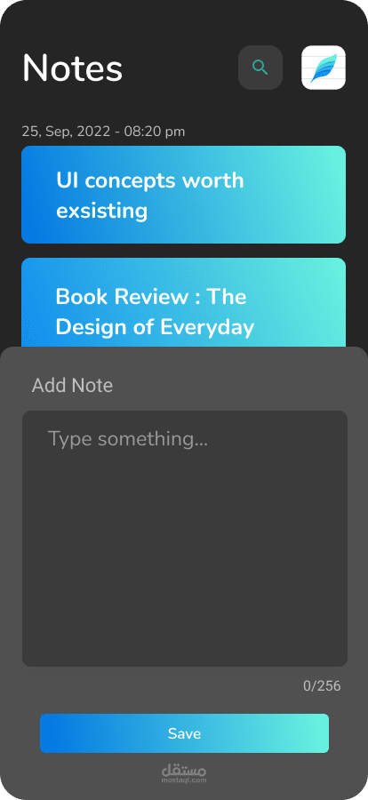 تطبيق Note تم تطويره باستخدام Flutter وهو تطبيق محمول يتيح للمستخدمين إنشاء ملاحظاتهم الرقمية وتعديلها وتنظيمها وإدارتها بطريقة مريحة وسهلة الاستخدام.