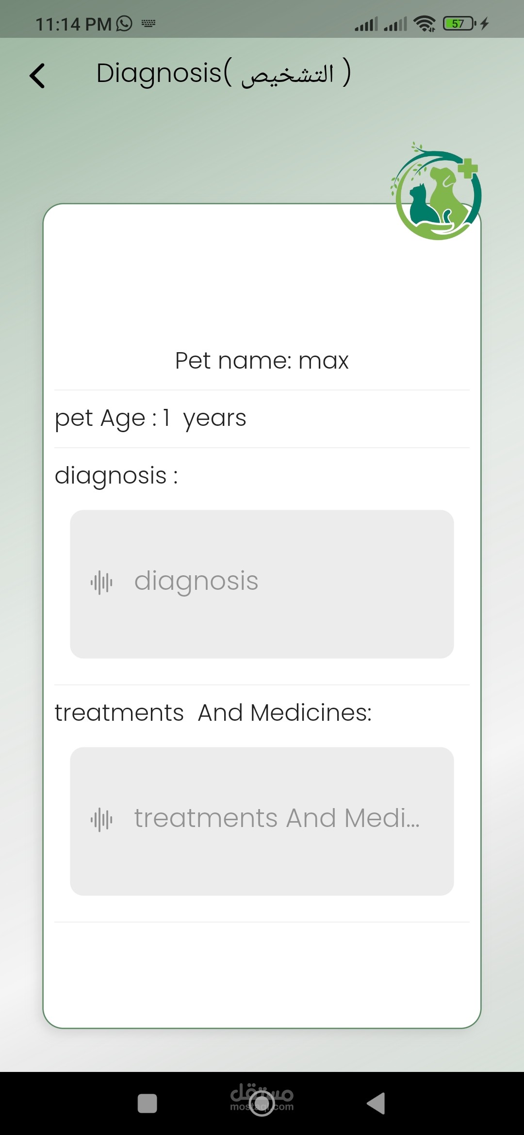 تطبيق ونظام لعيادة بيطرية لتسهيل التواصل بين الطبيب والعميل