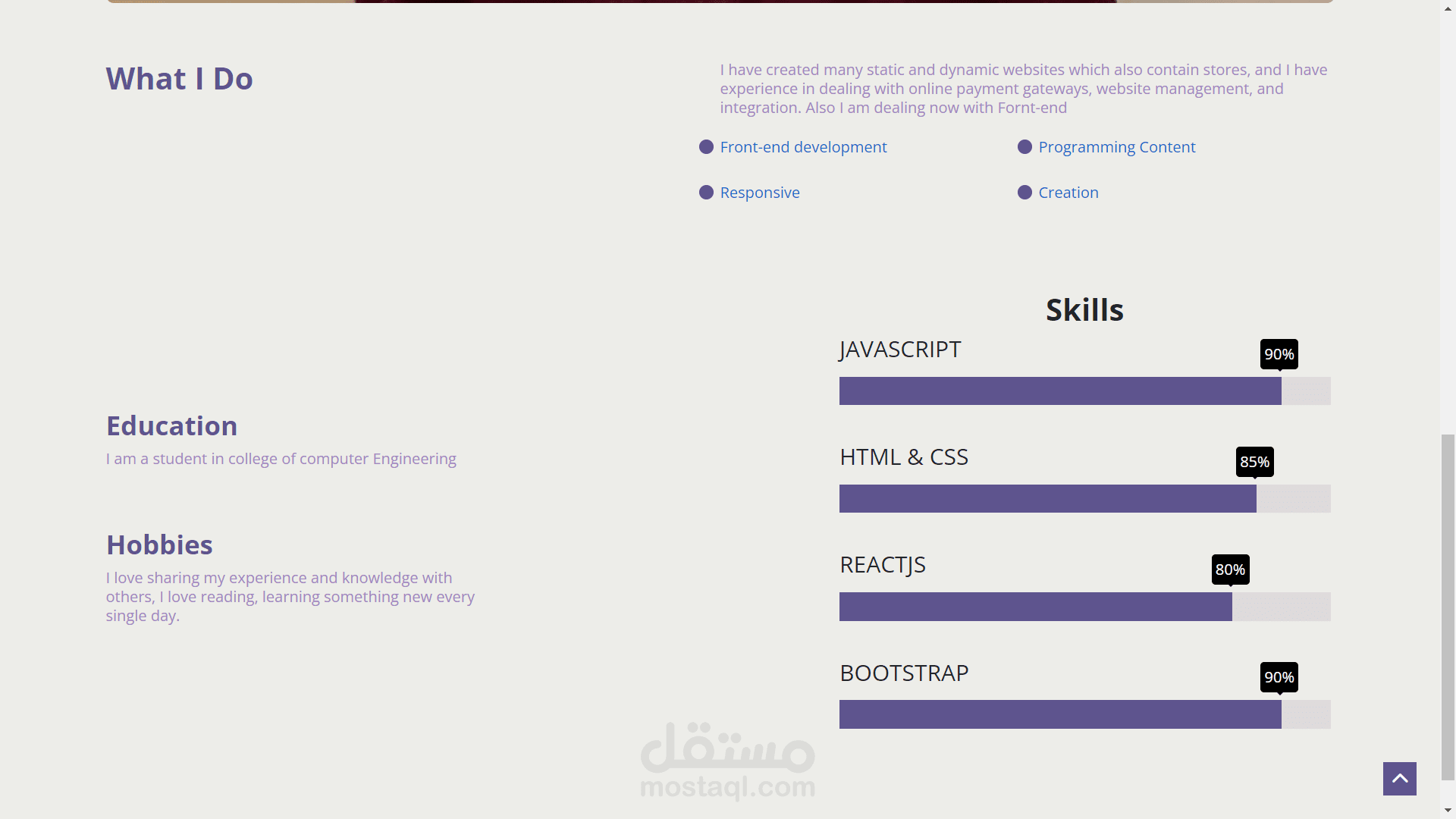 لقد قمت بعمل موقعى الشخصى واتكلم فيه عن مهاراتى واعمالى السابقه والمشتريع التى قمت بها وصفحه خاصه بالتواصل بها الحساب الخاص بى ورقم هاتفى وموقعى