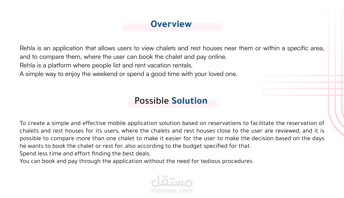 رحلة هو تطبيق يتيح للمستخدمين مشاهدة الشاليهات والاستراحات القريبة منهم أو في منطقة معينة ، ومقارنتها ، حيث يمكن للمستخدم حجز الشاليه والدفع عبر الإنترنت.