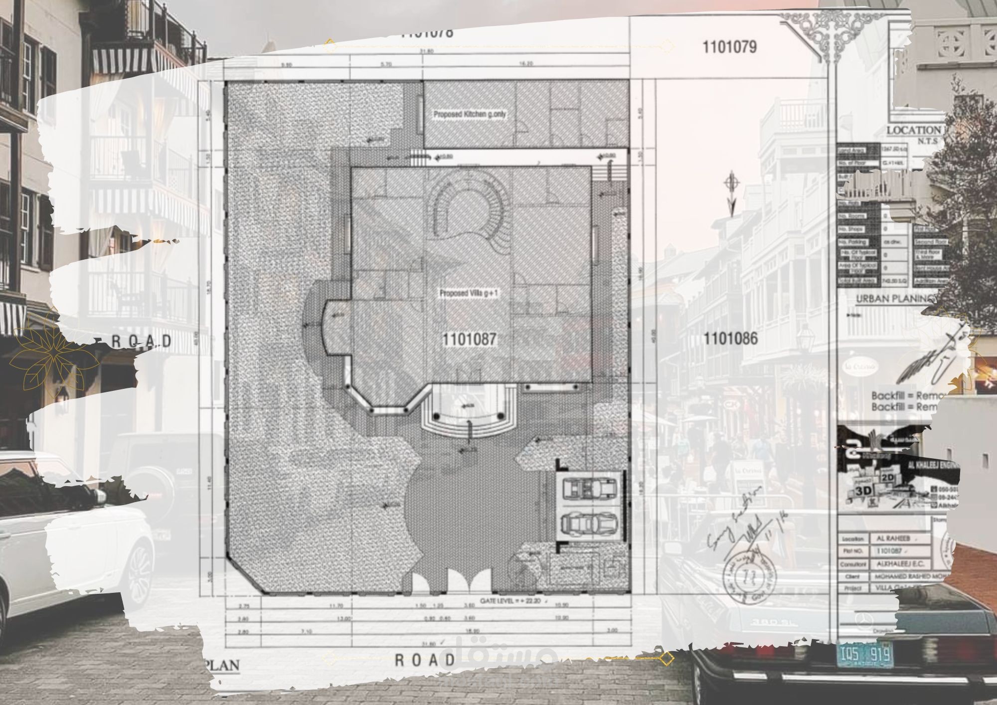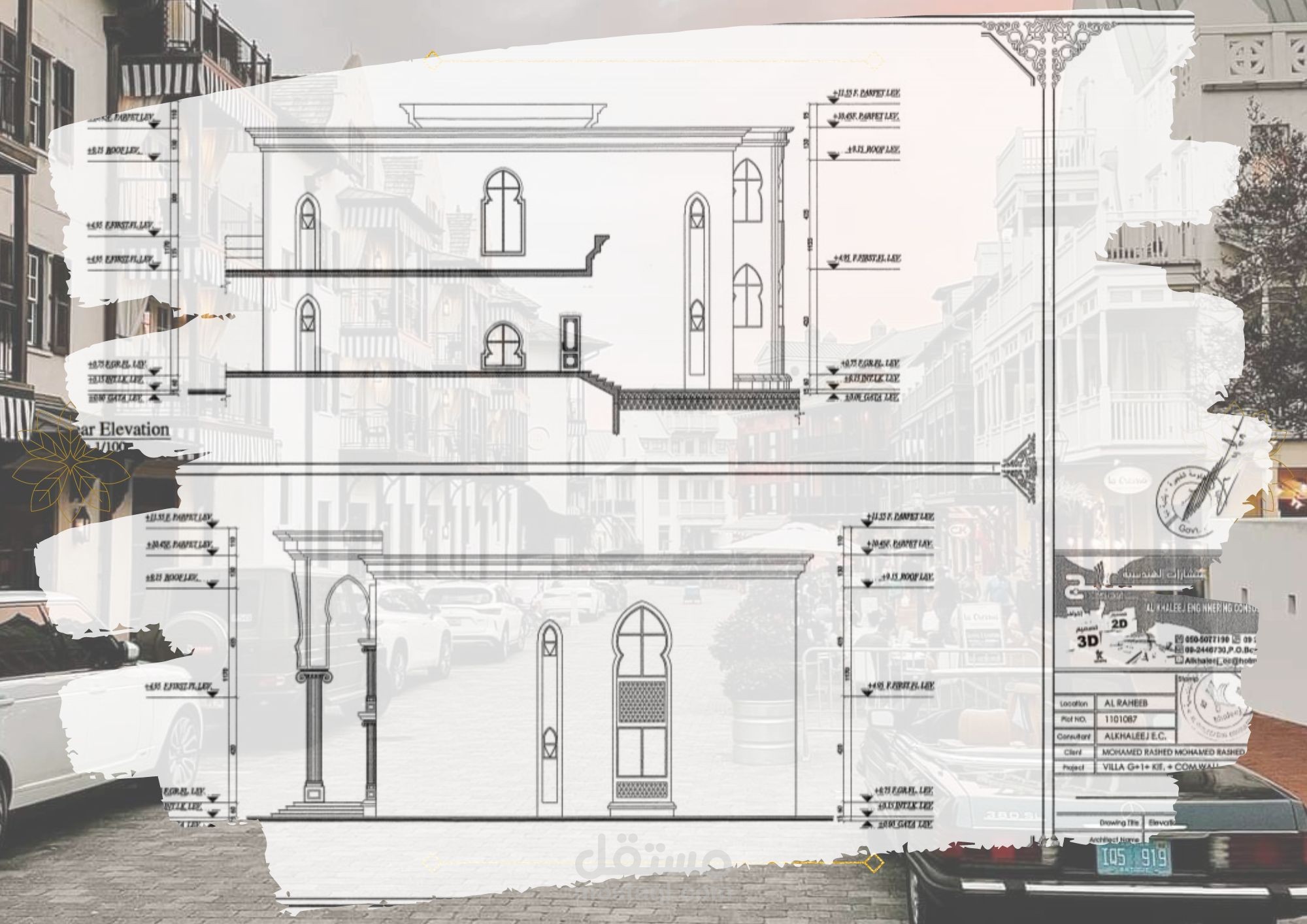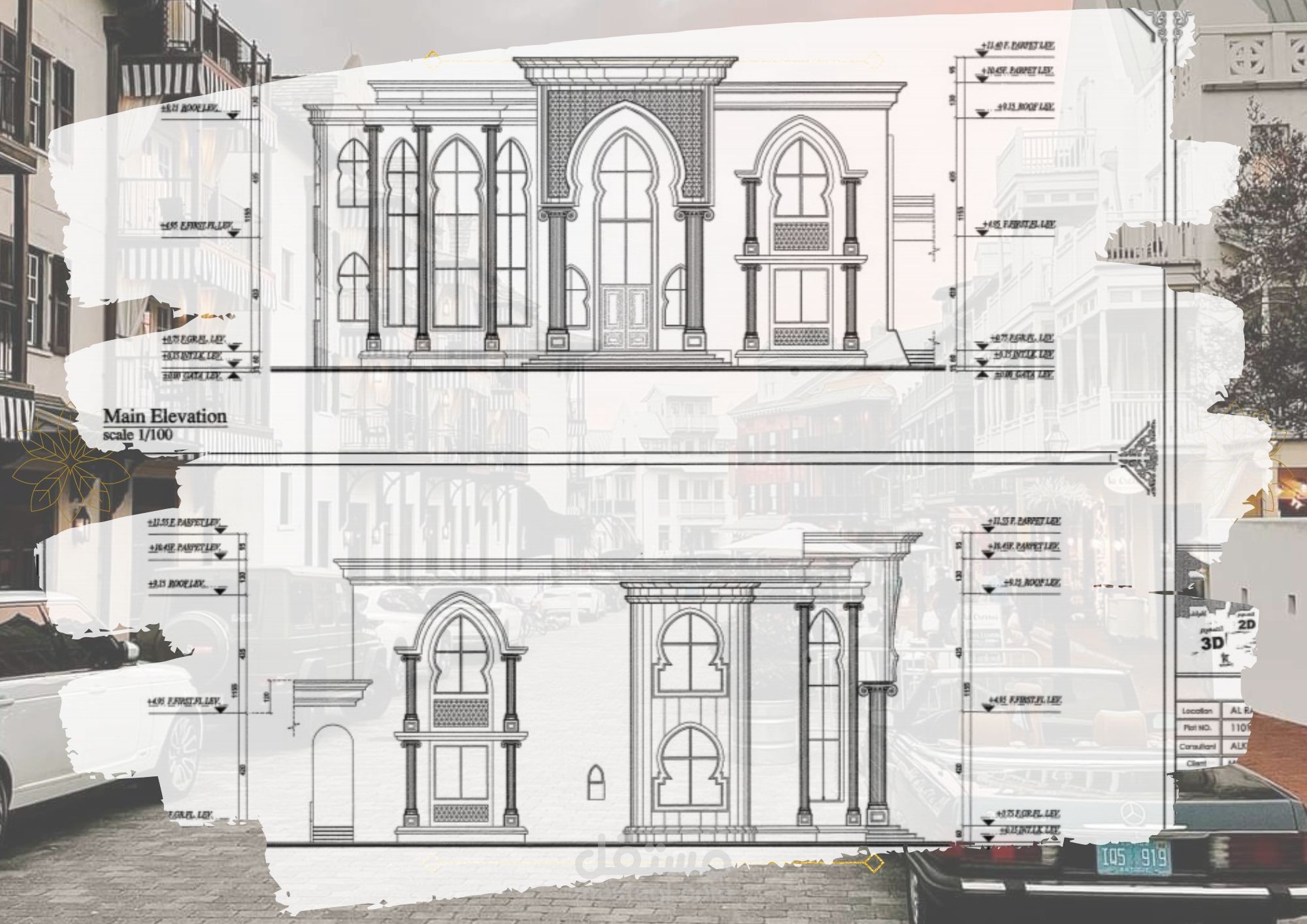 رسومات هندسية معمارية لتصميم فيلا طراز كلاسيك أرضي + أول + ملحق