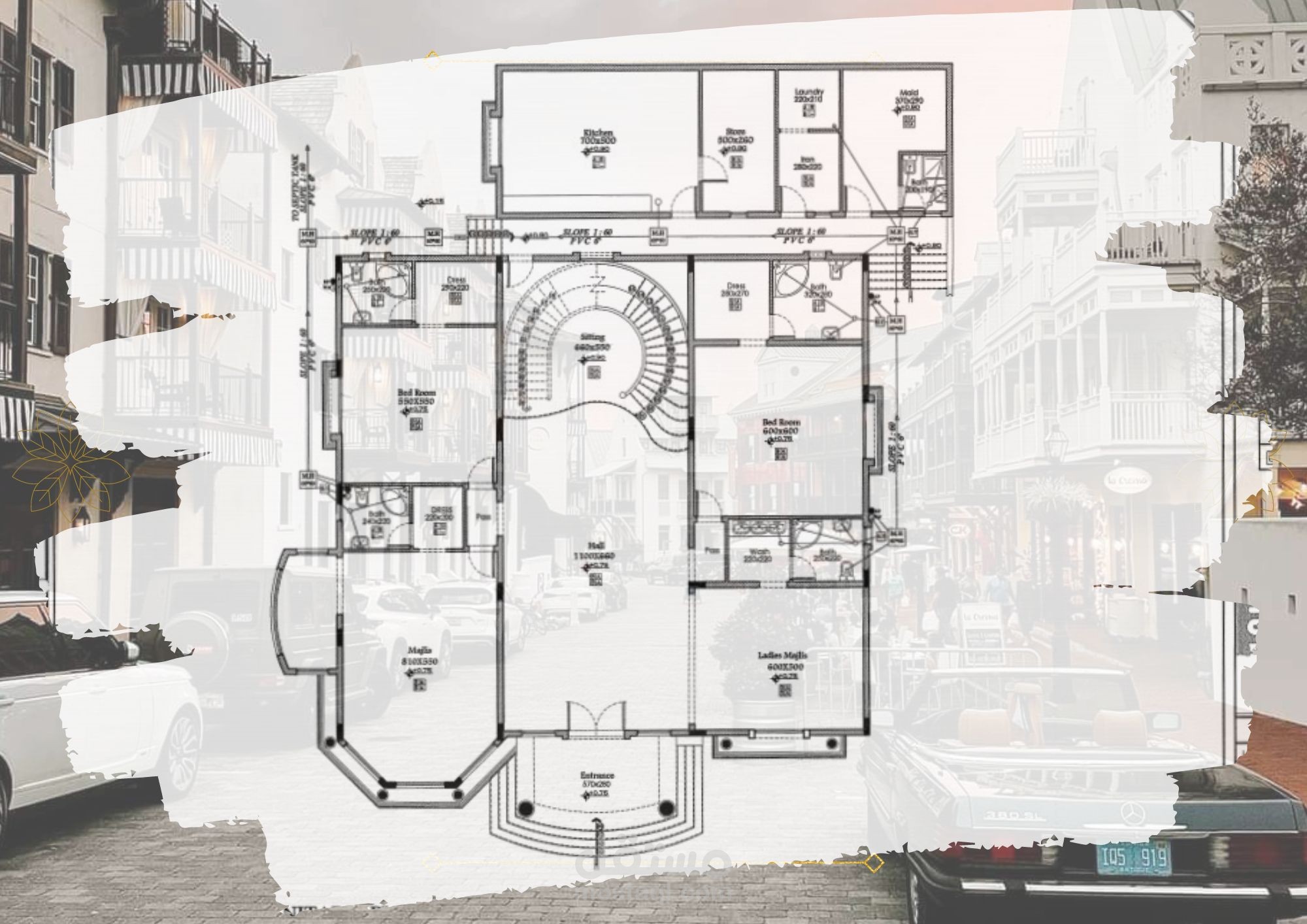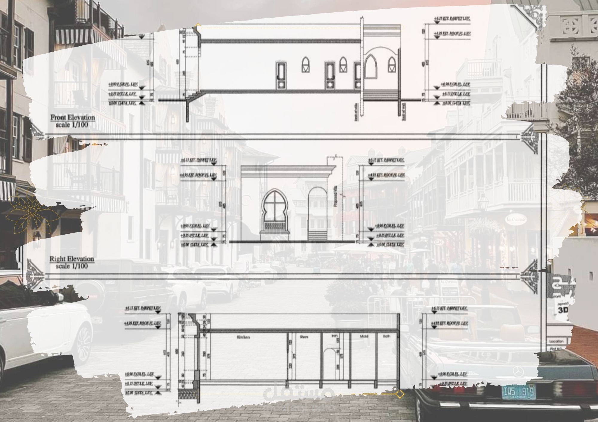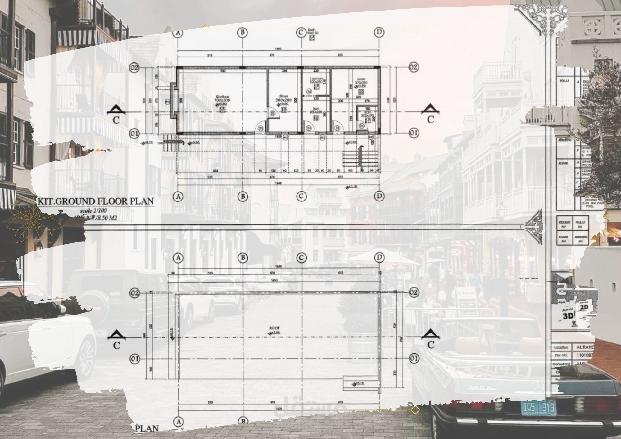 رسومات هندسية معمارية لتصميم فيلا طراز كلاسيك أرضي + أول + ملحق