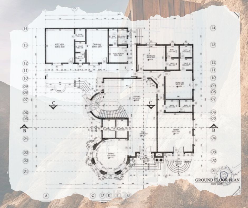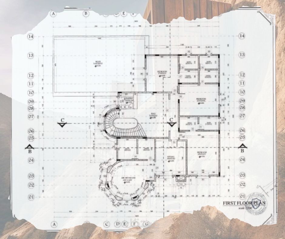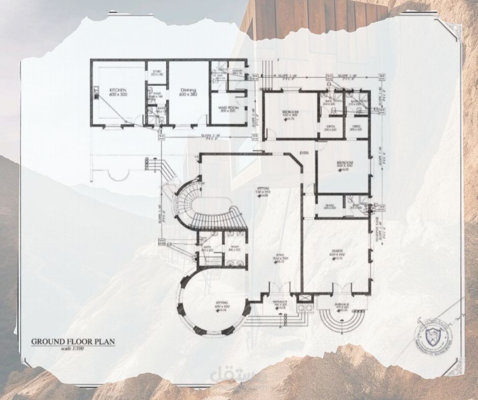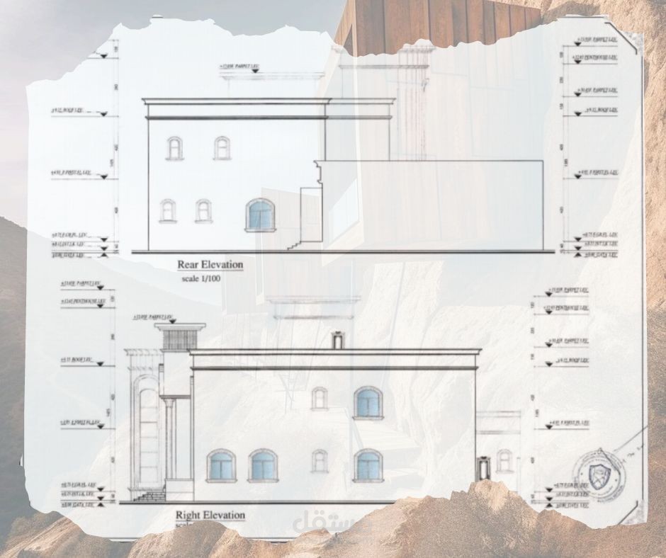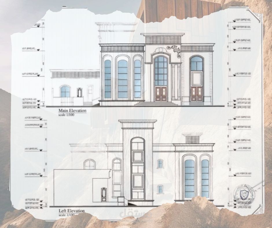 رسم هندسي معماري لمخطط فيلا ارضي + 1 طراز كلاسيك