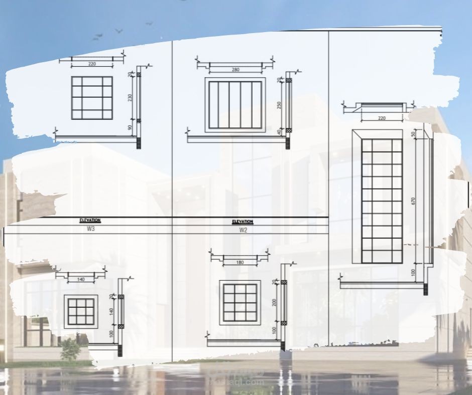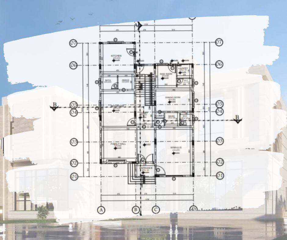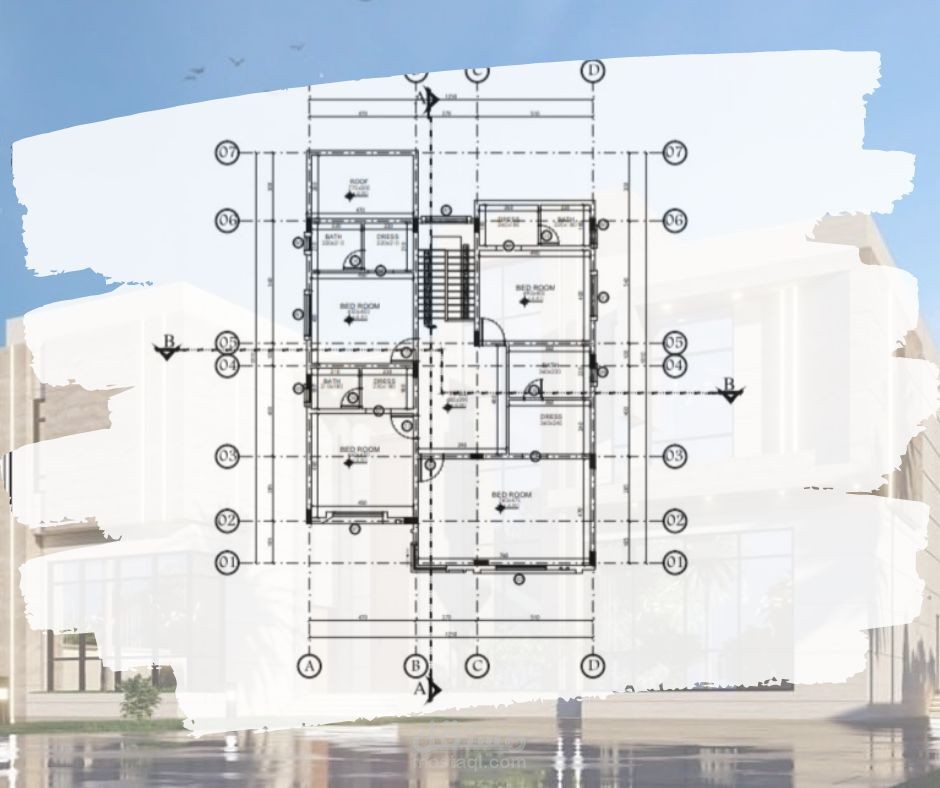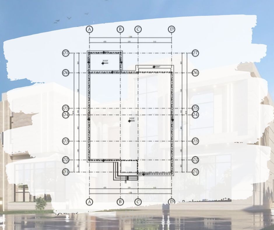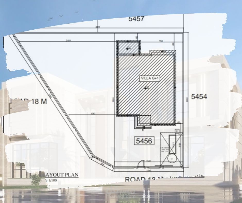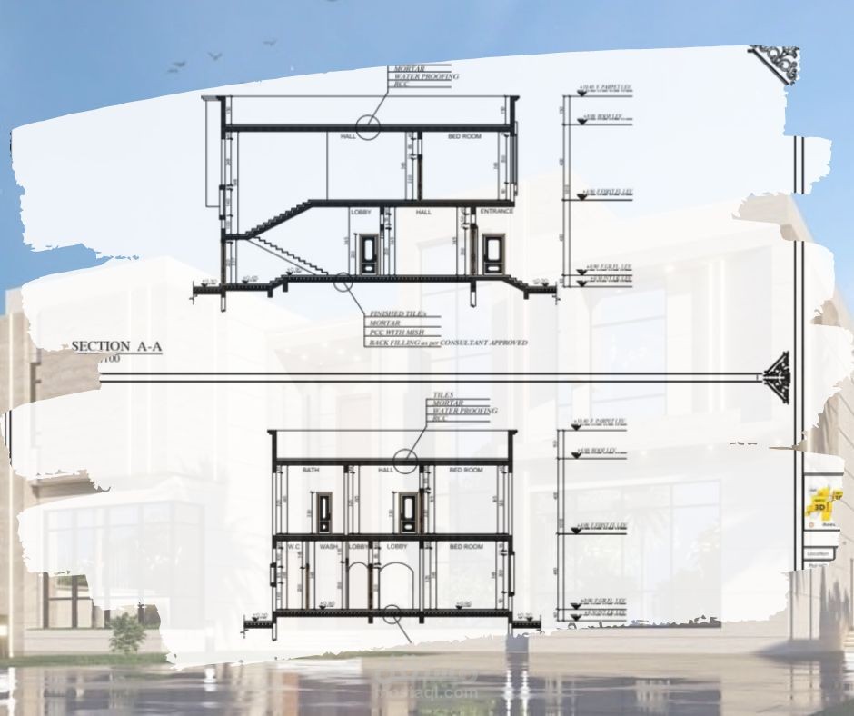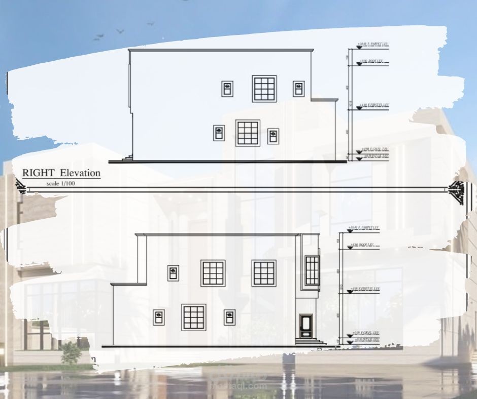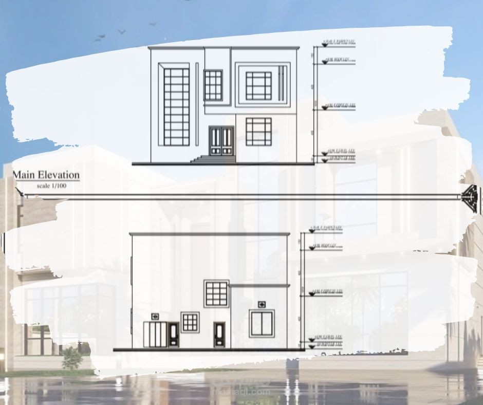 رسم هندسي معماري لمخطط فيلا صغيرة لأرضي + 1