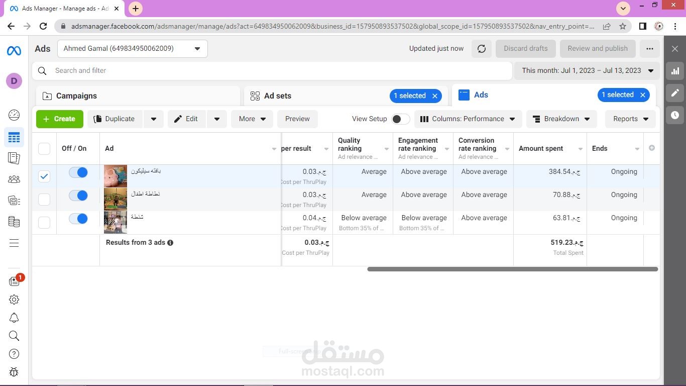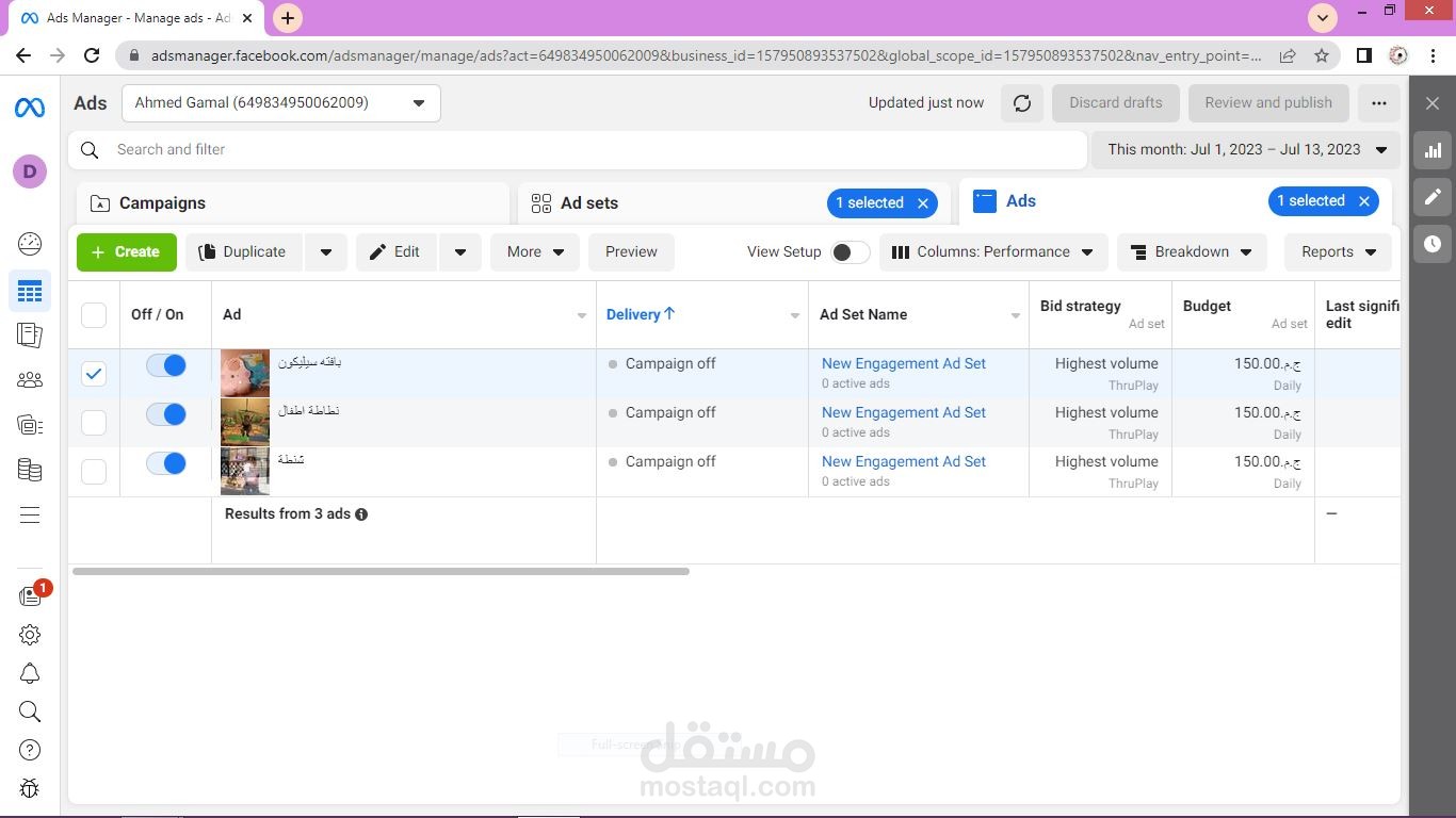 تم عمل اعلان لصفحة فيسبوك خاصة بمستلزمات الاطفال