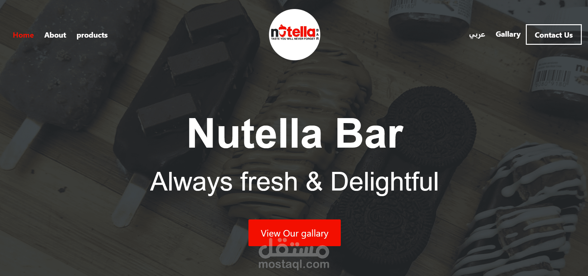 المشروع عبارة عن صفحة هبوط أو landing page لمحل Nutella bar و هو متجر معروف في وسط العاصمة يقوم بصنع و بيع أفضل أنواع الايسكريم و البوظة المتوفرة في بلادنا. الغرض من الموقع كان من أجل زيادة شعبية المتجر و الإقبال عليه عن طريق عرض صور منتجاته بطريقة جذّابة للأنظار للوصول لقاعدة أكبر من المشترين. و لقد لقى الموقع إستحسان صاحبه بسبب محتواه المتقن و حسن ترتيب صور المنتجات و التقنيات المستخدمة فيه من parallax effect و غيرها بالإضافة إلى أن ربط الموقع بشبكة الإنترنت أو ال deployment كان مجانا مع إمكانية ربطه ب web domain معين.
