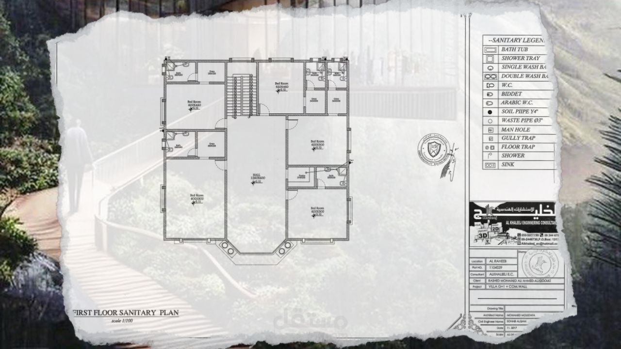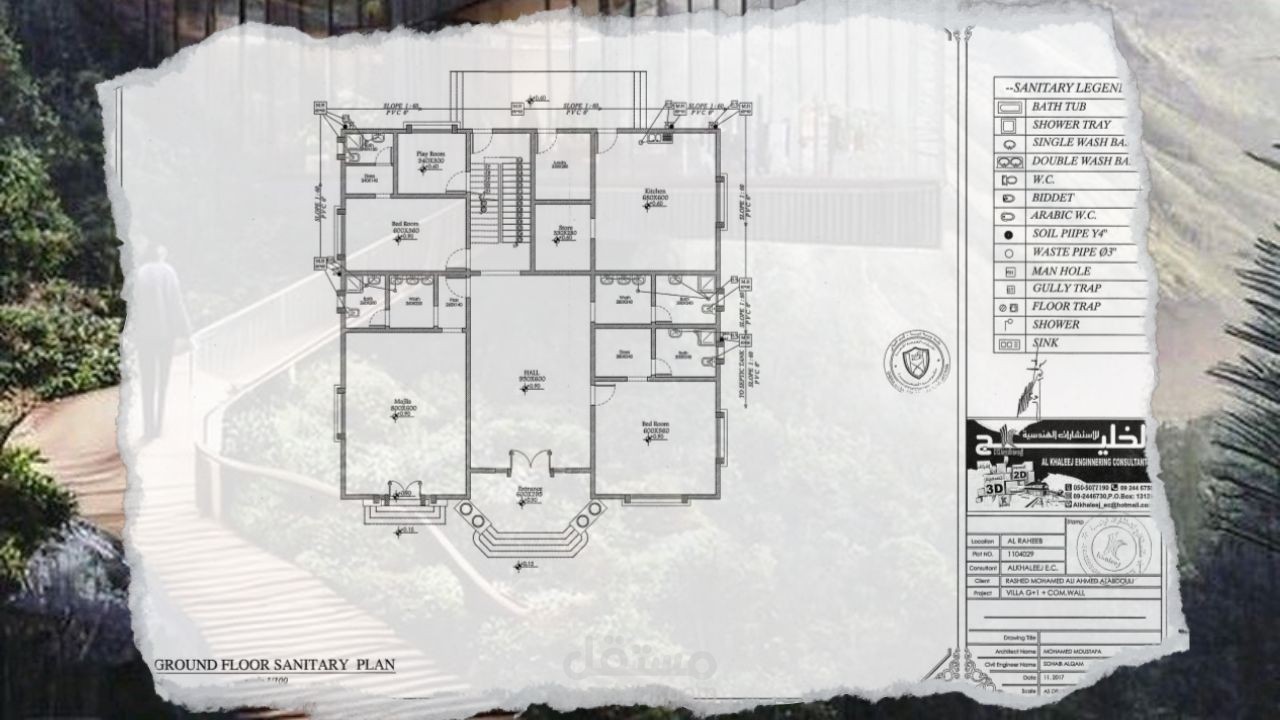 رسم هندسى معماري لمخطط فيلا ارضي + أول