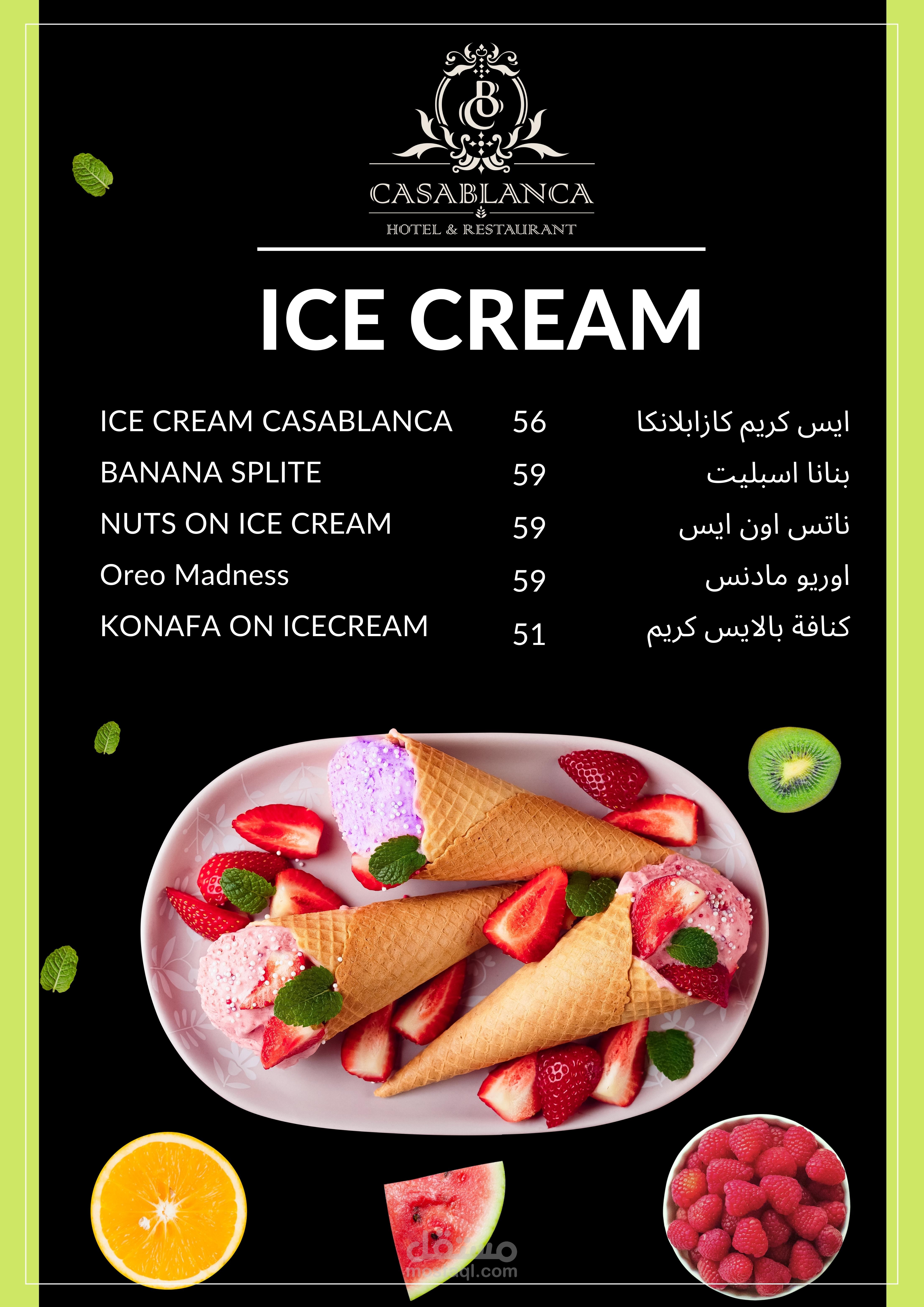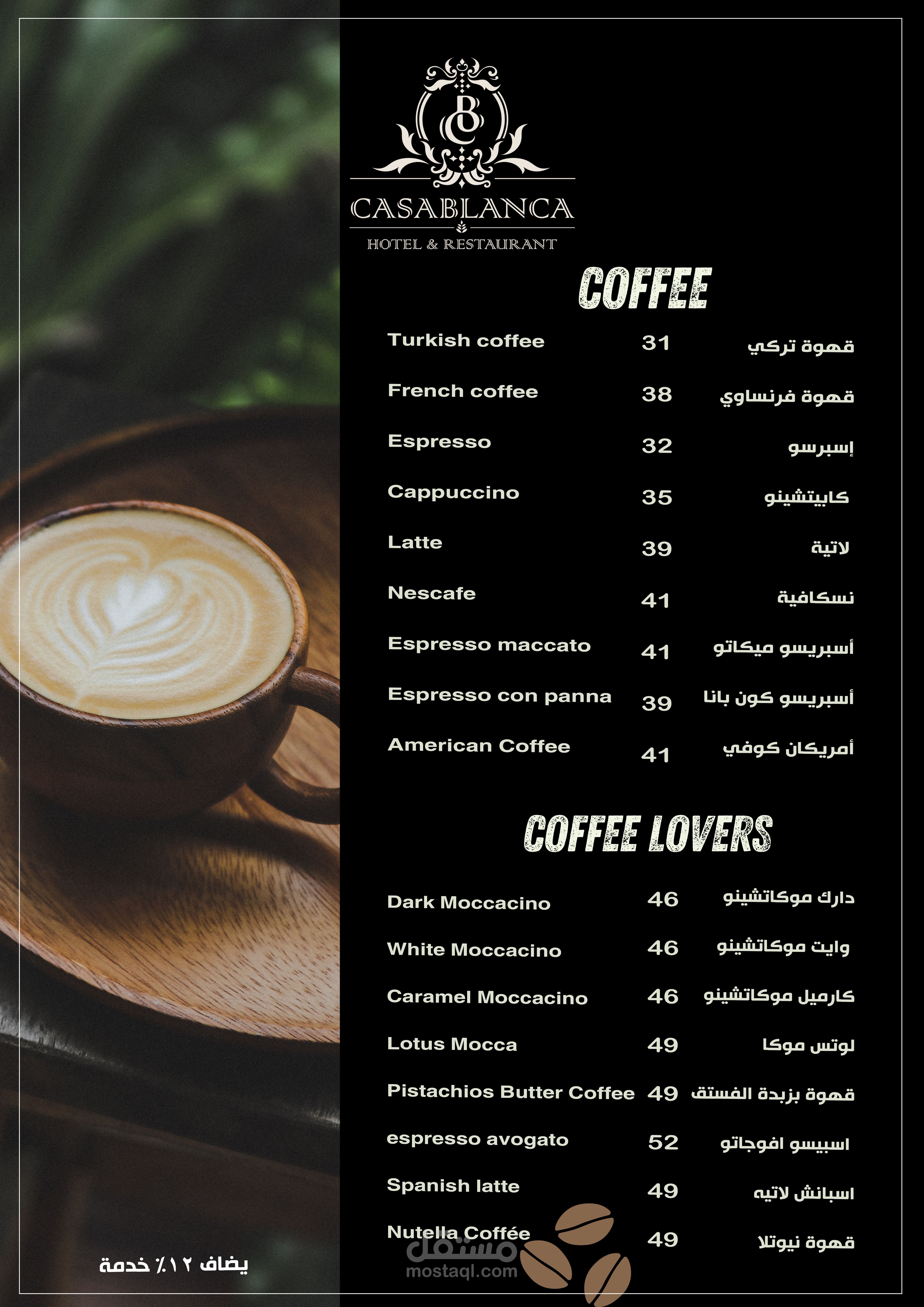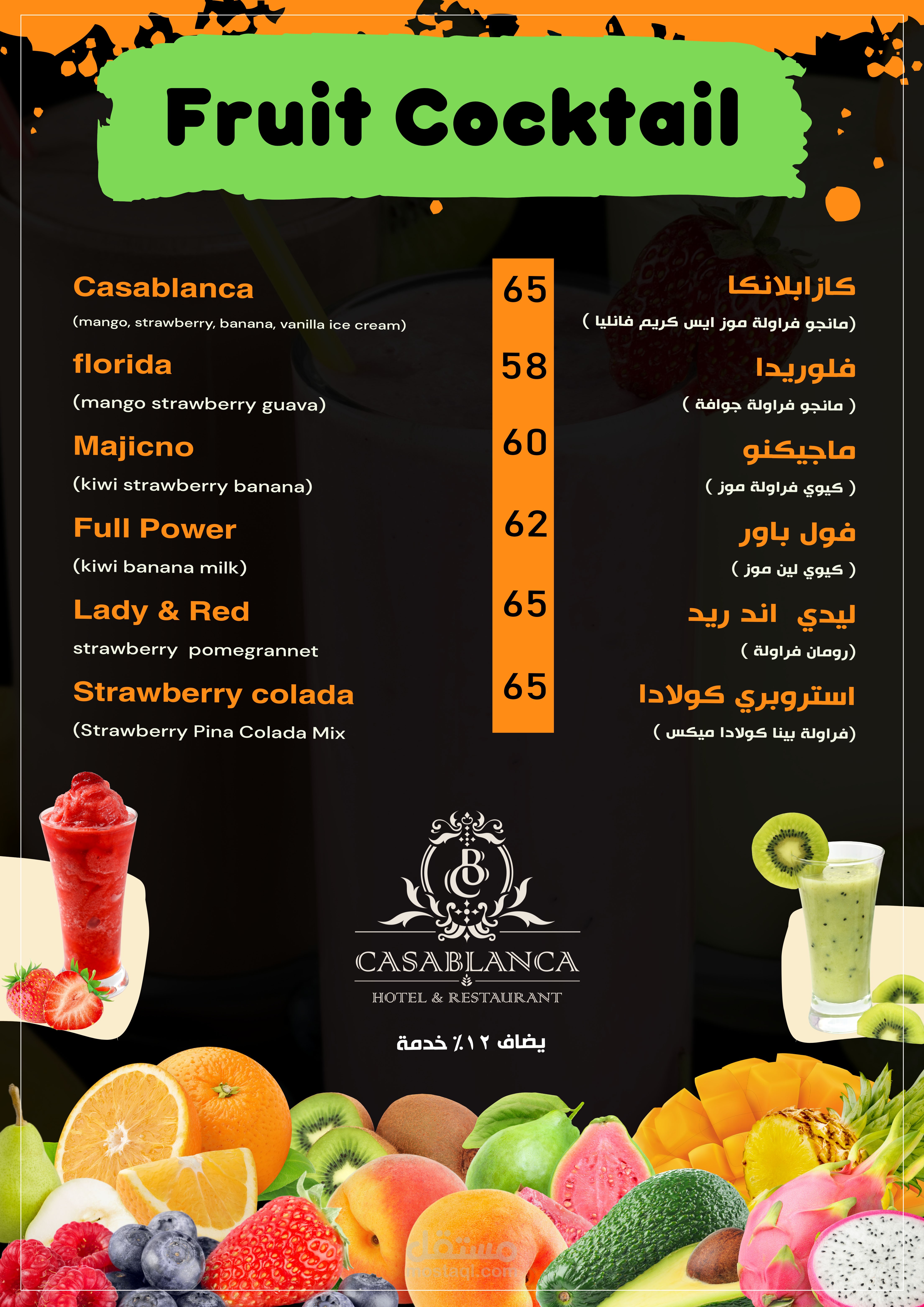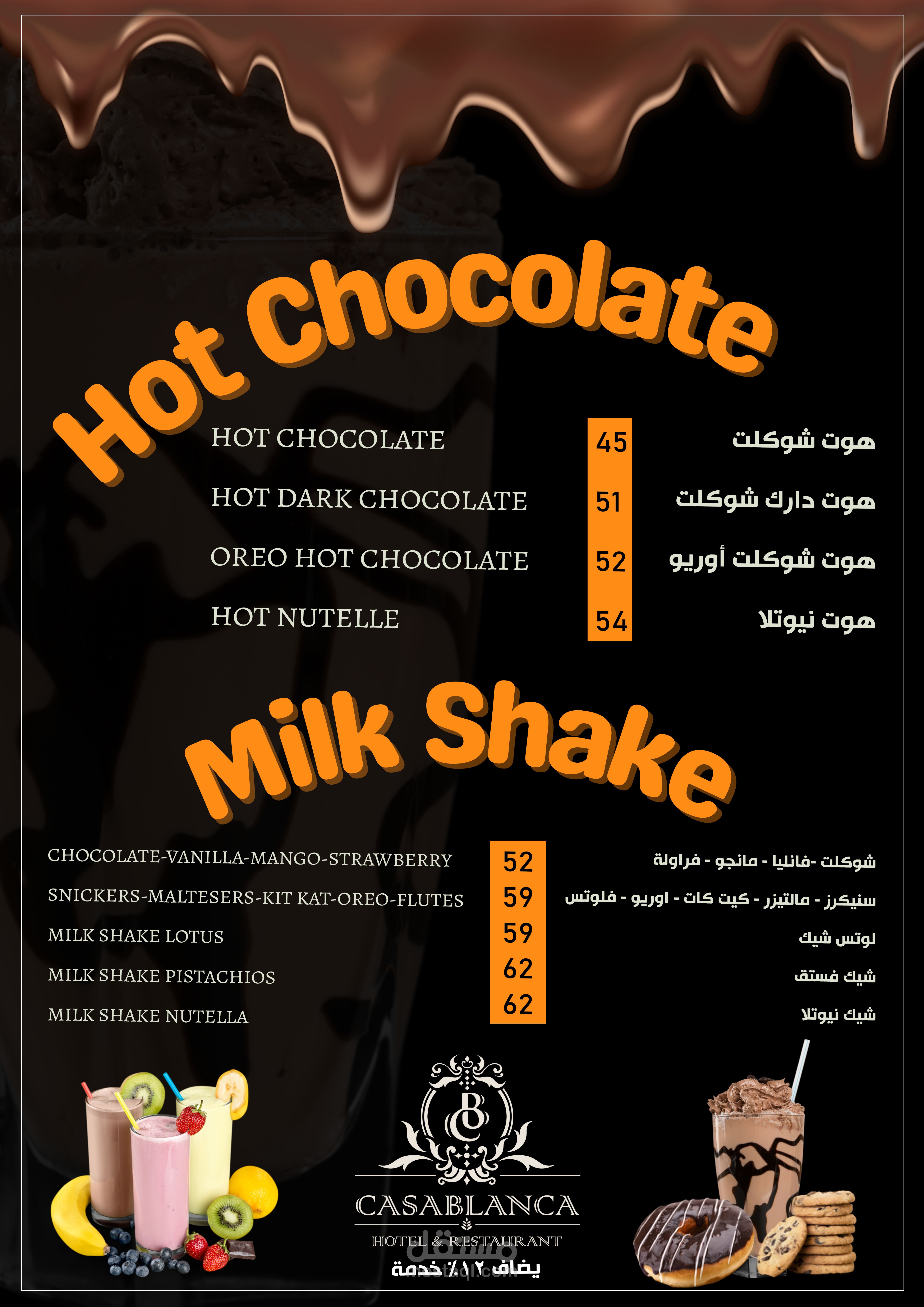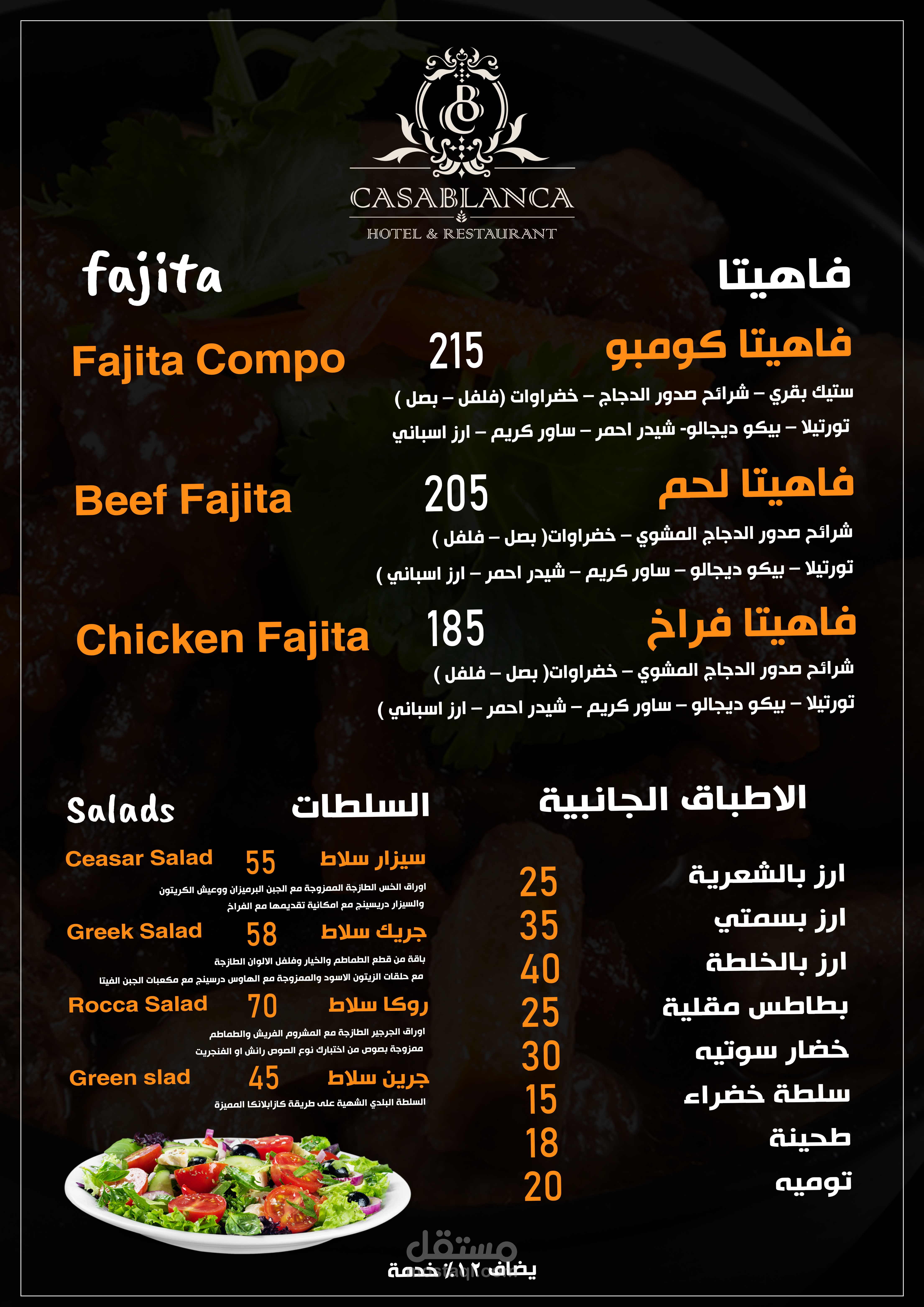 العمل عبارة عن منيو بنظام الكتيب 20 صفحة تشمل كل الاقسام والاصناف الموجودة بالمطعم تم مراعاة الاوان الخاصة بالفندق تم تنفيذ العمل باستخدام الفوتوشوب وتم طباعته وسلفنته بسلفان مط ليتناسب مع الوان التصميم وتم تسليم العمل ولاقي قبول الجميع