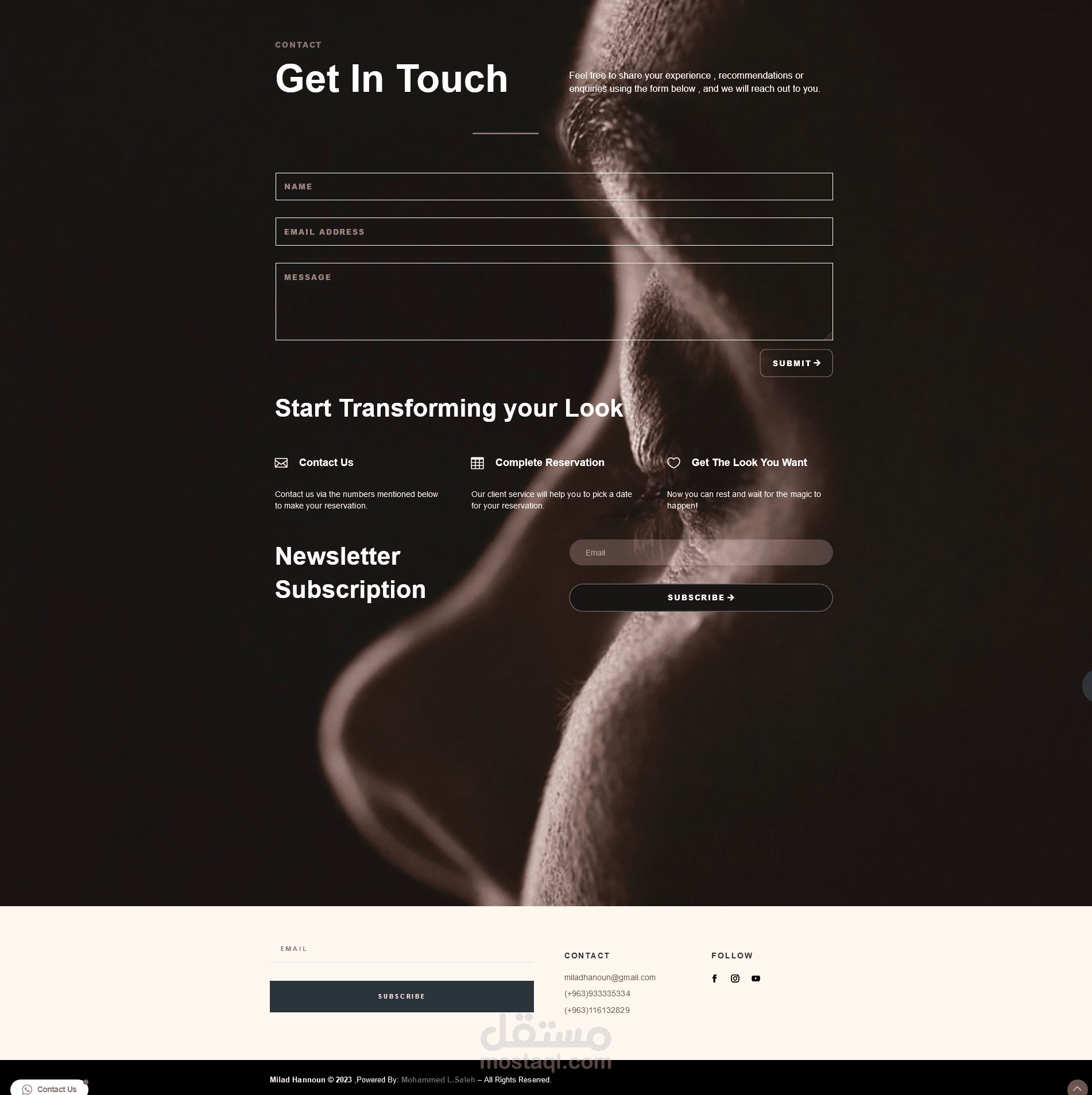 Whether you are a potential client seeking makeup services for a special occasion or simply an admirer of Milad Hannoun's artistry, this website offers a seamless user experience. With easy navigation and an intuitive interface, you can effortlessly explore Milad's portfolio, learn more about his background, and even connect with him directly for bookings or collaborations.