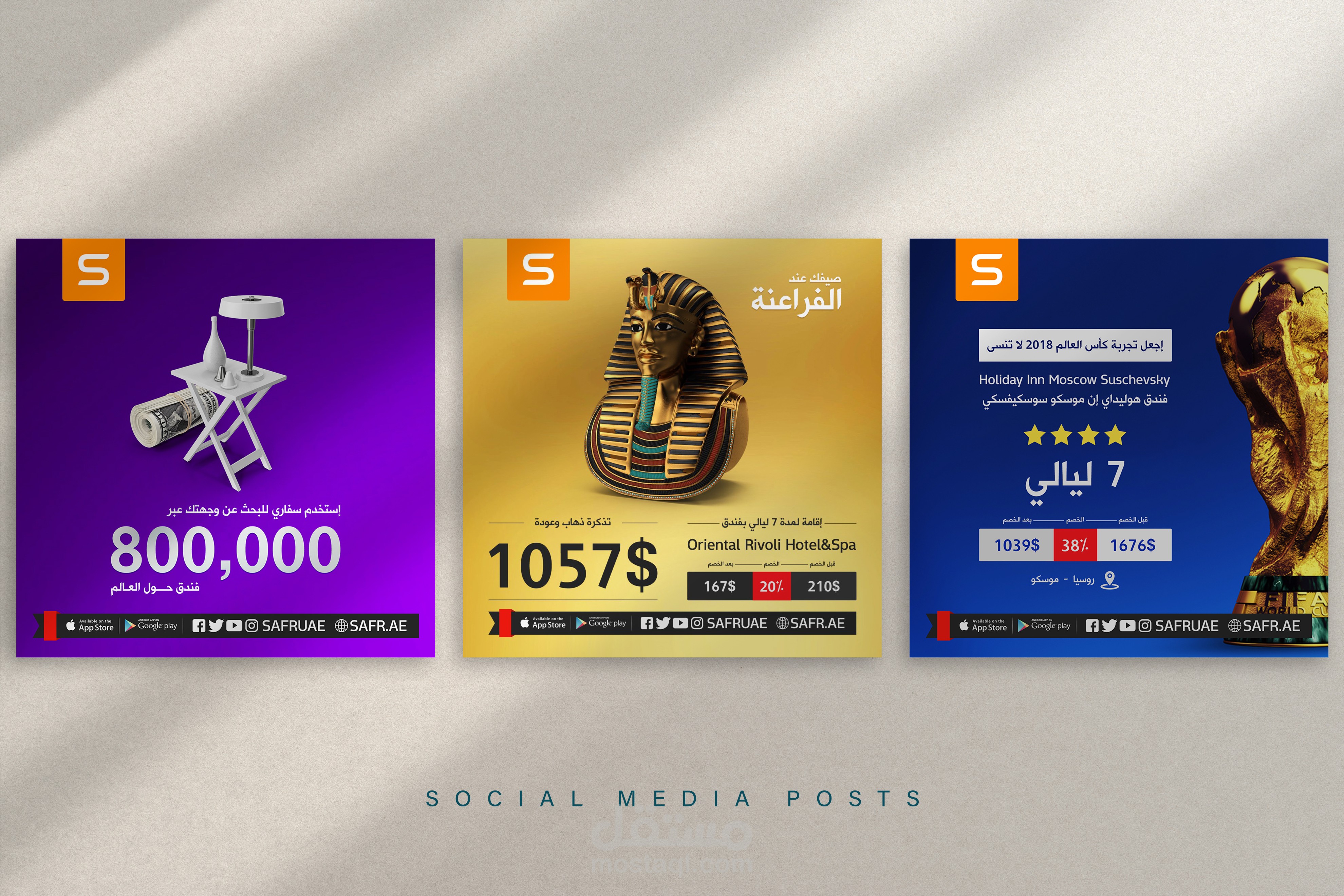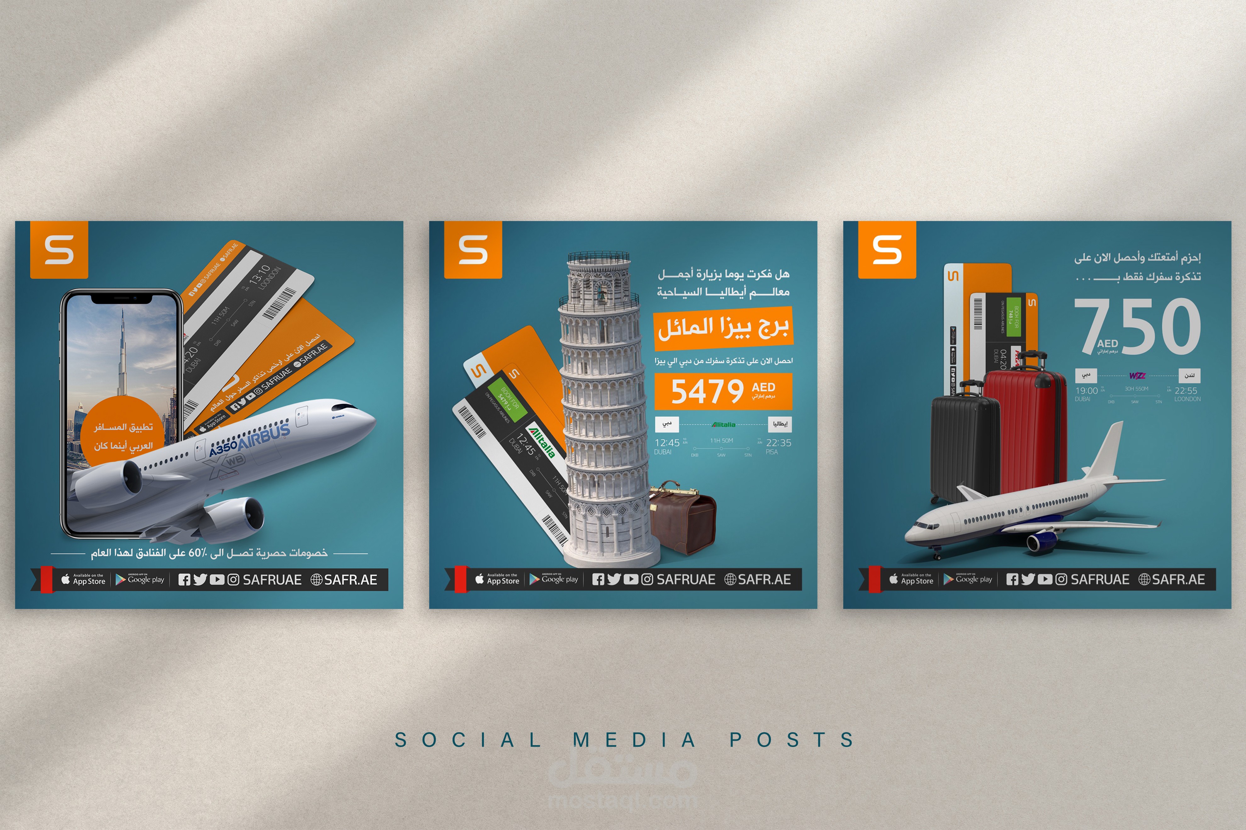 منشورات وسائل تواصل اجتماعي دعائية خاصة بشركة سياحة وسفر اماراتية.