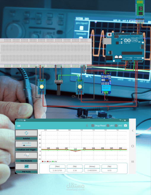 تطبيق اندرويد يقوم بفحص وقياس ورسم الاشارة الكهربائية بنوعيها (Ac , Dc) , قمت ببرمجته بلغة الجافا