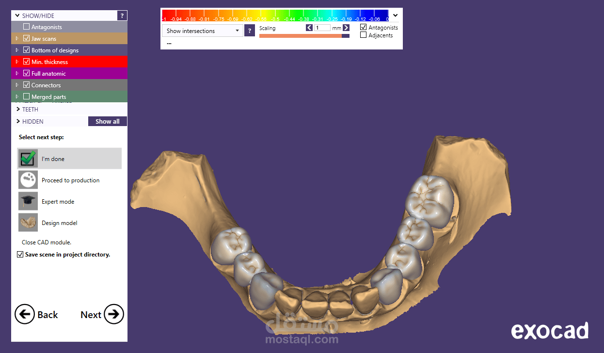 lower arch fixed partial dentures(bridges) designed on exocad software with free hand anatomy and solve preparation errors as much as possible